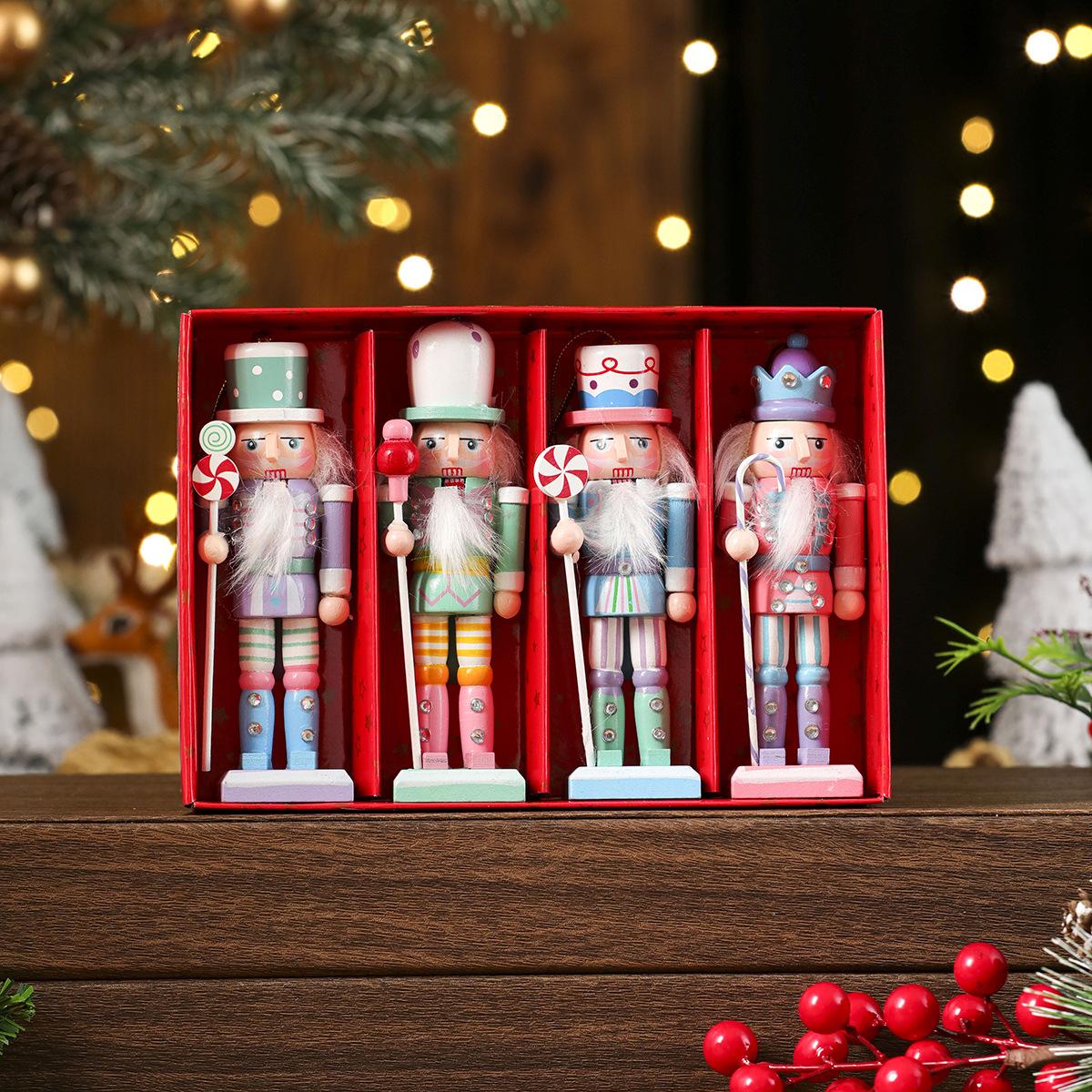 Nuevo Adorno Cascanueces de Madera Transfronterizo Adorno Navideño Pequeño Regalo Decoración Navideña Adorno de Escritorio para Ventana