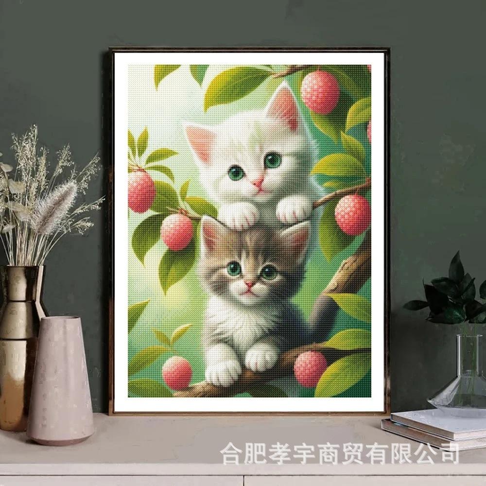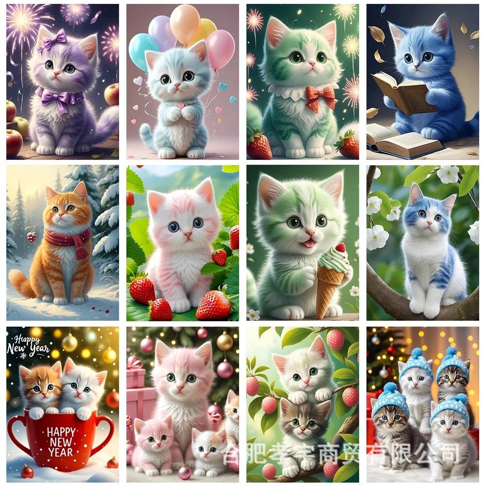 Serie Animal Pintura de Diamantes 5D Gatito Bordado Mosaico de Diamantes Punto de Cruz Decoración del Hogar Taladro Completo Sin Marco