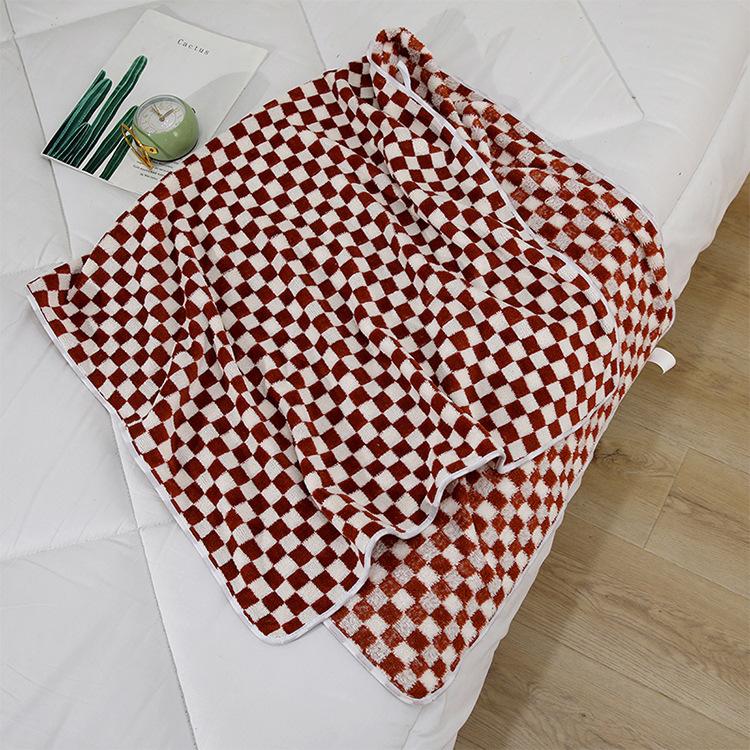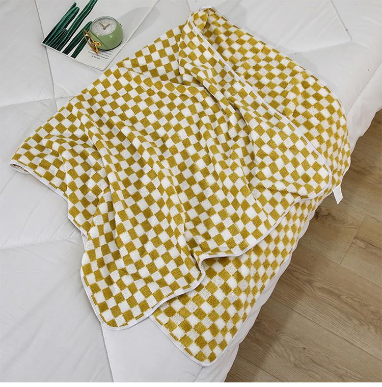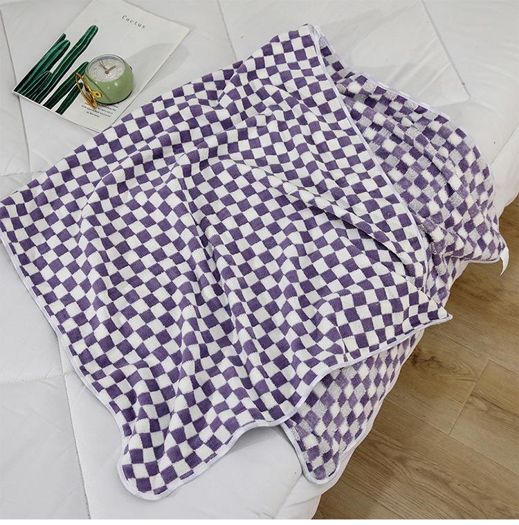 Toalla de forro polar de coral toalla de baño para el hogar de secado rápido envoltura de baño a cuadros gruesa absorbente para adultos que no suelta pelusa toalla de baño grande