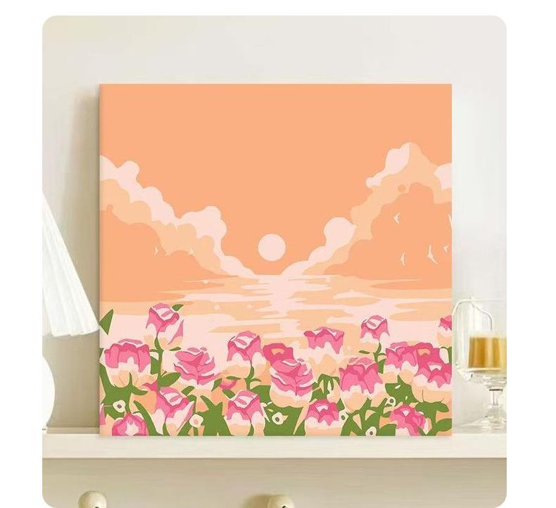 Paisaje Lacustre Pintura al Óleo Digital DIY Pintado a Mano Coloreado Curativo Paisaje Natural Pintura al Óleo Sala de Estar Dormitorio Pintura Decorativa