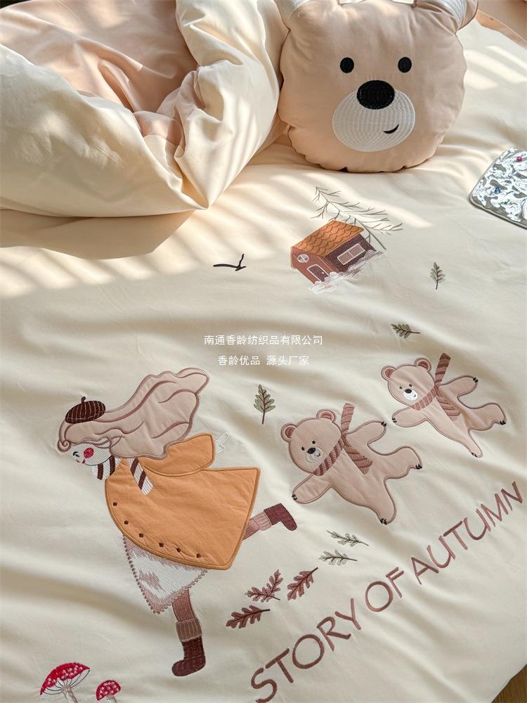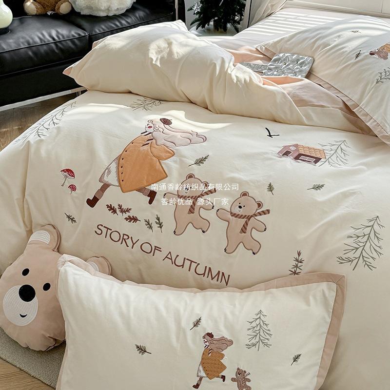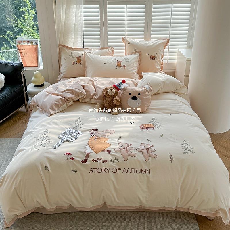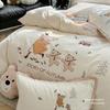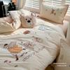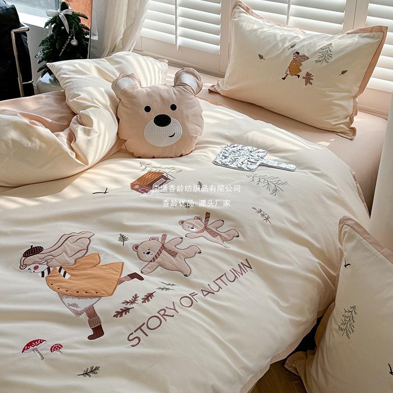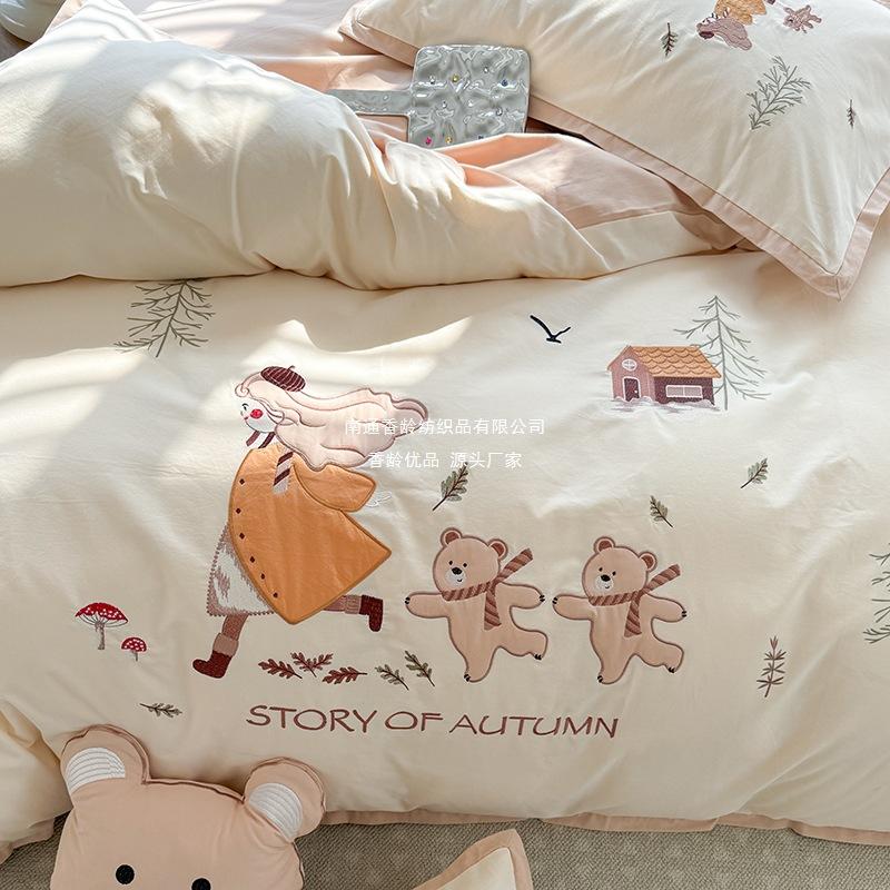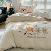Conjunto de cuatro piezas de algodón puro cepillado para niña de otoño e invierno, todo algodón, funda nórdica de dibujos animados para niños, grueso para la cama, estilo princesa