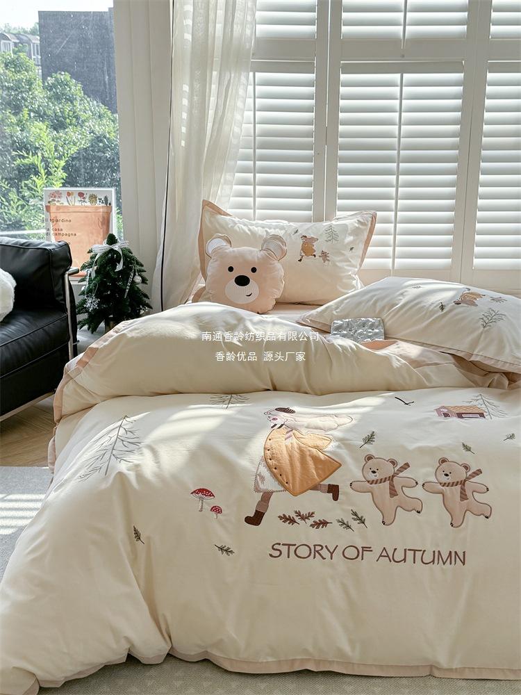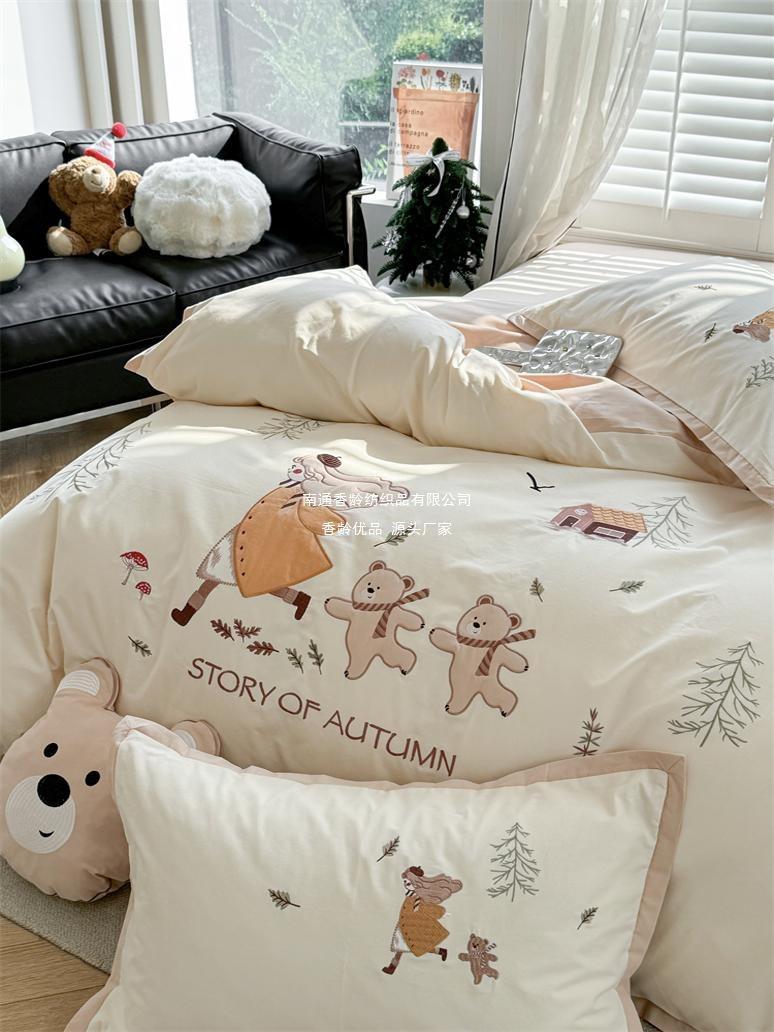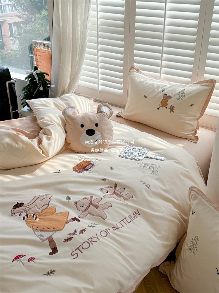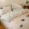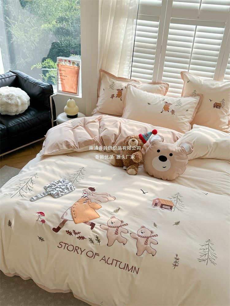 Conjunto de cuatro piezas de algodón puro cepillado para niña de otoño e invierno, todo algodón, funda nórdica de dibujos animados para niños, grueso para la cama, estilo princesa