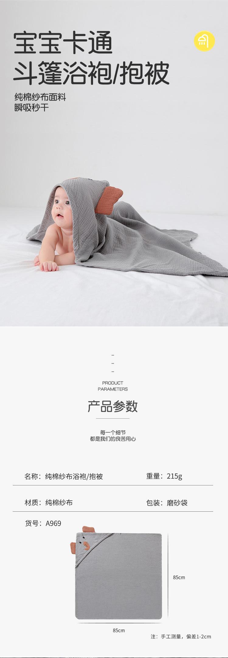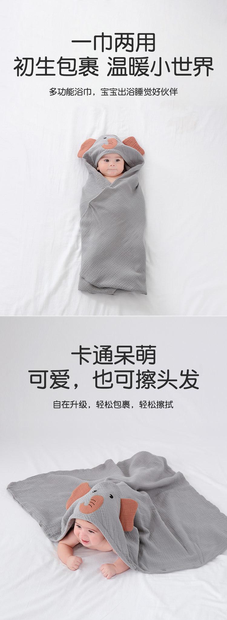 Little Elephant (Gray Gauze Bathrobe/Swaddle), Baby Dinosaur (Grey Gauze Bathrobe/Swaddle)