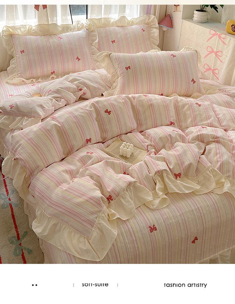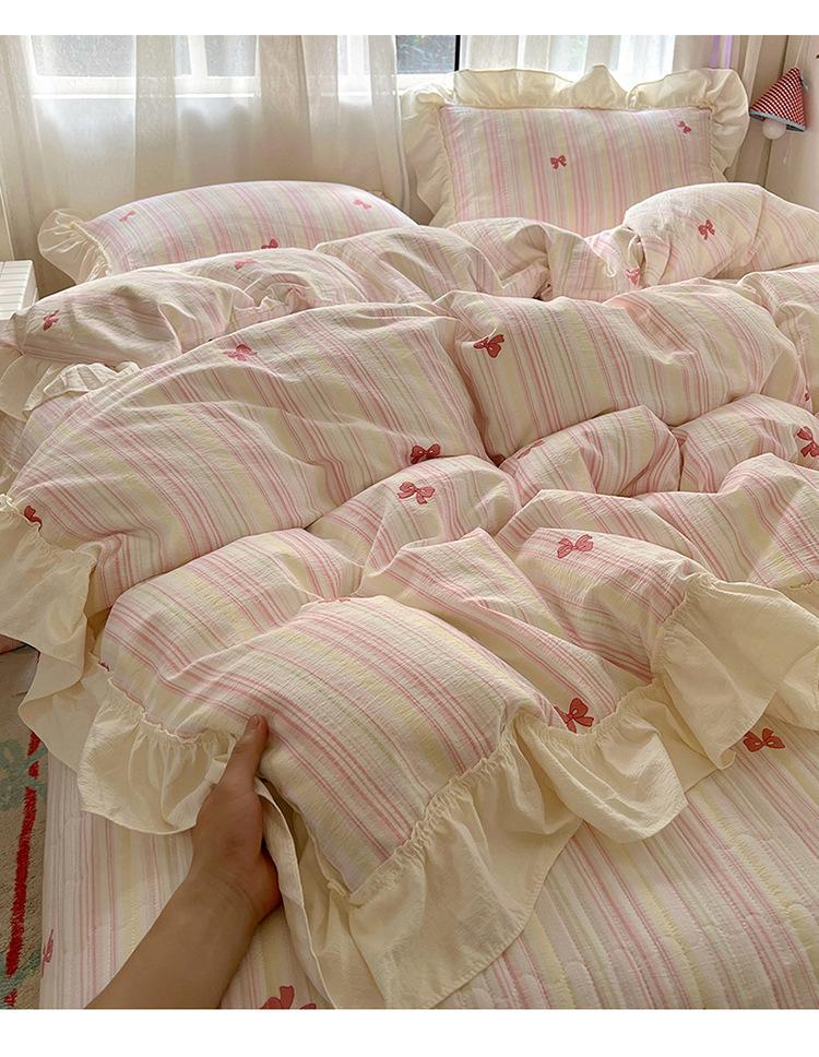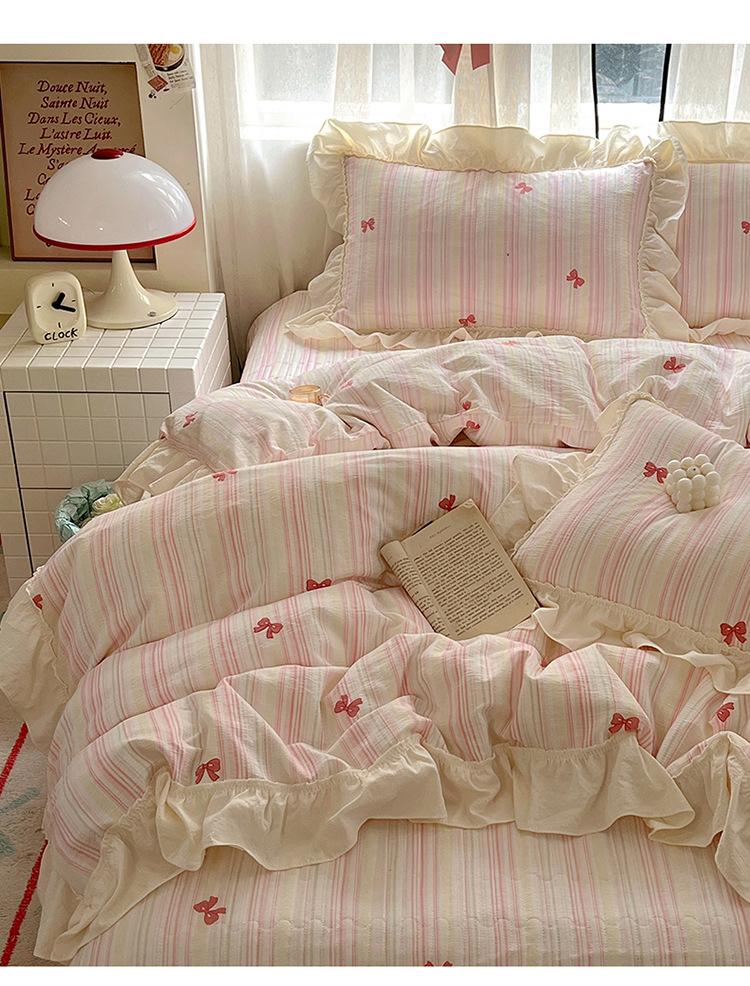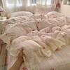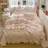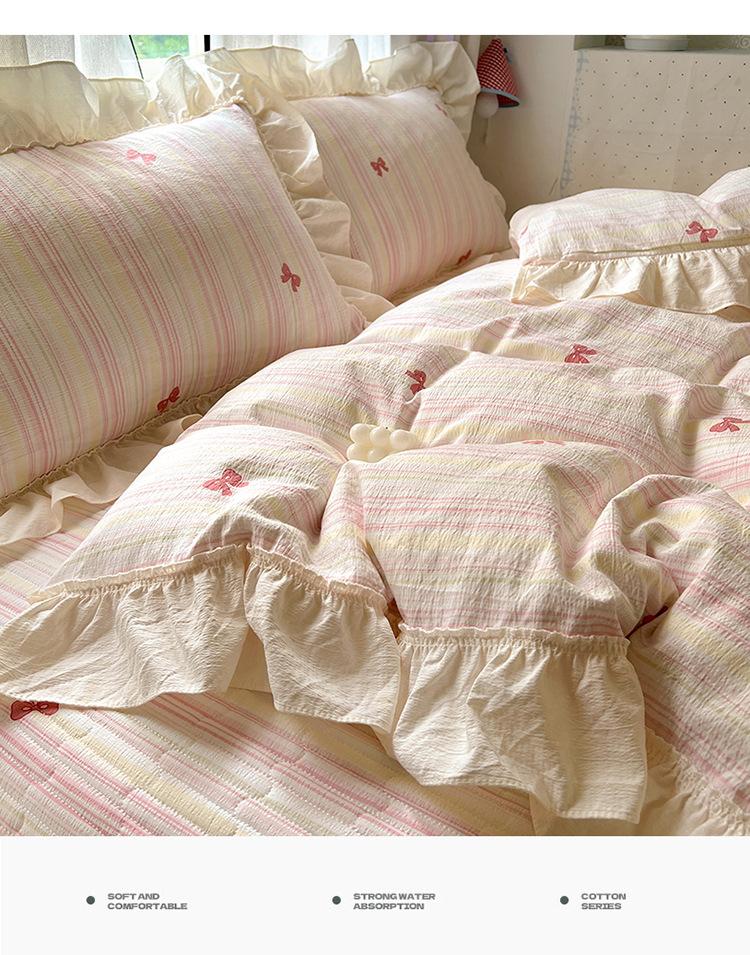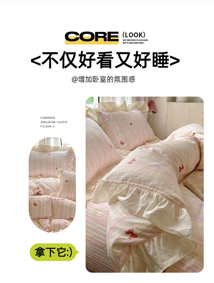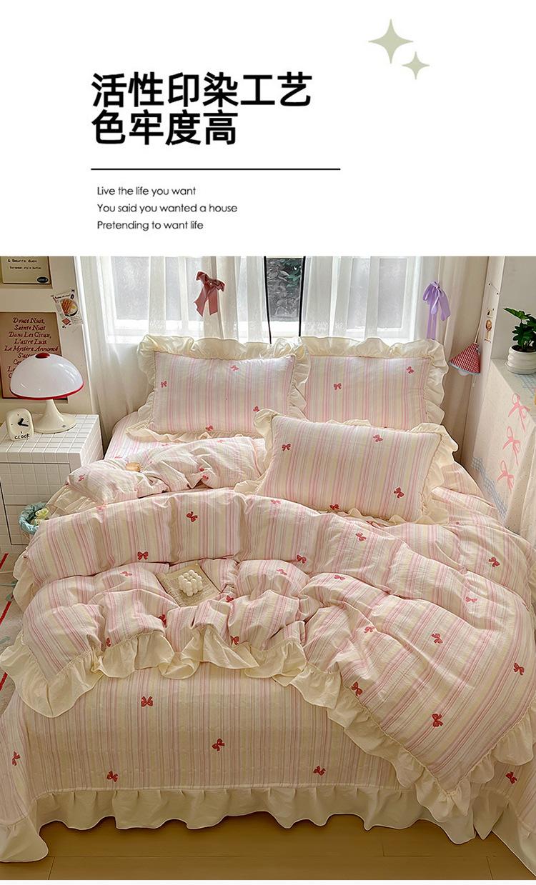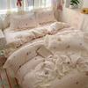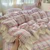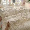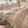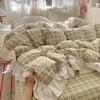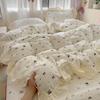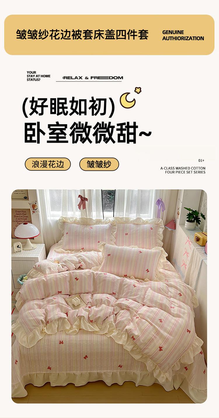 Juego de cuatro piezas de encaje de algodón puro grado A para madre y bebé, estilo fresco ins, algodón puro, gasa de doble capa, juego de tres piezas para dormitorio de estudiantes, ropa de cama