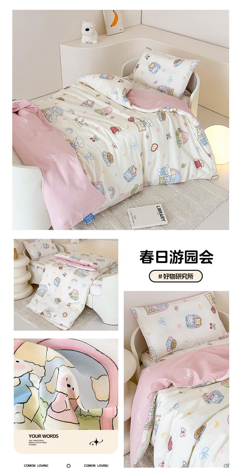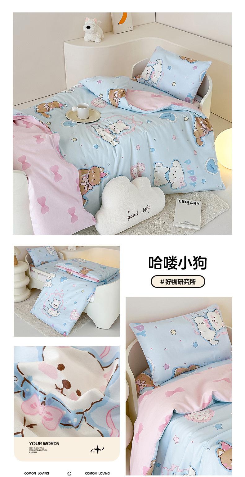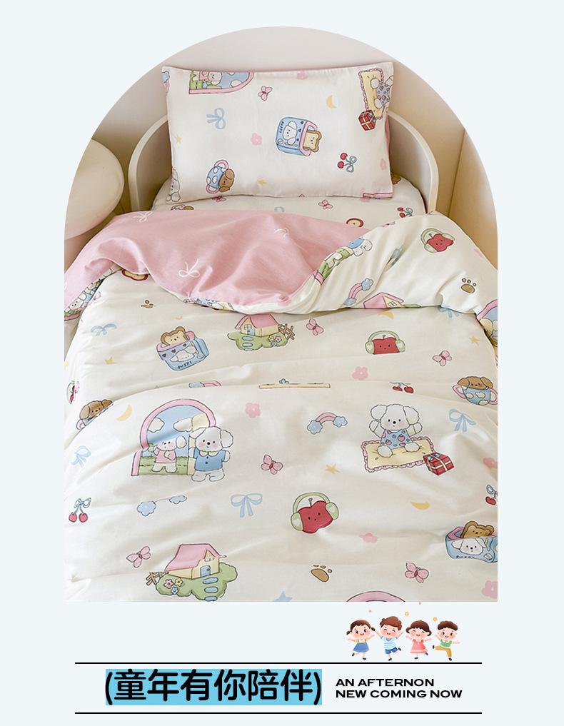 Set de seis piezas de algodón puro grueso clase A para niños pequeños, suave para cuna, set de tres piezas de dibujos animados para siesta de jardín de infancia, calidad para madre y bebé