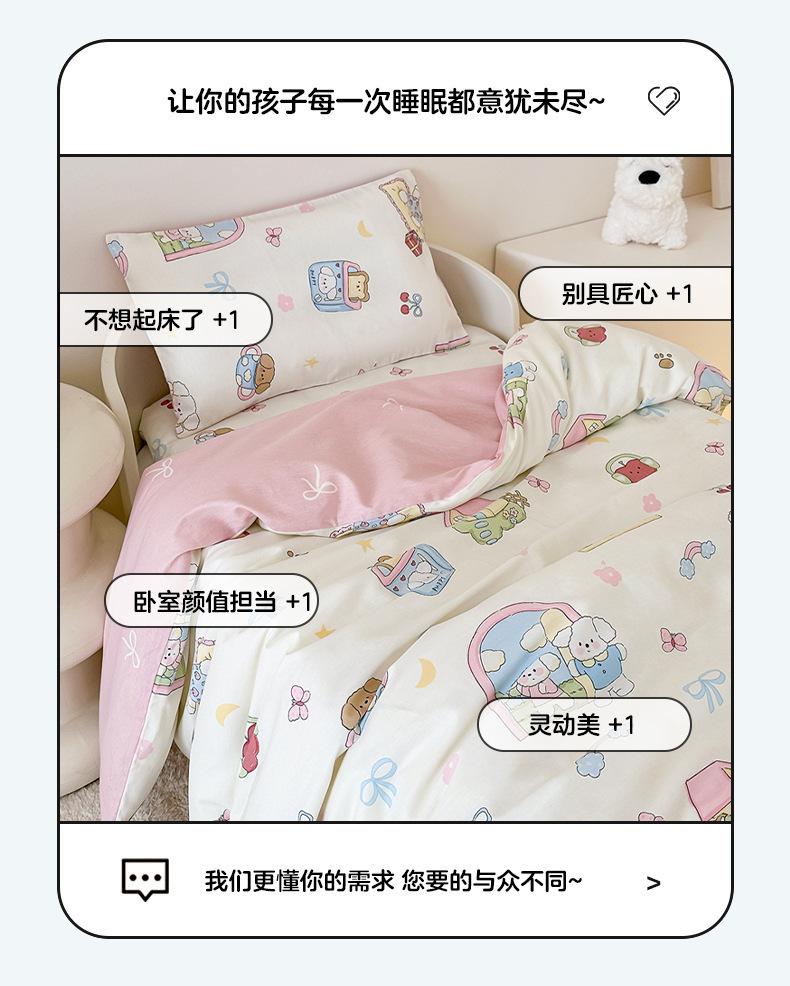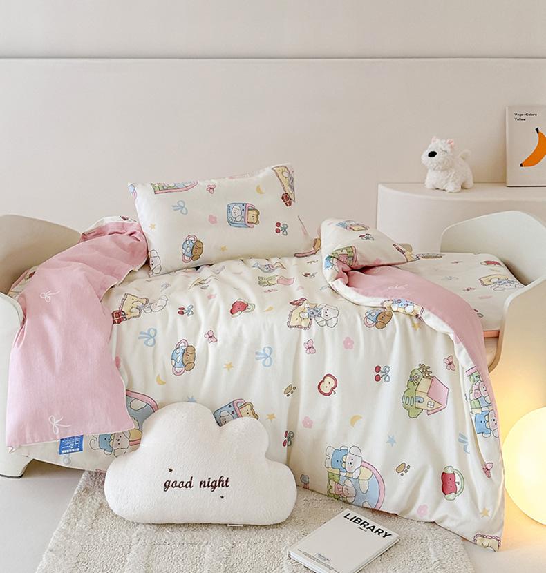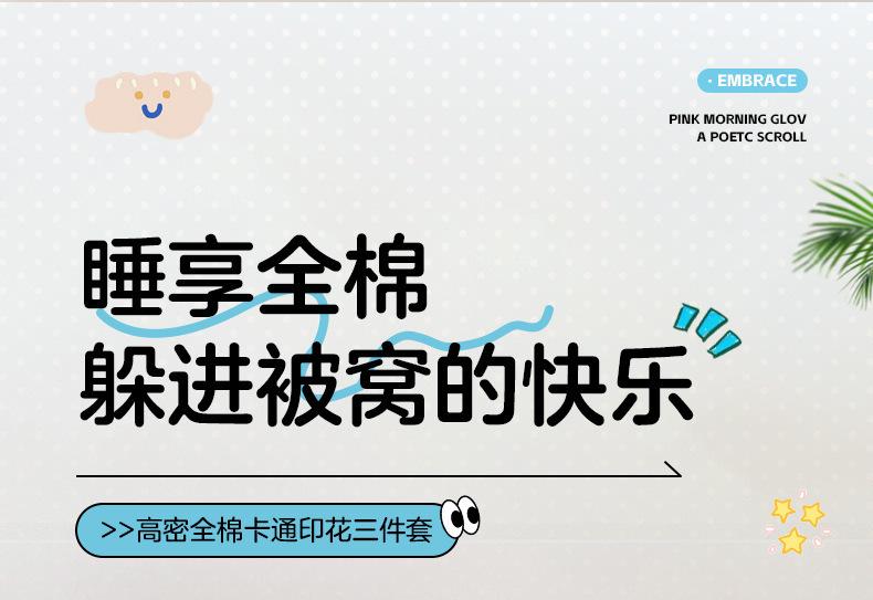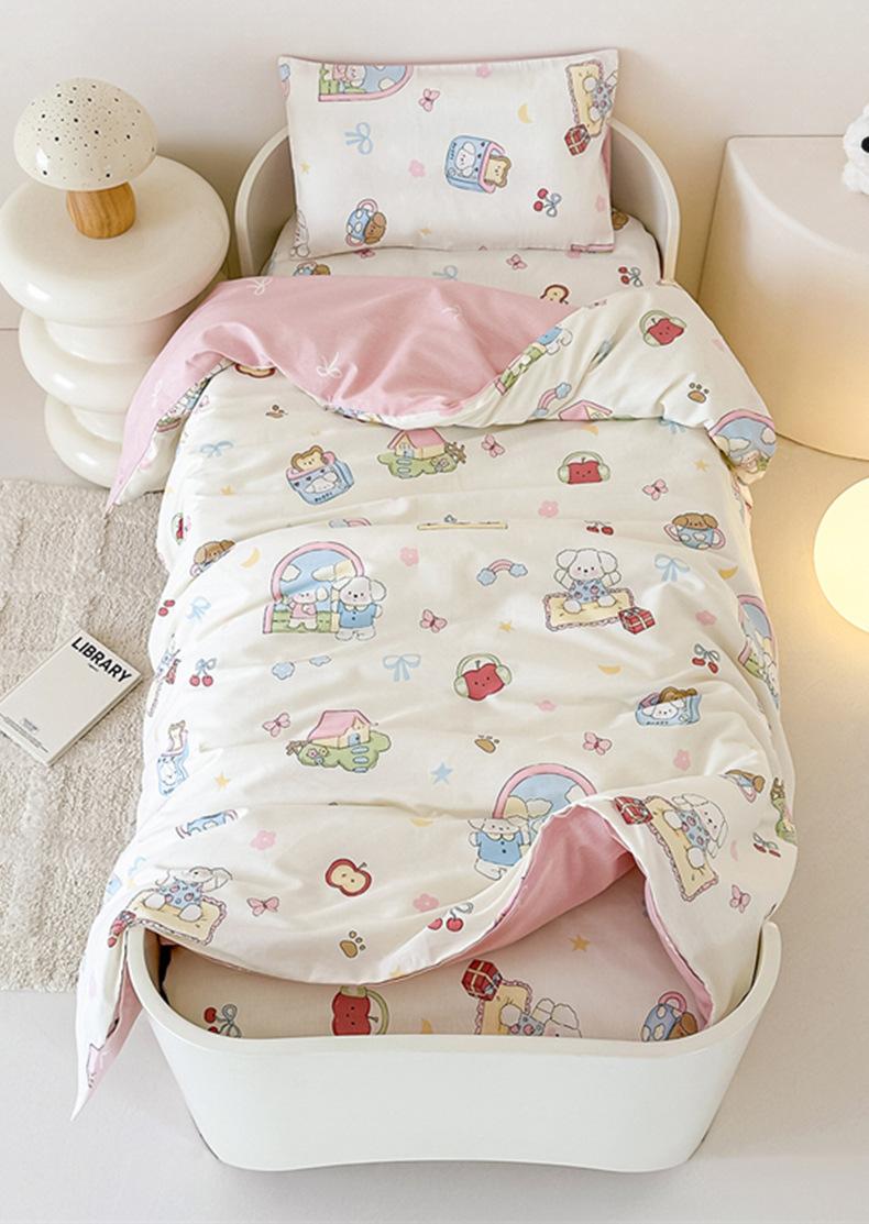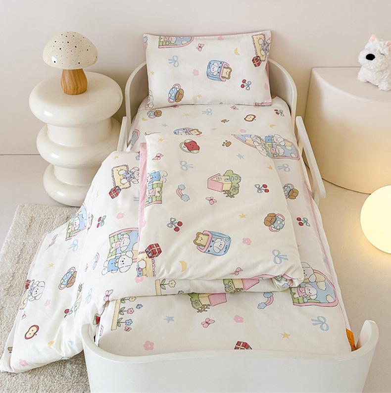 Set de seis piezas de algodón puro grueso clase A para niños pequeños, suave para cuna, set de tres piezas de dibujos animados para siesta de jardín de infancia, calidad para madre y bebé