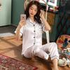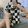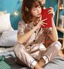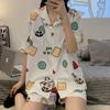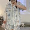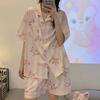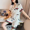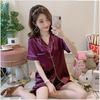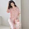 Pijama de verano para mujer de manga corta cárdigan coreano casual seda de imitación seda de hielo lindo traje de ropa para el hogar una generación de cabello
