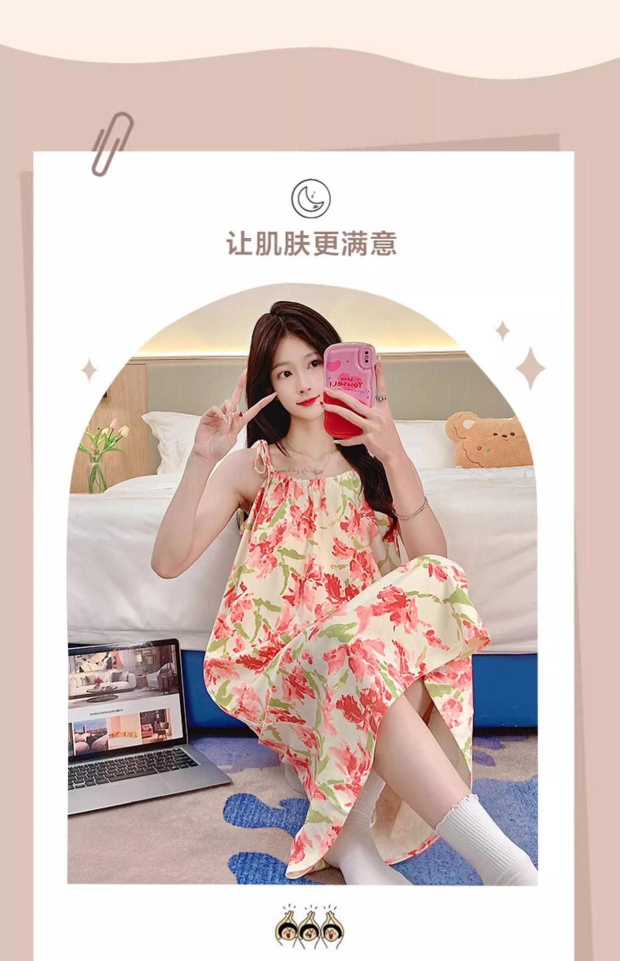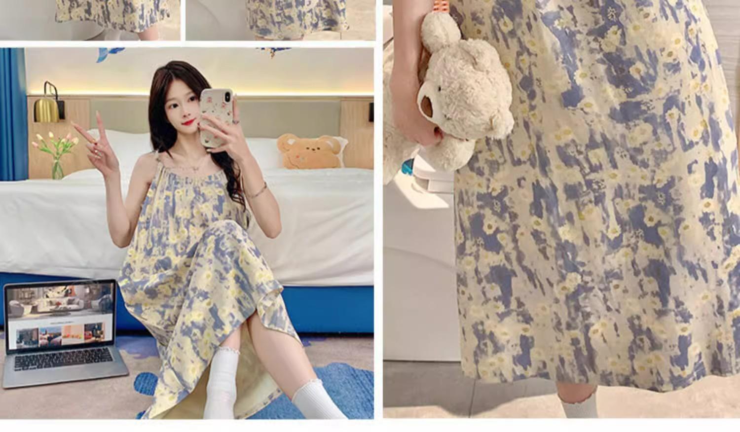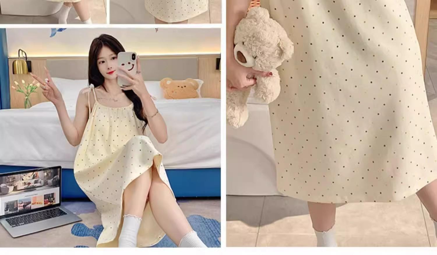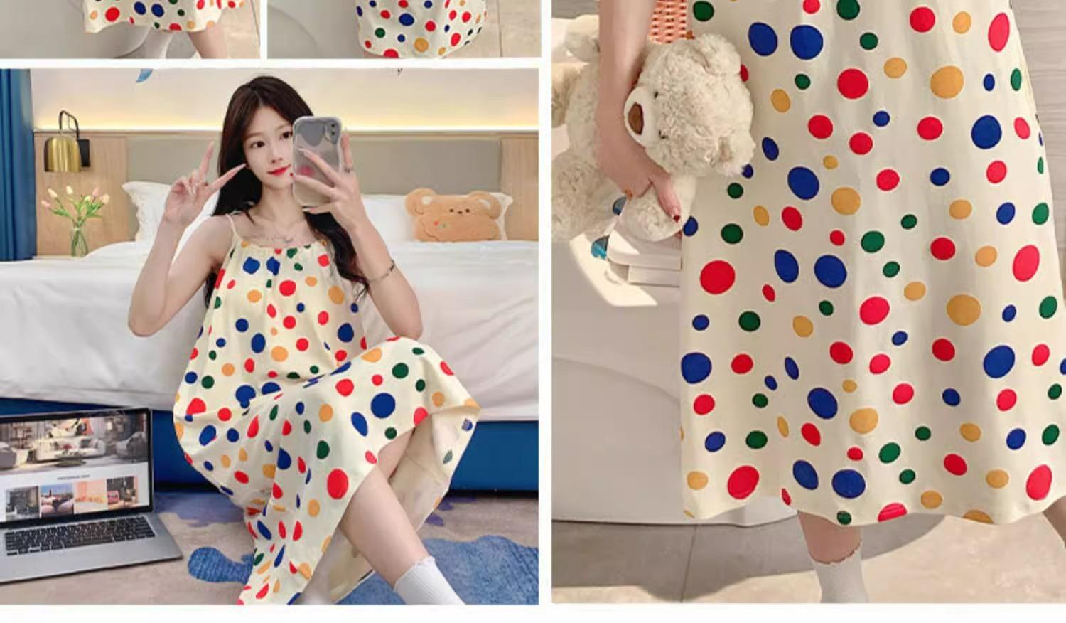Camisola de Pijama Estilo Nuevo de Comercio Exterior Transpirable para Mujer Casual Camisola Ropa de Dormir Algodón Nube Vestido de Noche de Largo Medio