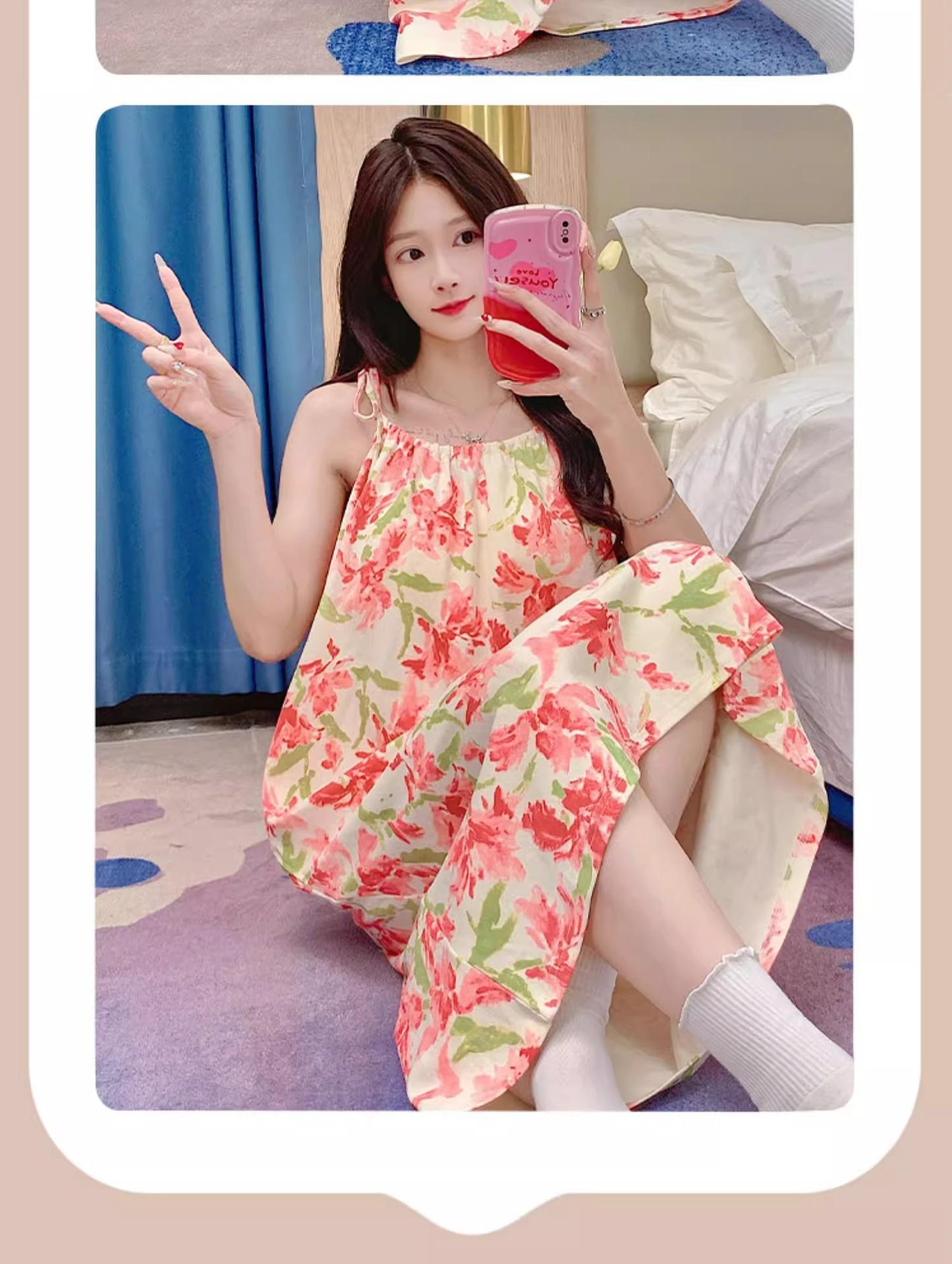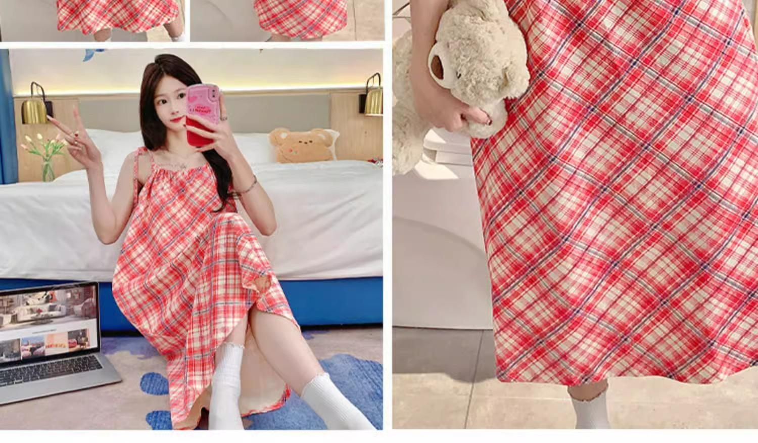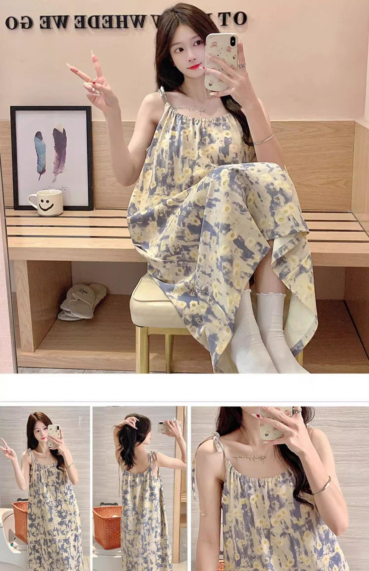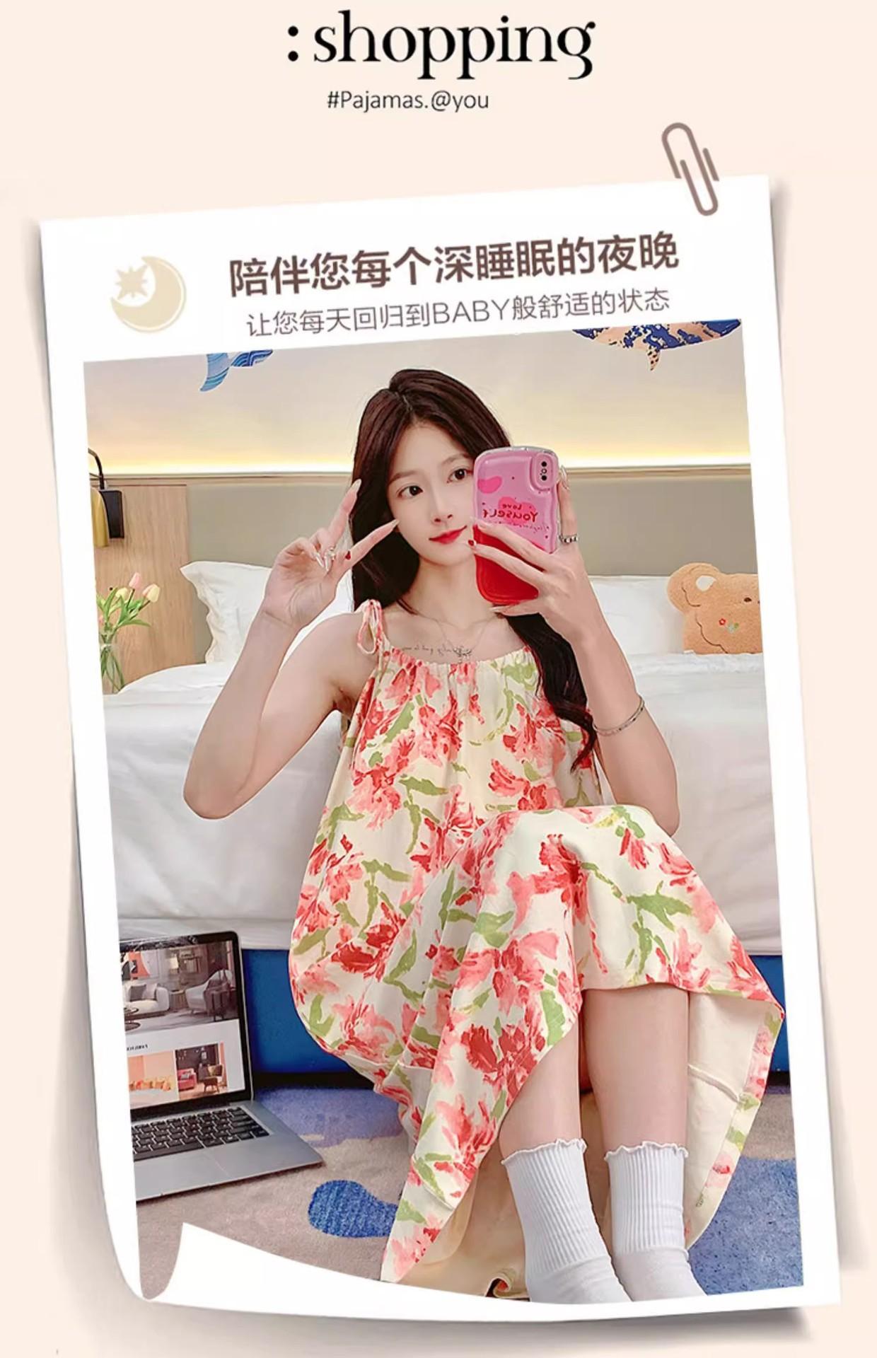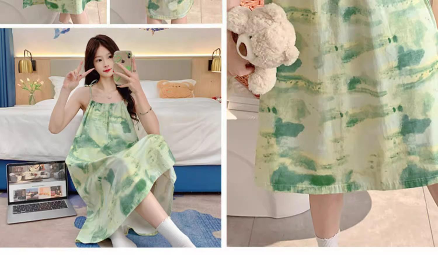 Camisola de Pijama Estilo Nuevo de Comercio Exterior Transpirable para Mujer Casual Camisola Ropa de Dormir Algodón Nube Vestido de Noche de Largo Medio
