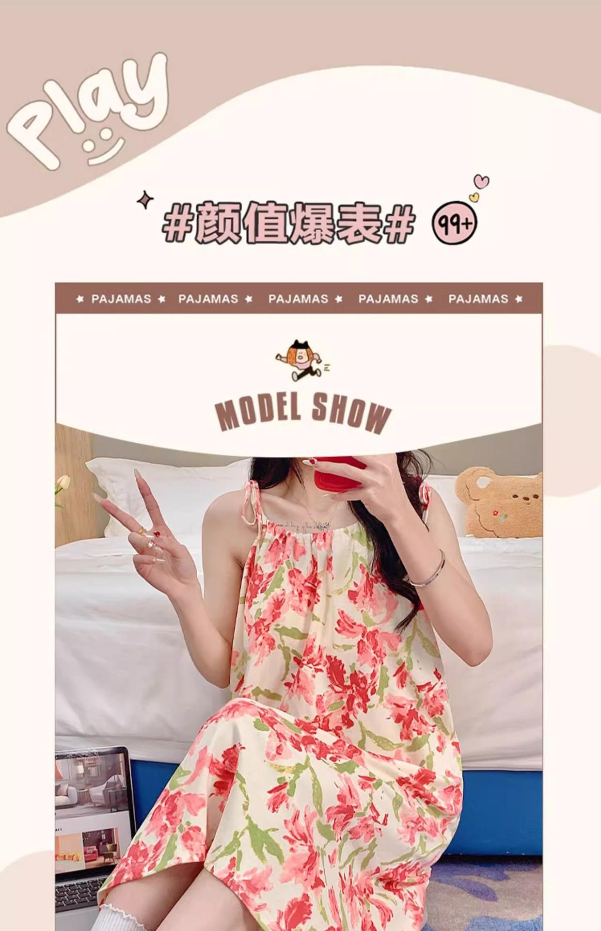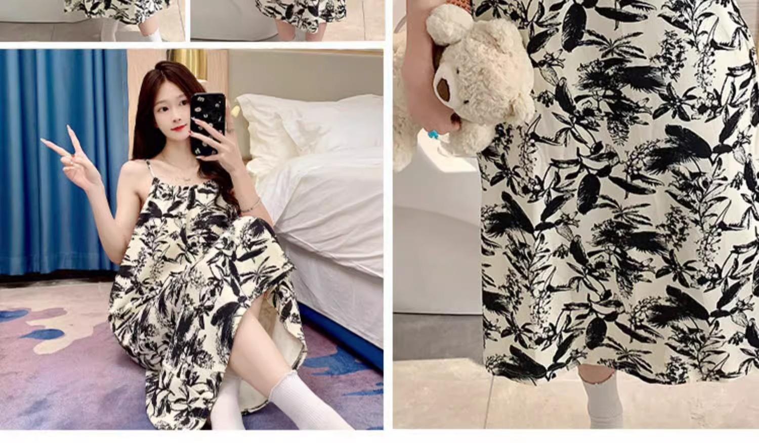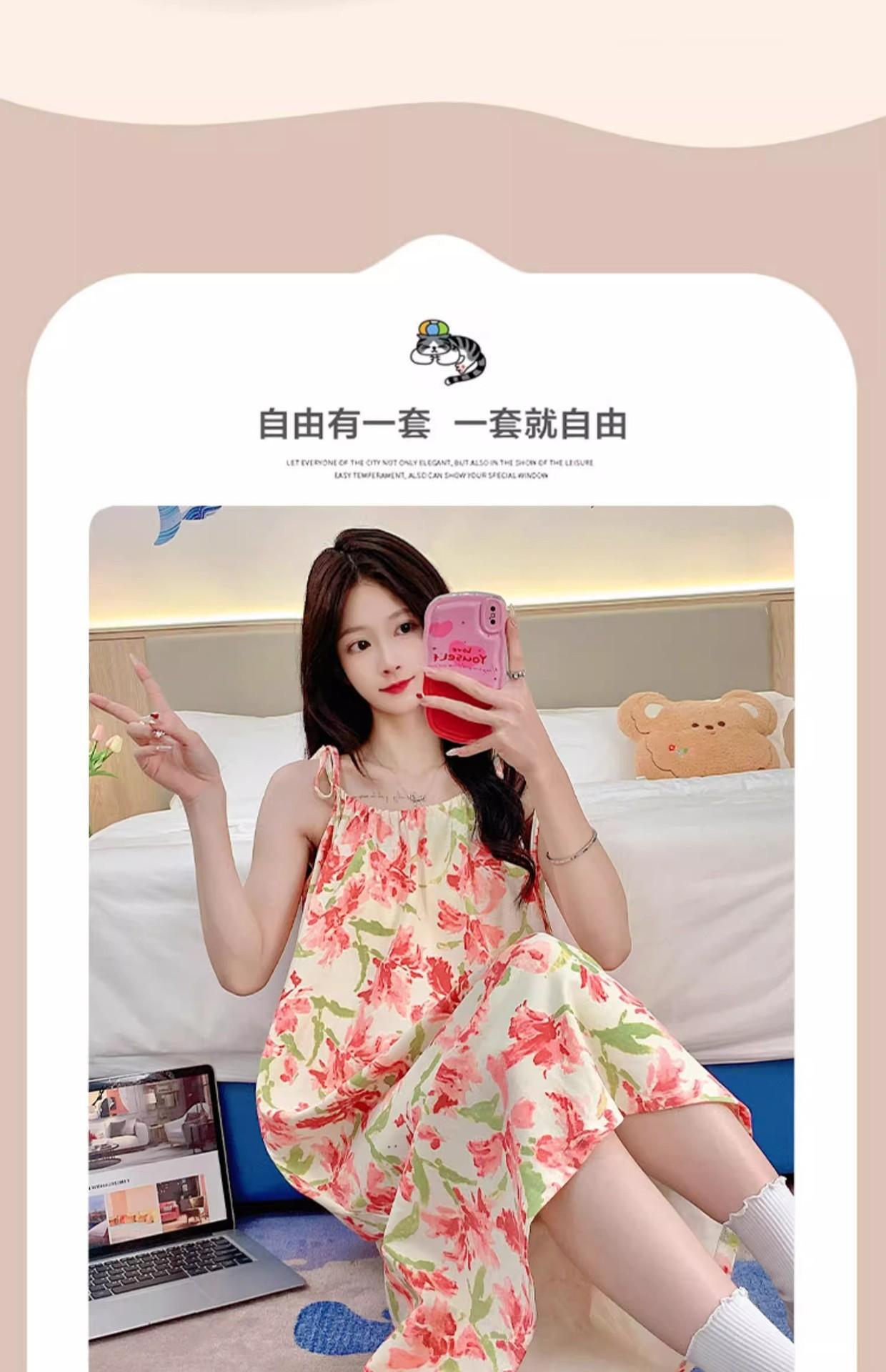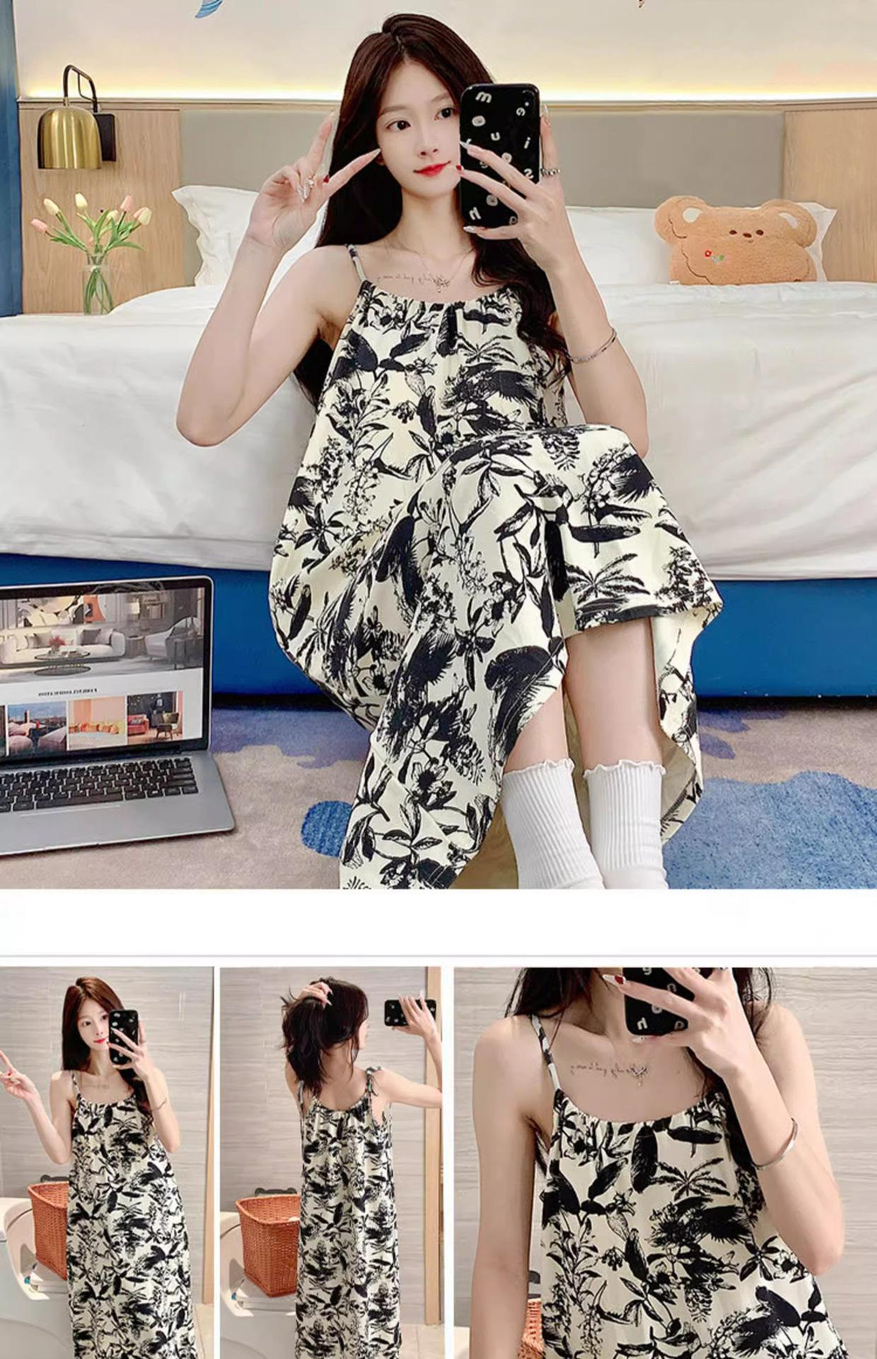 Camisola de Pijama Estilo Nuevo de Comercio Exterior Transpirable para Mujer Casual Camisola Ropa de Dormir Algodón Nube Vestido de Noche de Largo Medio