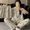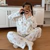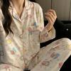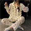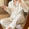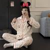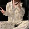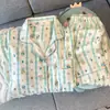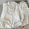 Pijama de Talla Grande para Mujer al Por Mayor del Fabricante Japonés Cuadros Azules Primavera Otoño Manga Larga Ropa de Dormir para Niña Conjunto de Dos Piezas Dropshipping