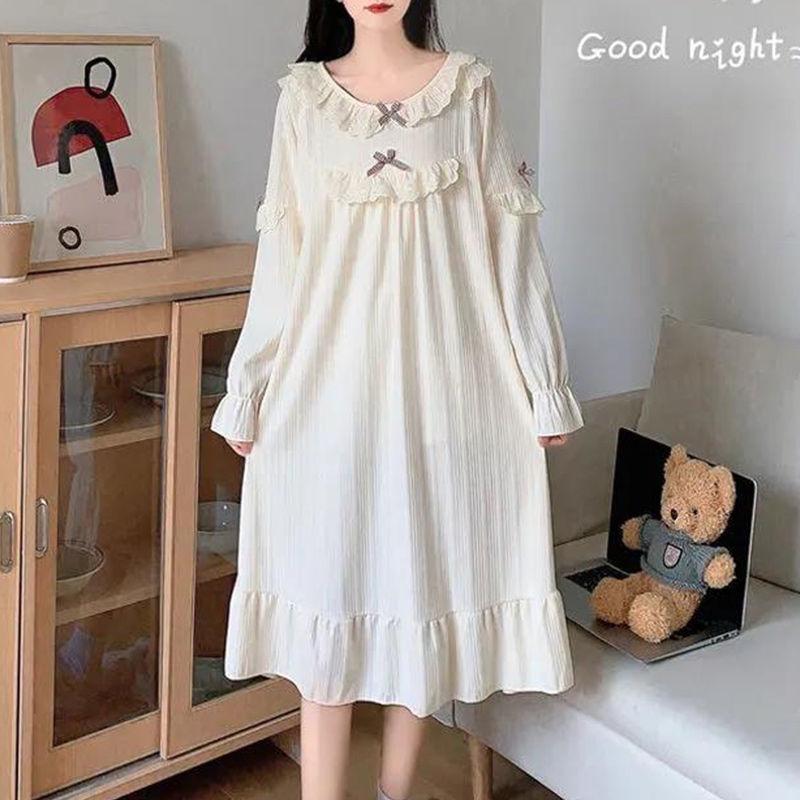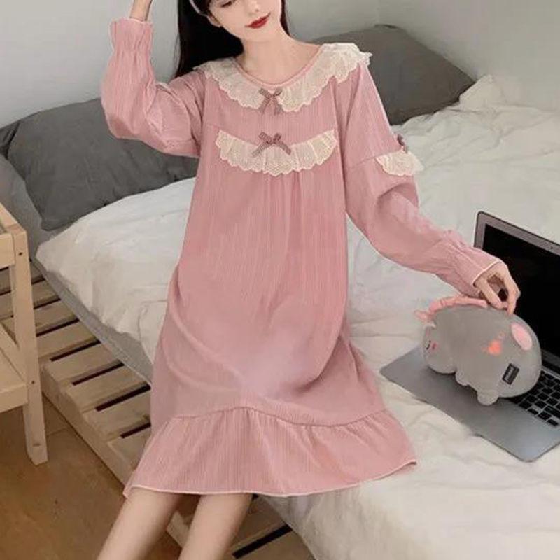 Pijamas para Mujer Primavera y Verano Camisón para Mujer Verano Alta Gama Literario Lindo Dulce Delgado Ropa de Casa Estudiante Camisón de Manga Larga