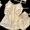 Chaleco de seda de imitación tirantes pijama de seda de hielo para mujer verano versión coreana conjunto sexy de dos piezas de ropa para el hogar una generación de cabello