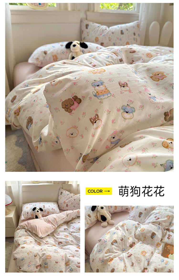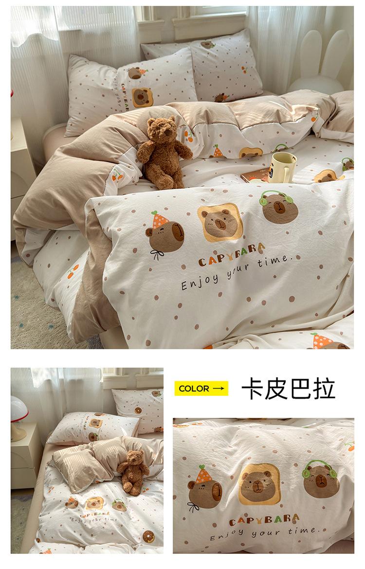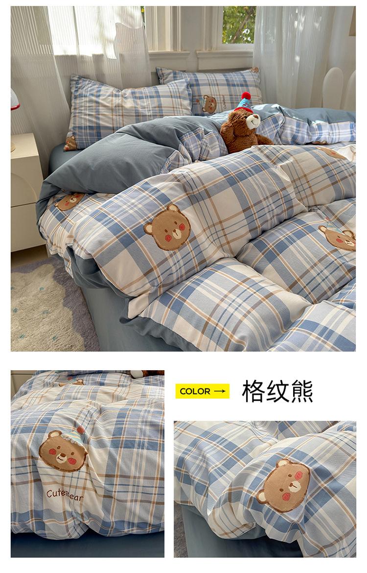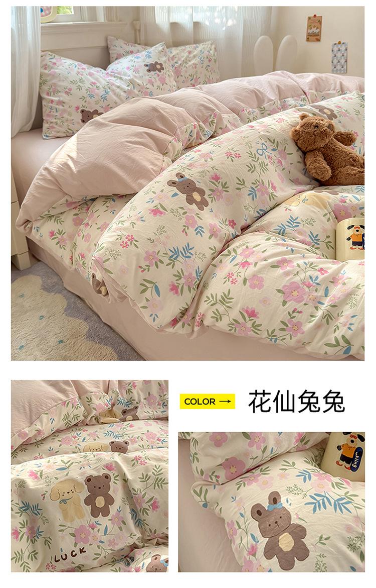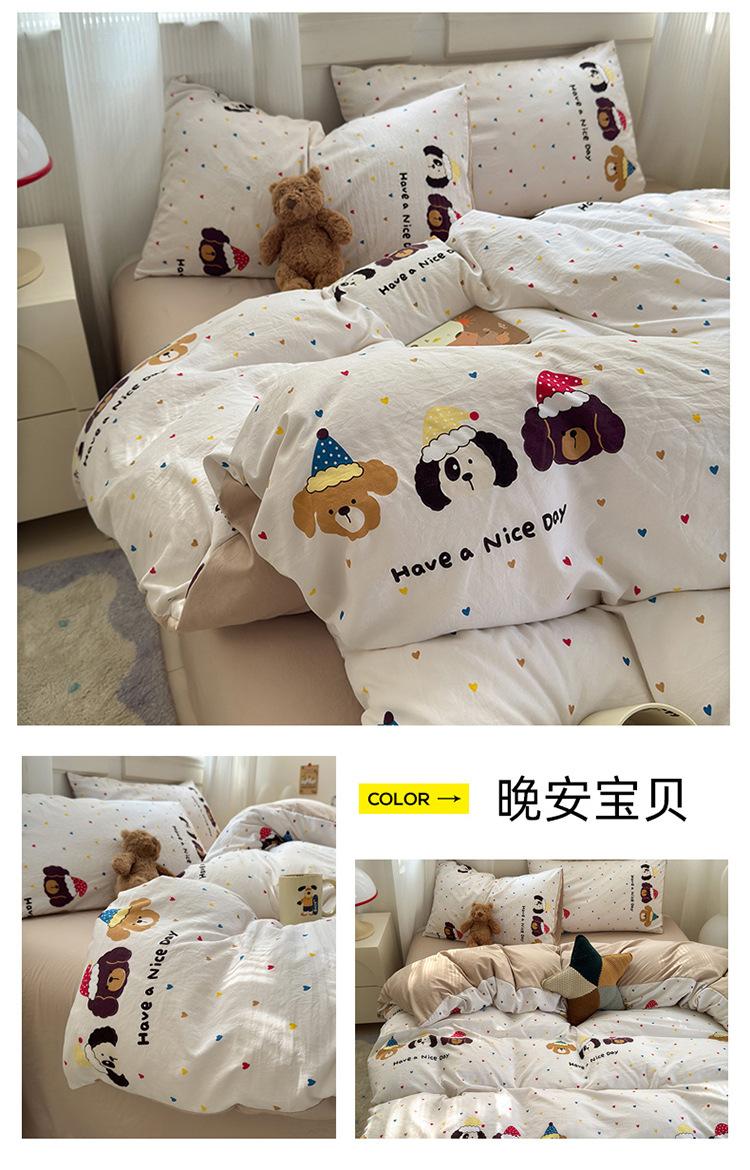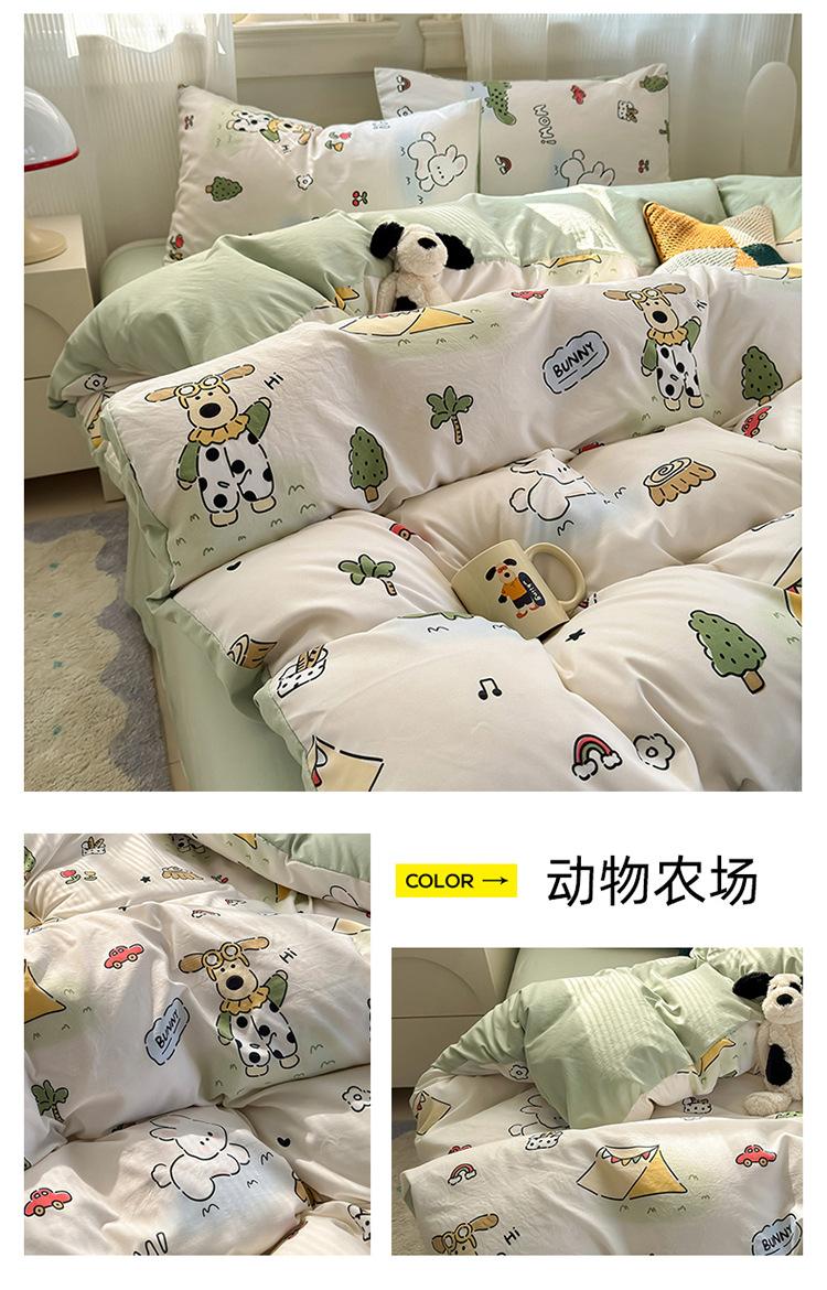 Set de cuatro piezas de algodón puro Clase A para madre y bebé, ins de dibujos animados, súper suave, algodón lavado, funda nórdica individual, sábana, juego de cuatro piezas para dormitorio de estudiantes