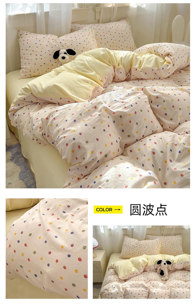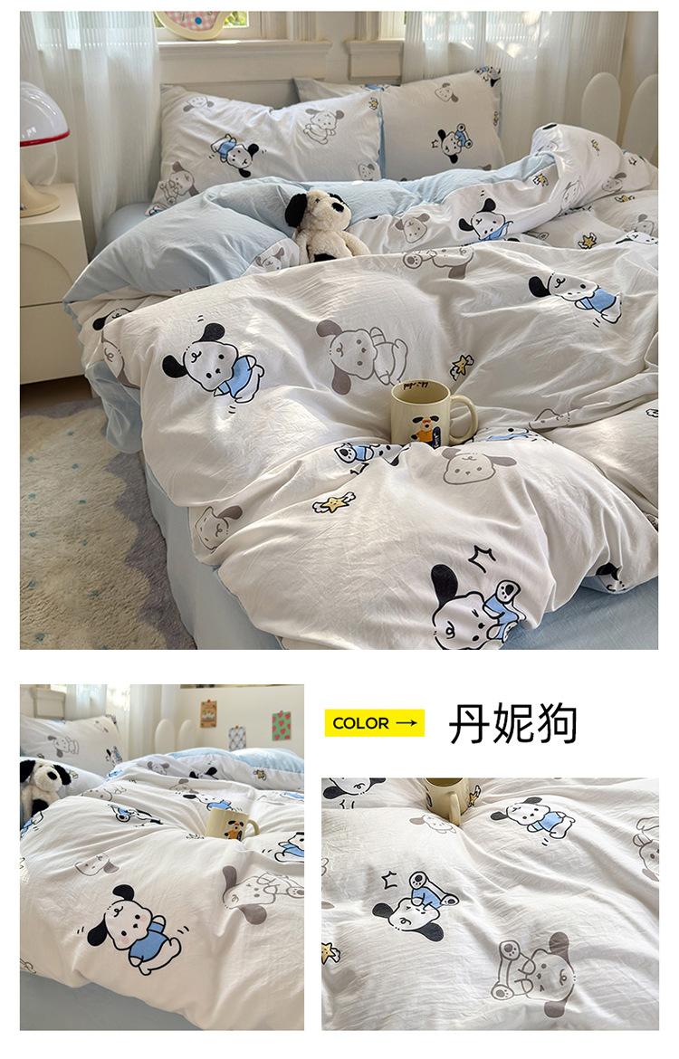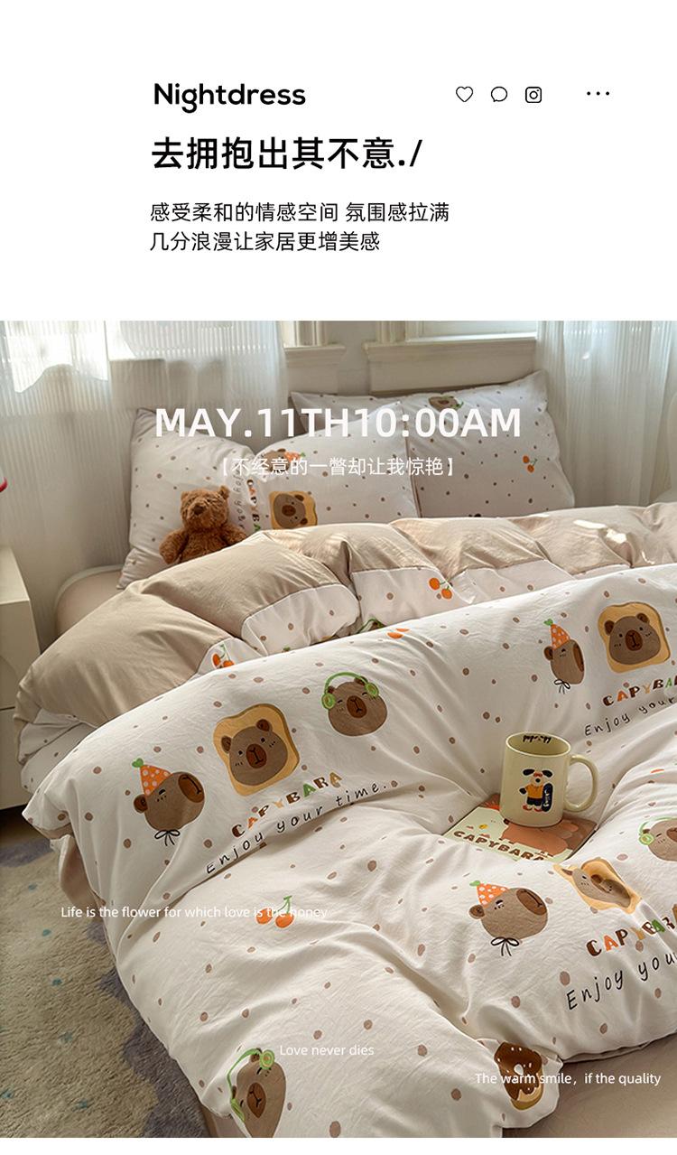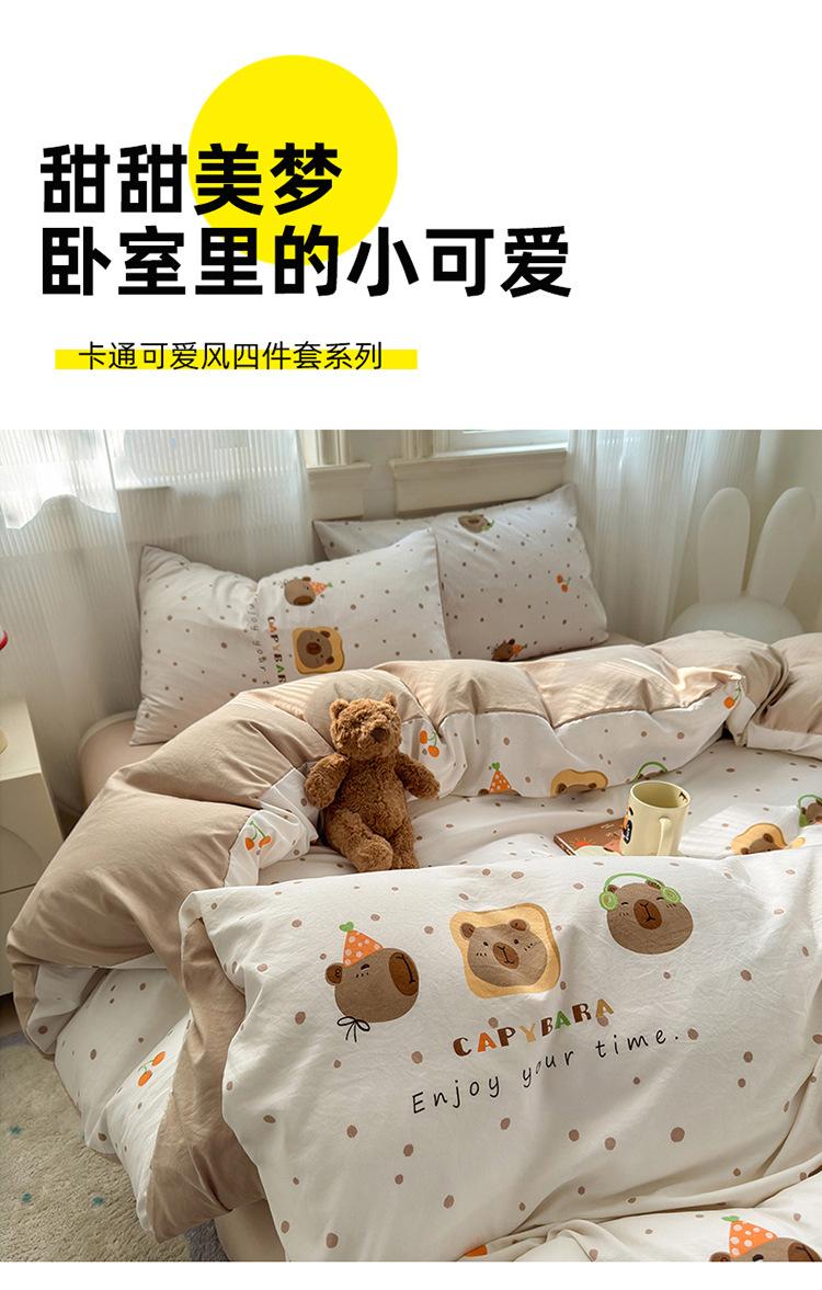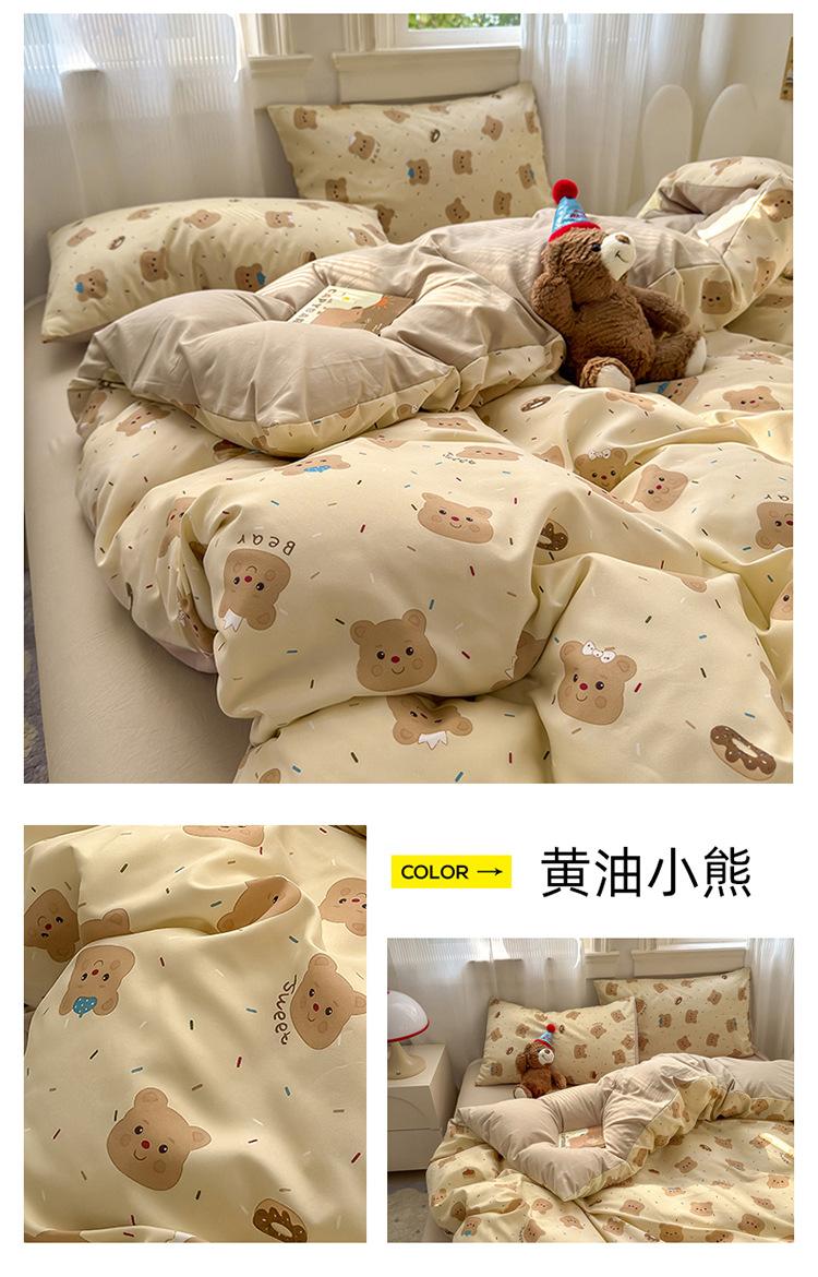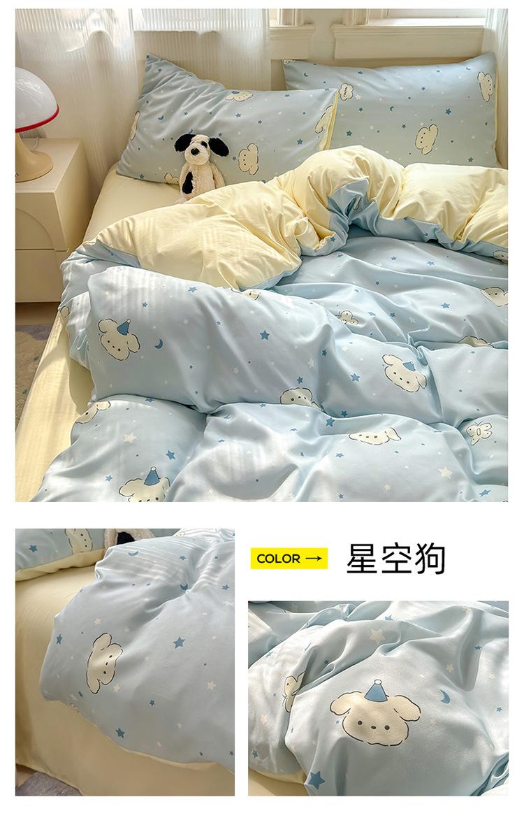 Set de cuatro piezas de algodón puro Clase A para madre y bebé, ins de dibujos animados, súper suave, algodón lavado, funda nórdica individual, sábana, juego de cuatro piezas para dormitorio de estudiantes