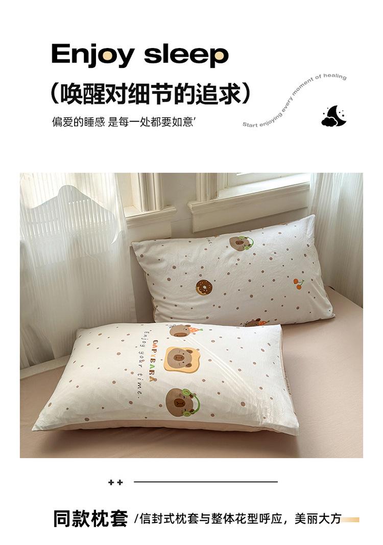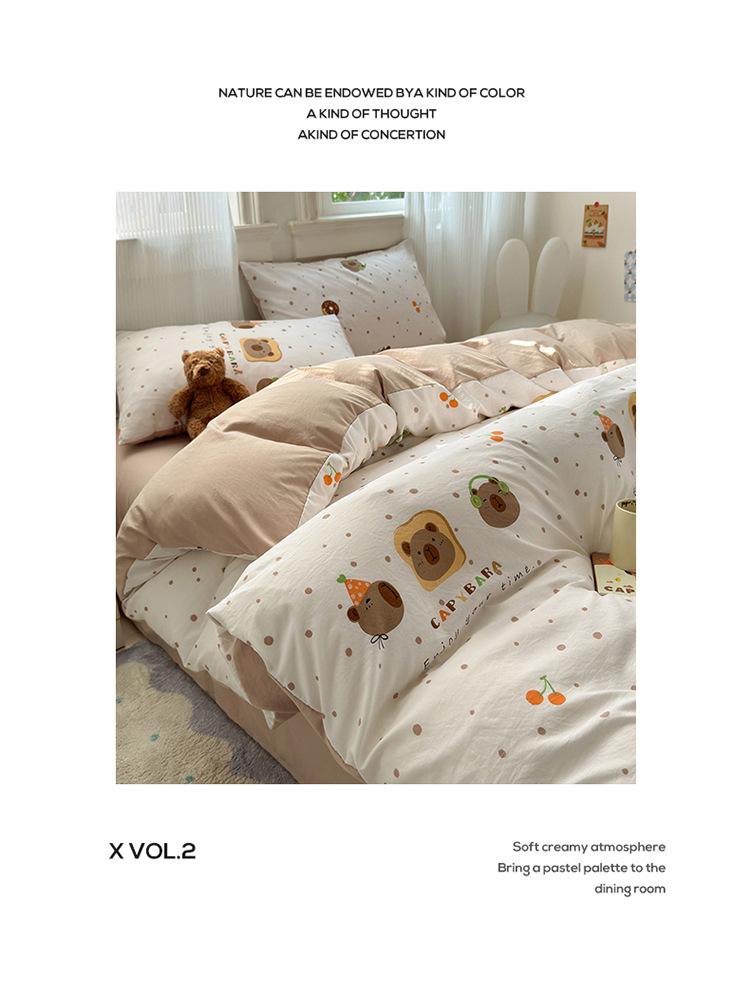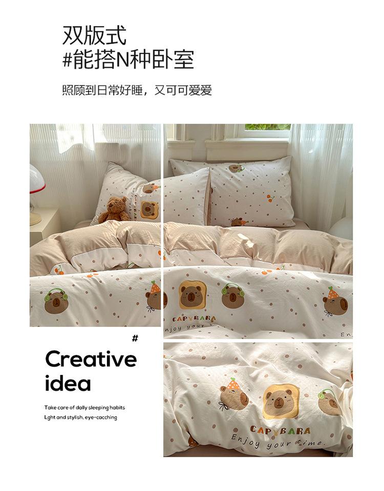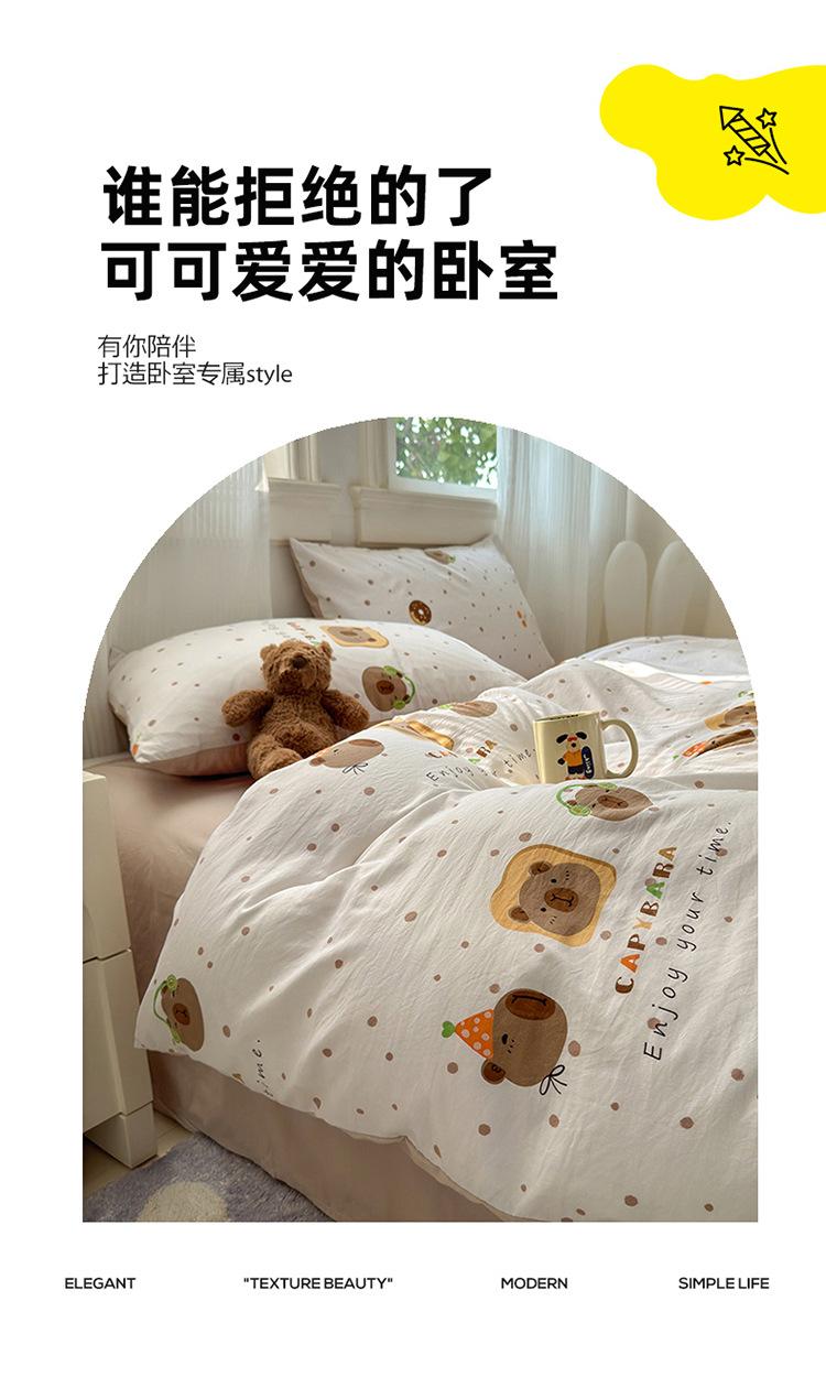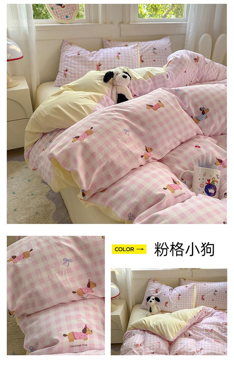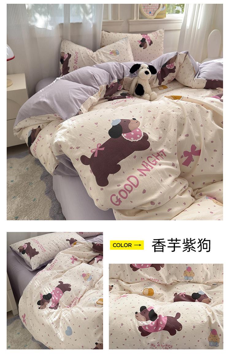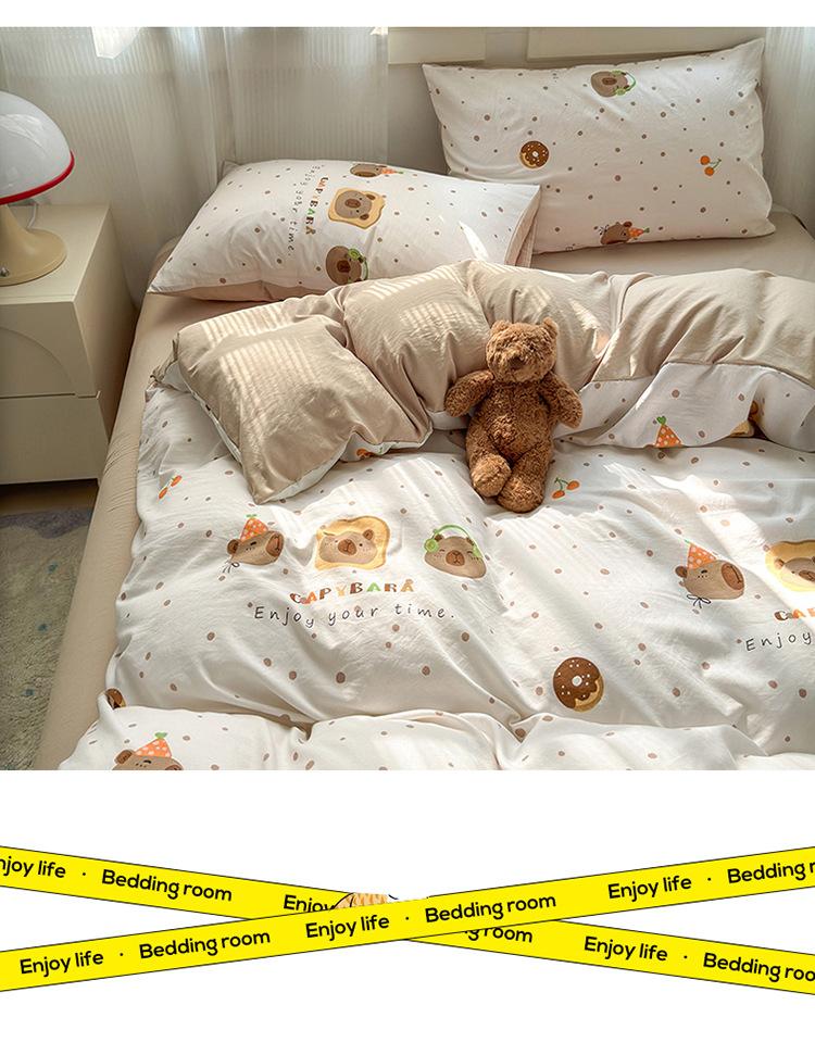 Set de cuatro piezas de algodón puro Clase A para madre y bebé, ins de dibujos animados, súper suave, algodón lavado, funda nórdica individual, sábana, juego de cuatro piezas para dormitorio de estudiantes