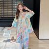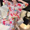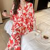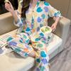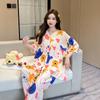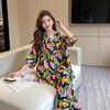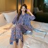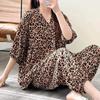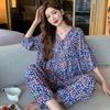 Pijama nuevo de algodón seda para mujer, pantalones de talla grande, mangas tres cuartos, traje holgado de algodón seda para estar en casa