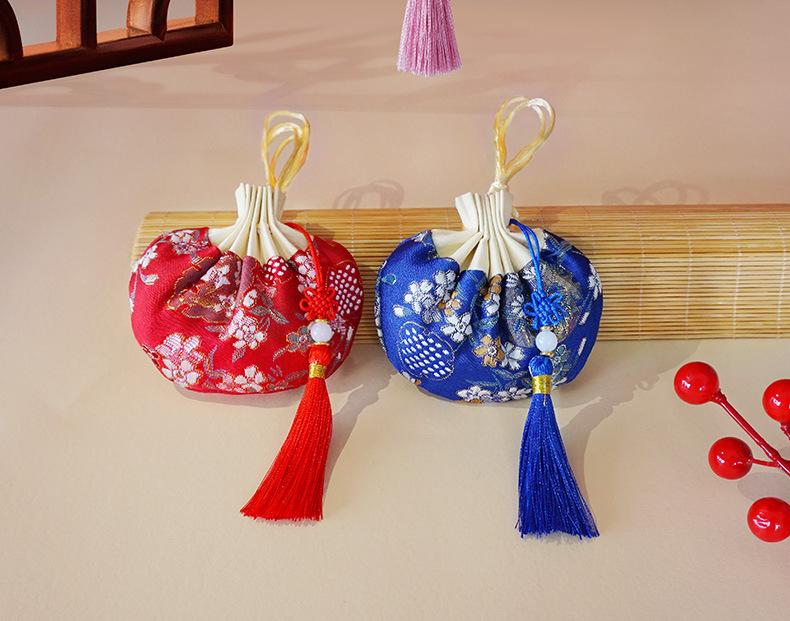 Bolsita con Borla Bolsa Vacía Materiales DIY Bordado Estilo Antiguo Bolsa de la Suerte Accesorios Hanfu Bolso de Brocado de Mano Hecho a Mano