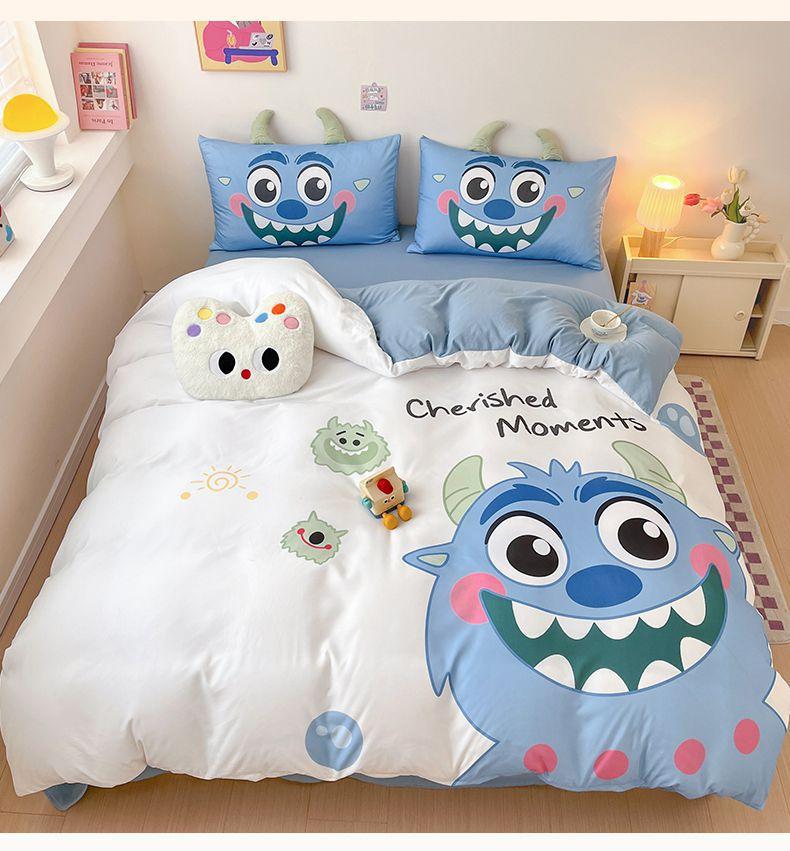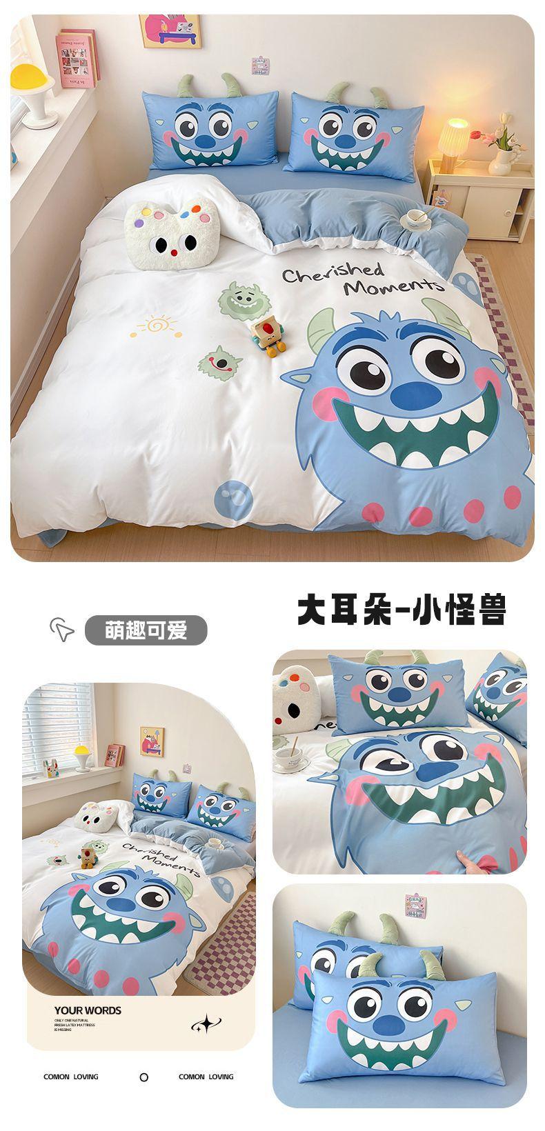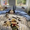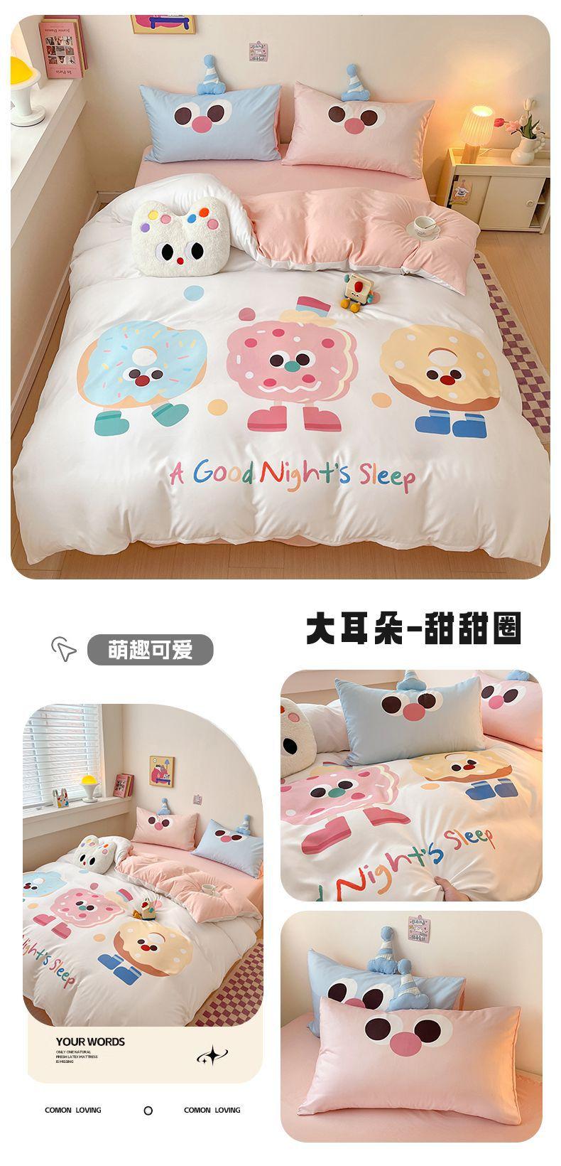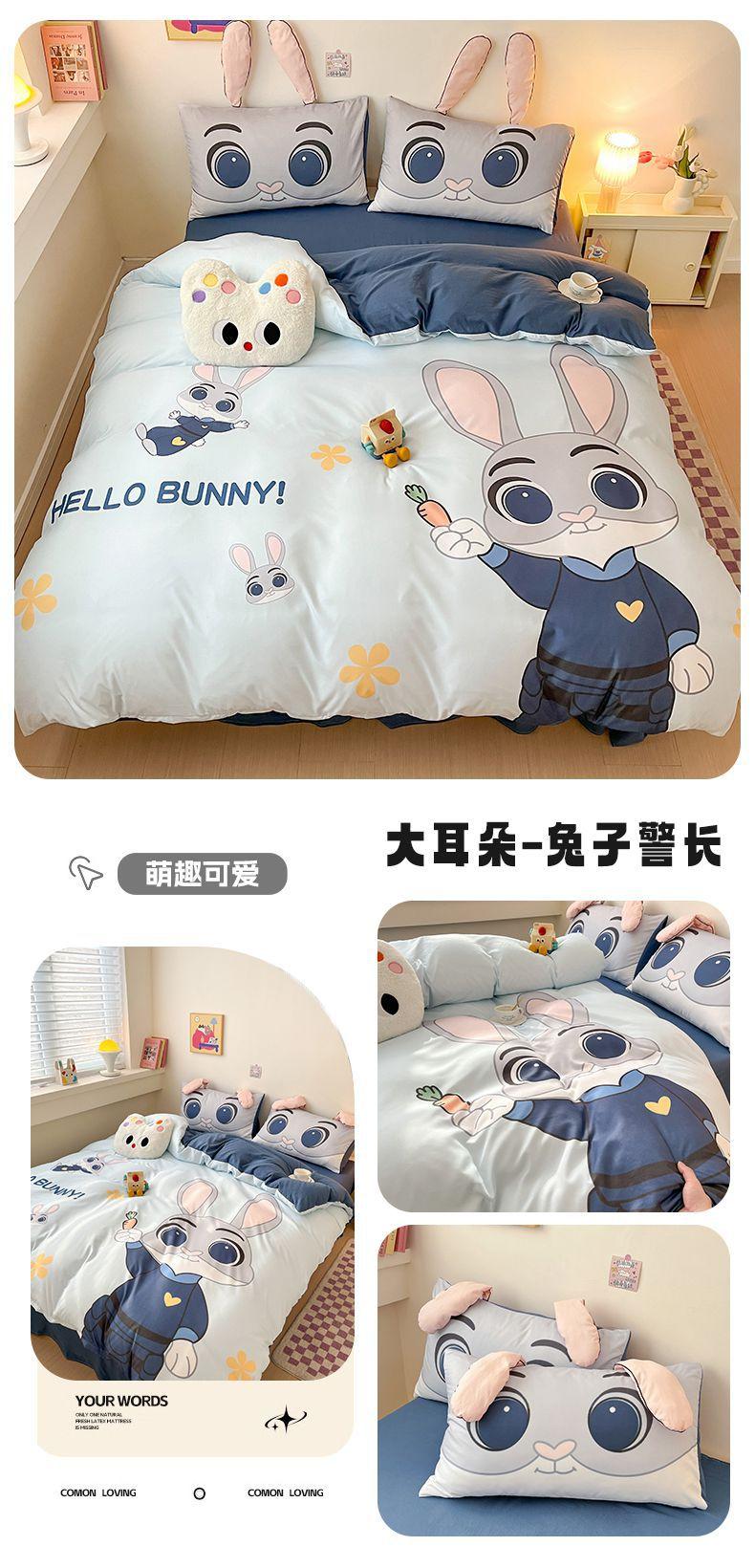 Juego de Cuatro Piezas de Algodón Lavado Suave Dibujos Animados para Niños Conejo Ropa de Cama Dormitorio Juego de Tres Piezas Funda Nórdica Sábana Sábana Ajustable