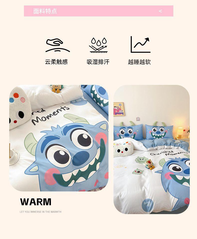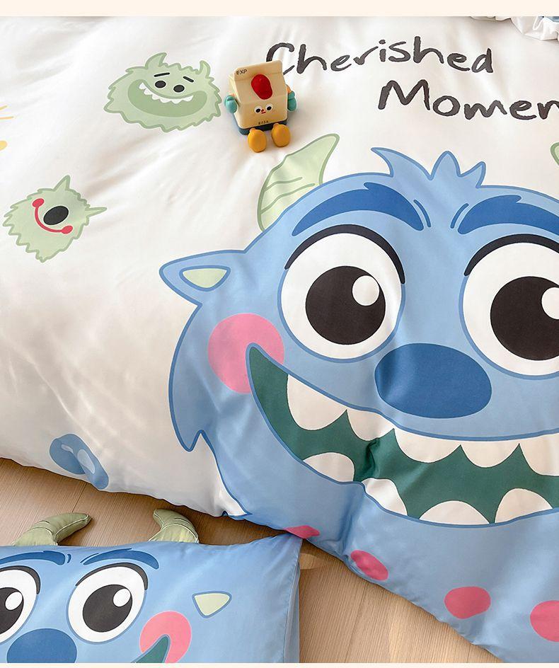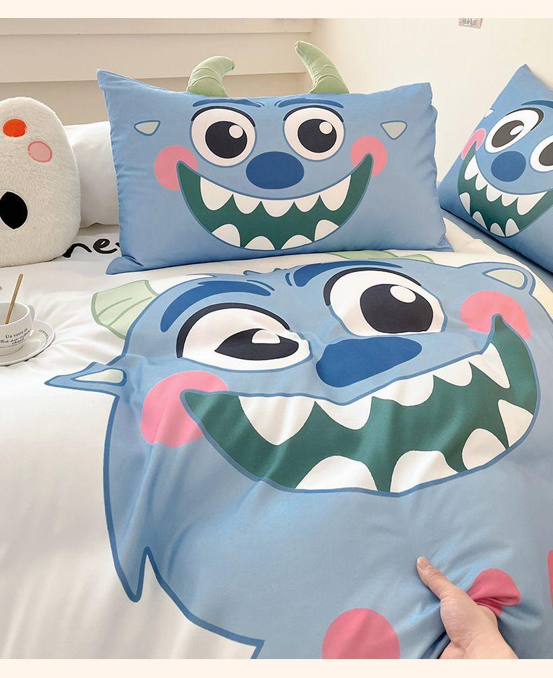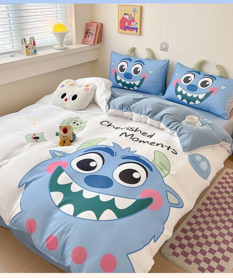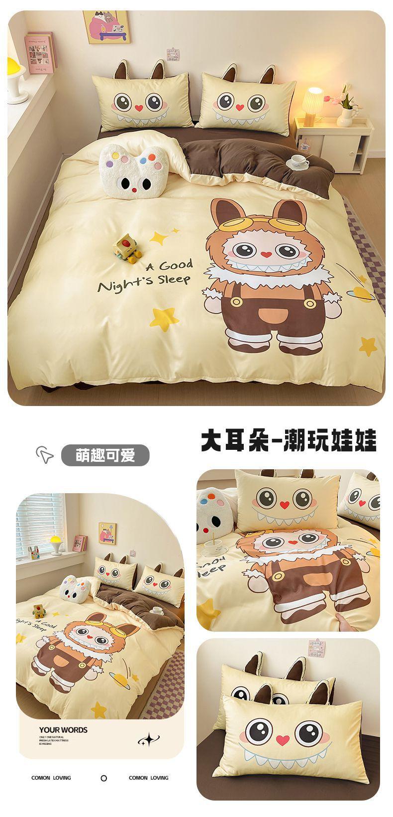 Juego de Cuatro Piezas de Algodón Lavado Suave Dibujos Animados para Niños Conejo Ropa de Cama Dormitorio Juego de Tres Piezas Funda Nórdica Sábana Sábana Ajustable