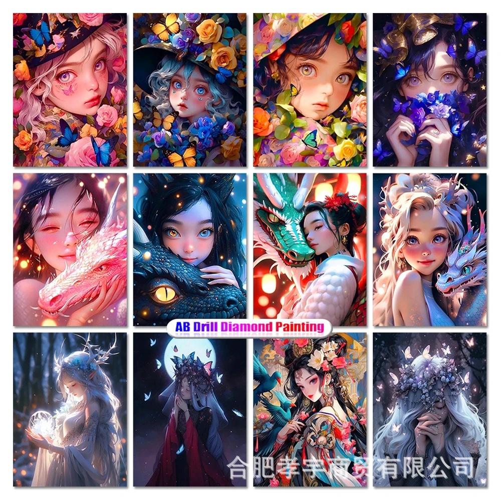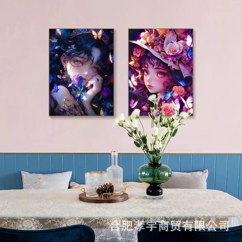 Ventas Directas de Fábrica Pegatinas Serie Chica Anime 5D Set de Pintura de Diamantes Taladro Redondo Completo Bordado de Diamantes Hecho a Mano Mosaico