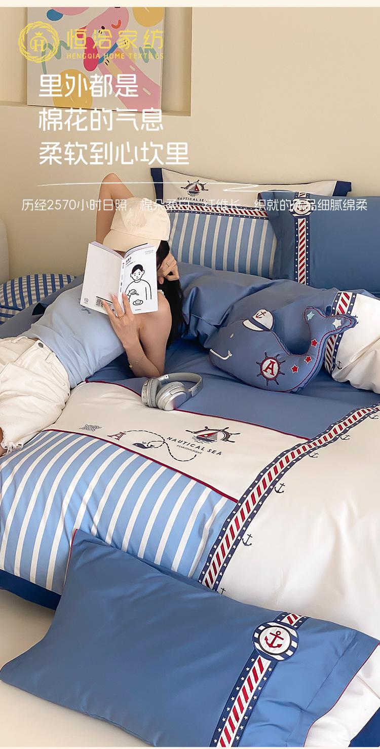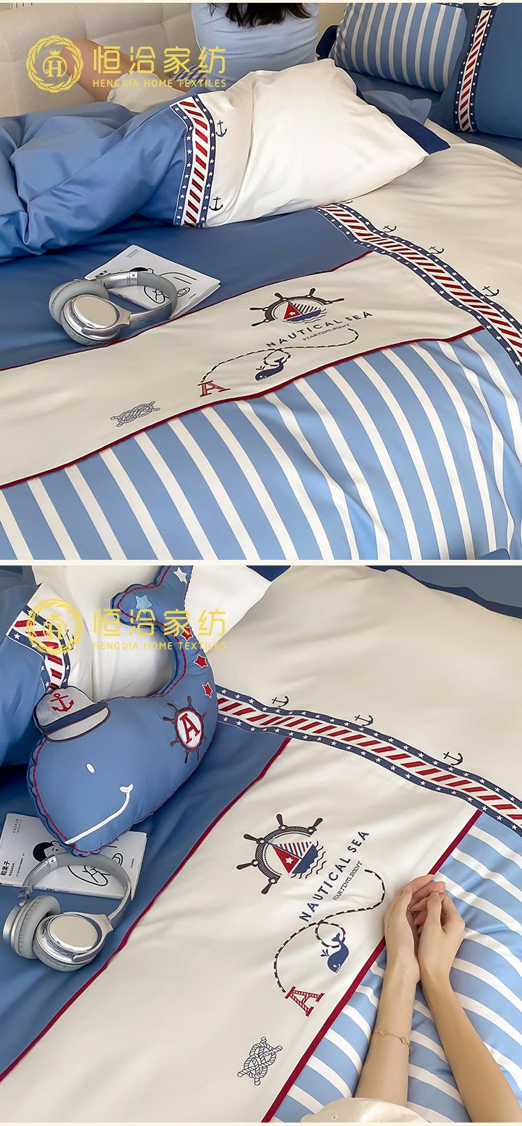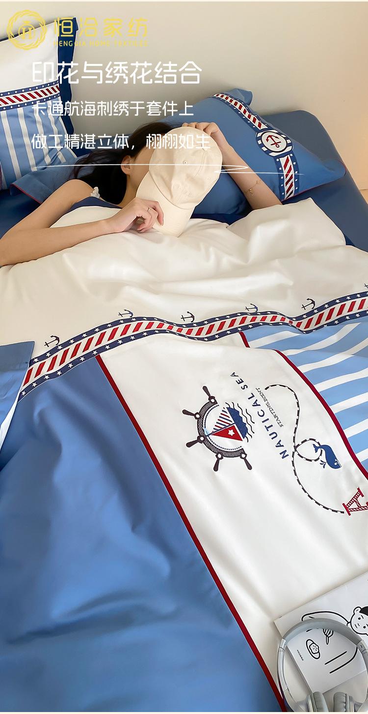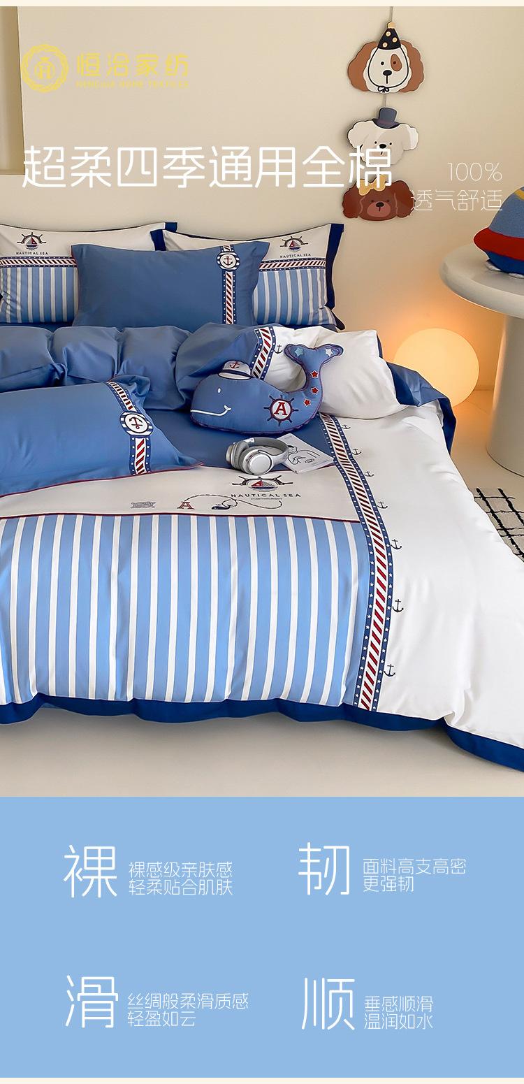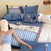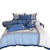 Juego de cuatro piezas de algodón súper suave Free Pillow Boy Bordado Náutico Algodón Puro Empalme Funda Nórdica 1.2m Funda Nórdica Ropa de Cama Azul