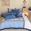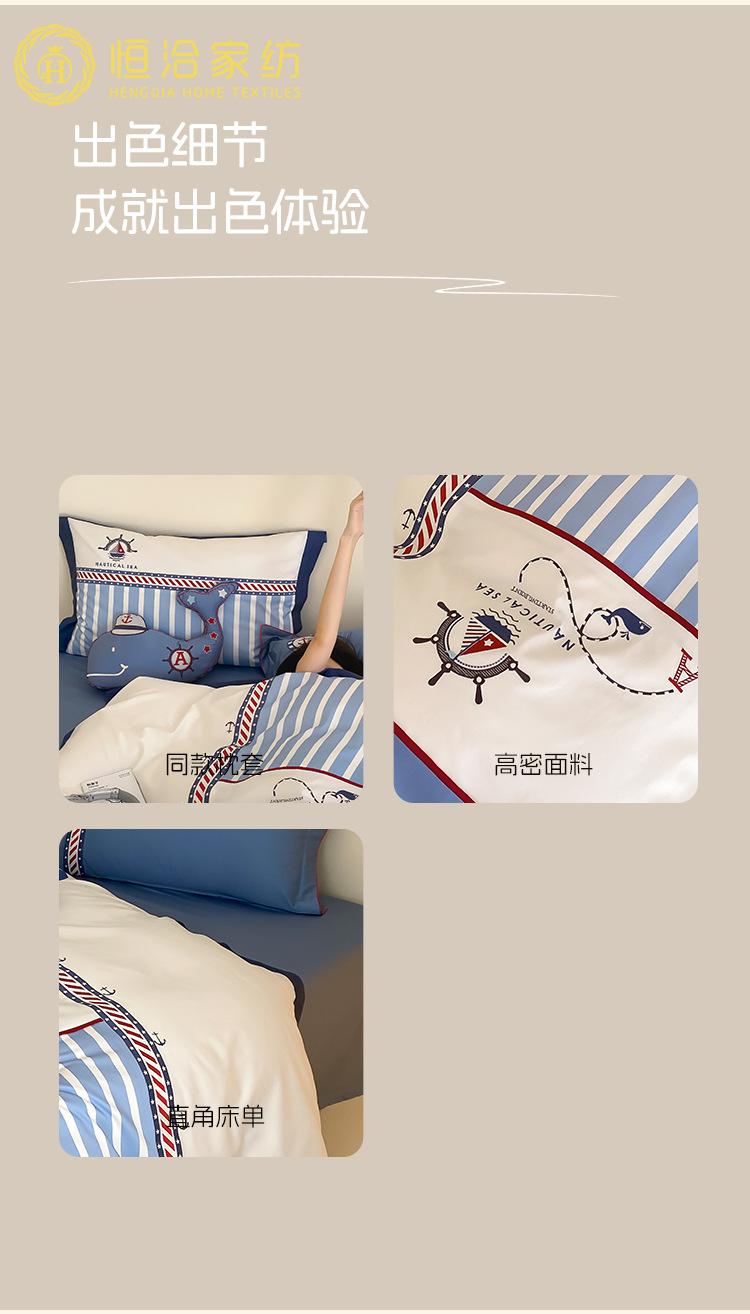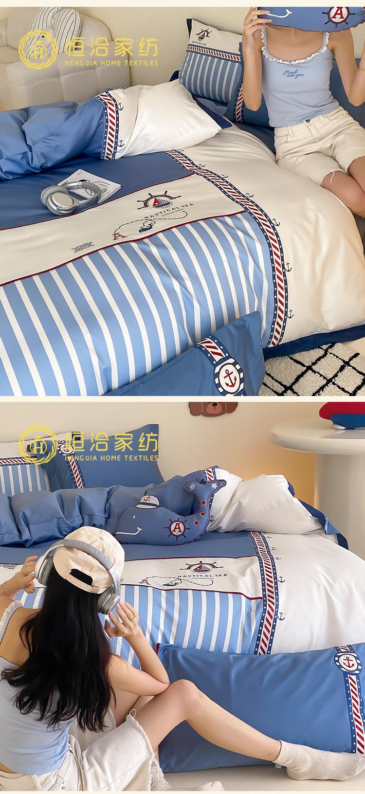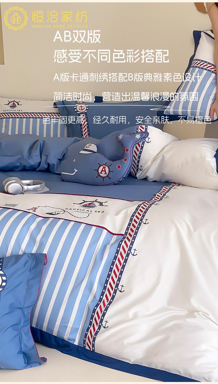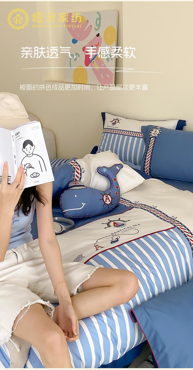 Juego de cuatro piezas de algodón súper suave Free Pillow Boy Bordado Náutico Algodón Puro Empalme Funda Nórdica 1.2m Funda Nórdica Ropa de Cama Azul