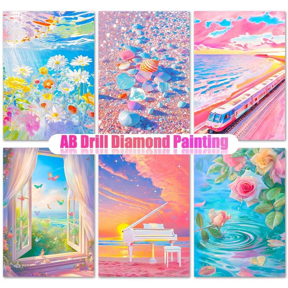 Ventas Directas de Fábrica Pintura de Diamantes Comercio Exterior Transfronterizo Nueva Serie Rosa Paisaje AB Taladro Completo Pintura de Diamantes Cubo Mágico Taladro Redondo Fabricante