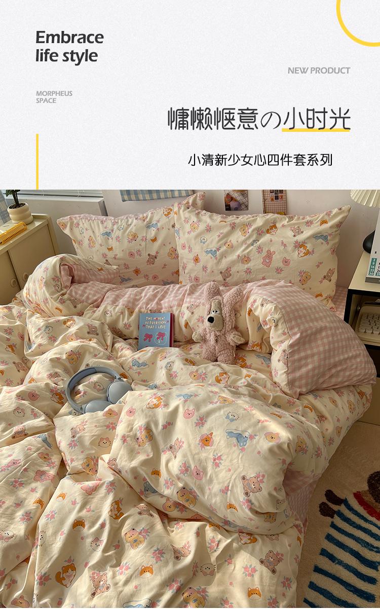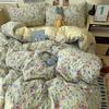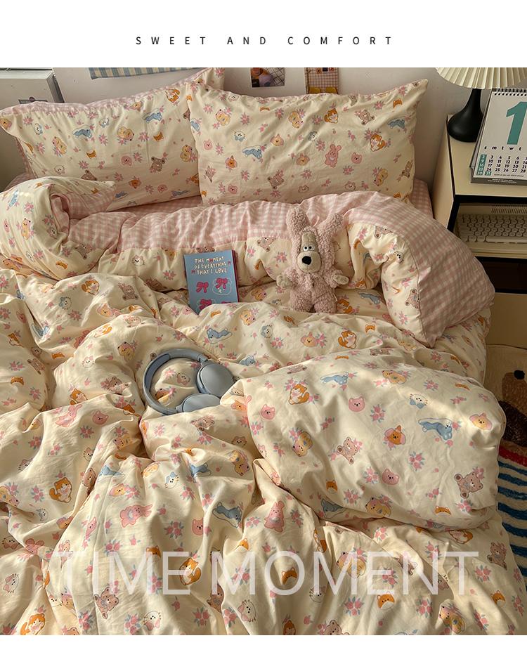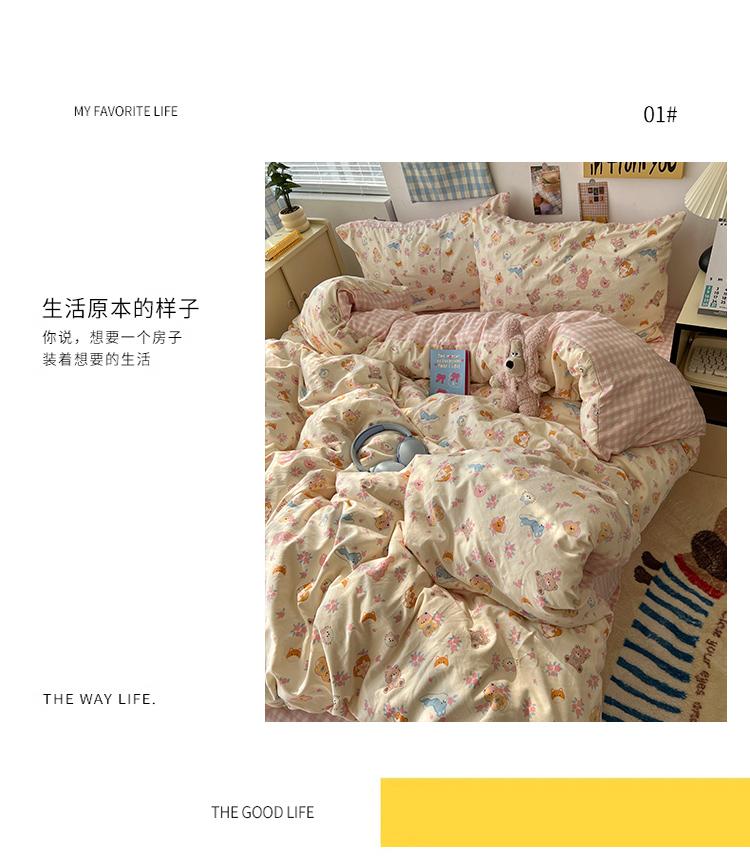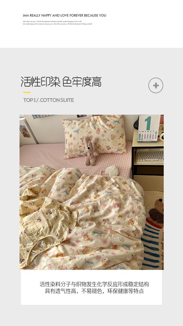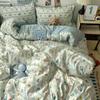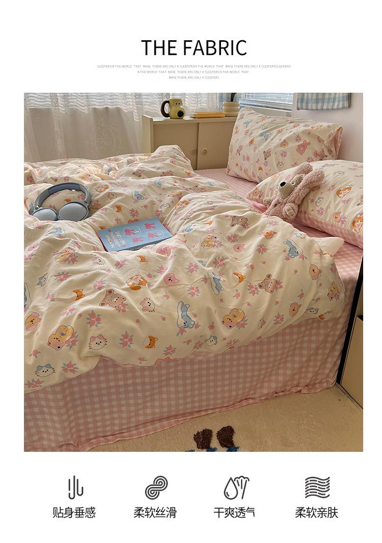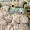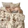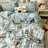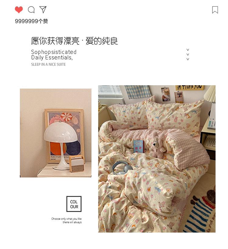 Juego de cuatro piezas de Clase A para Madre y Bebé Estilo ins Edredón de Algodón Lavado Funda de Edredón Sábana Bajera Dormitorio de Estudiantes Juego de Cama de Tres Piezas Nantong