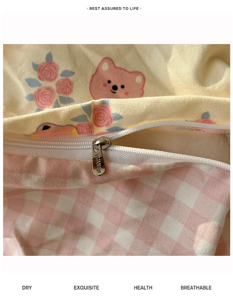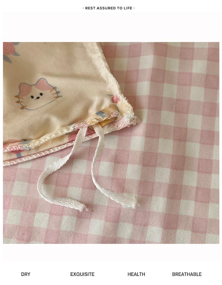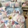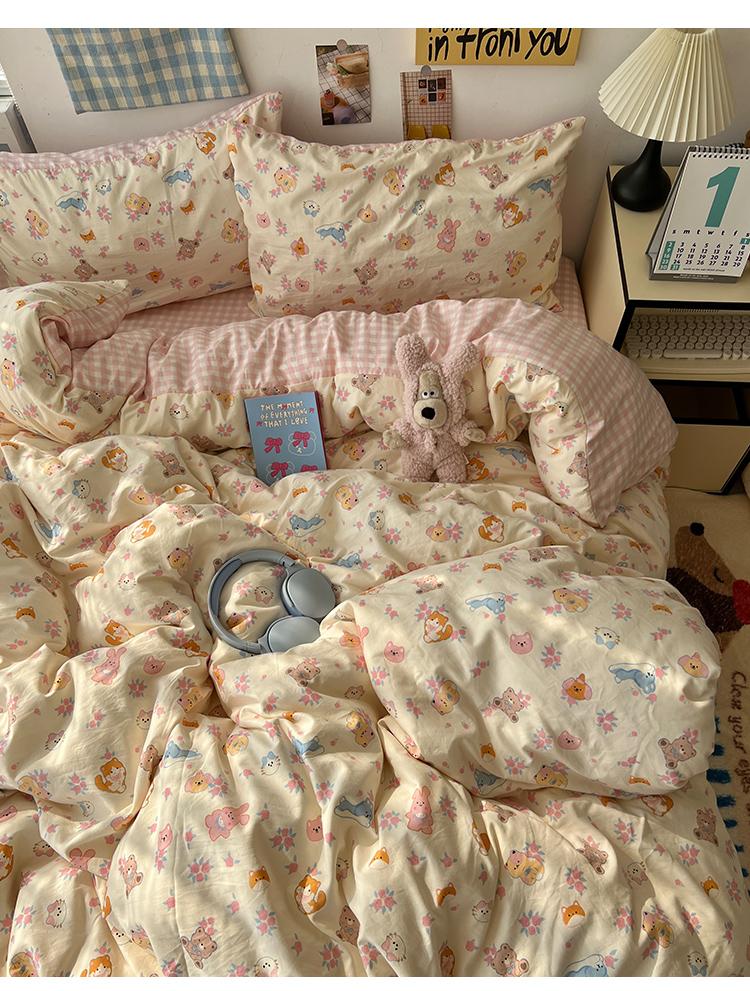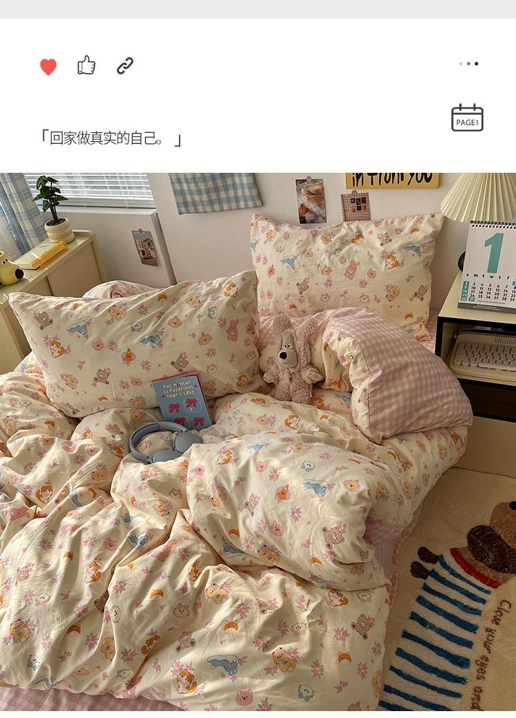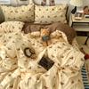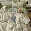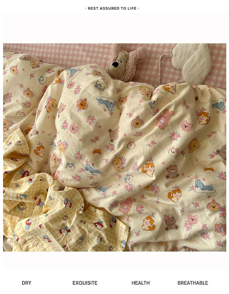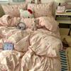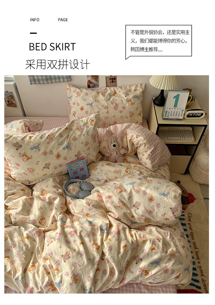 Juego de cuatro piezas de Clase A para Madre y Bebé Estilo ins Edredón de Algodón Lavado Funda de Edredón Sábana Bajera Dormitorio de Estudiantes Juego de Cama de Tres Piezas Nantong