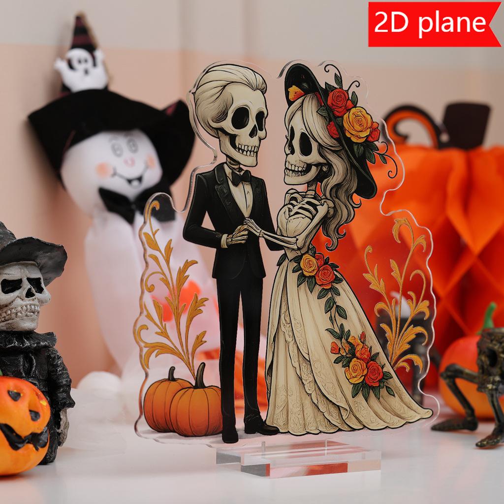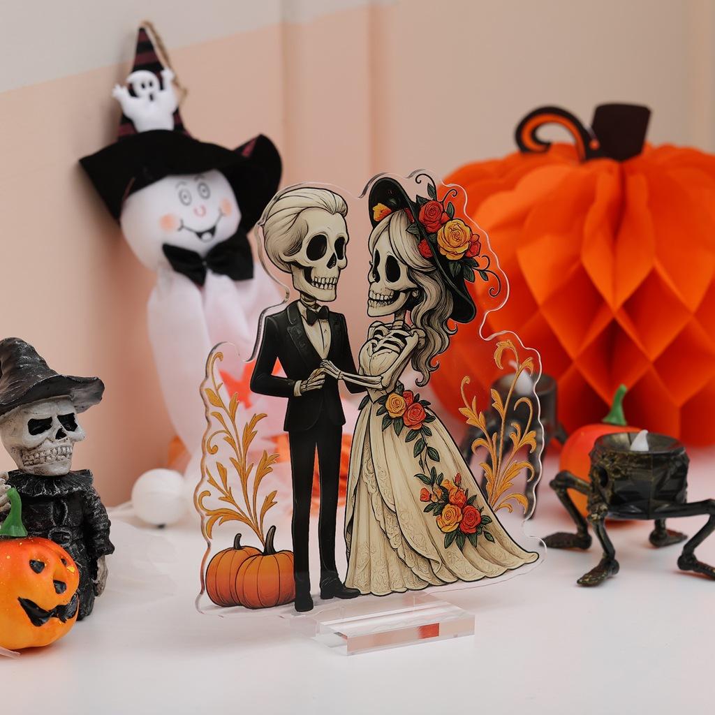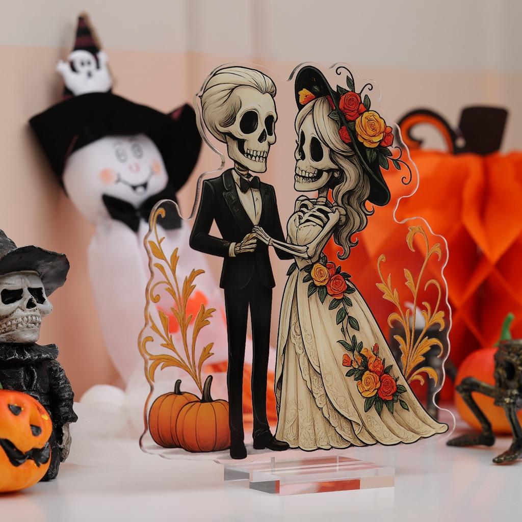 Adorno decorativo acrílico con tema de boda de esqueleto de Halloween. Adorno decorativo acrílico