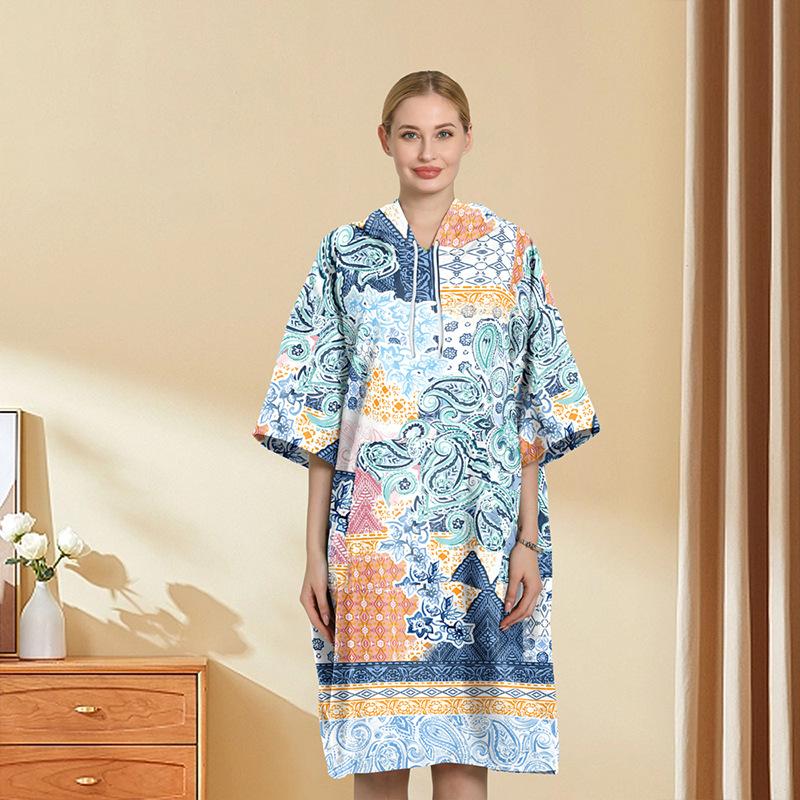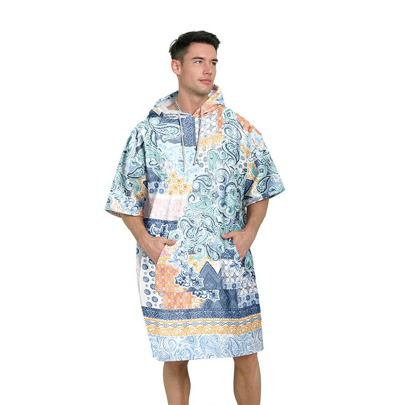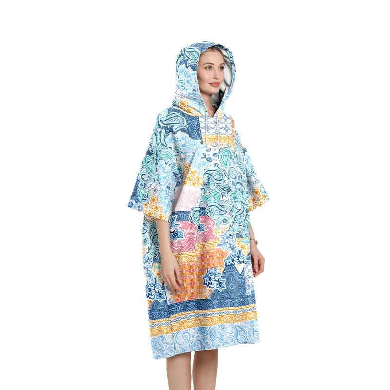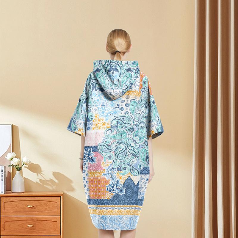 Amazon Bata de Playa con Capucha de Forro Polar de Doble Cara Poncho de Secado Rápido Capa de Buceo Estilo Étnico Estampado