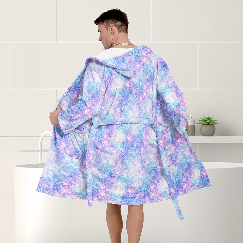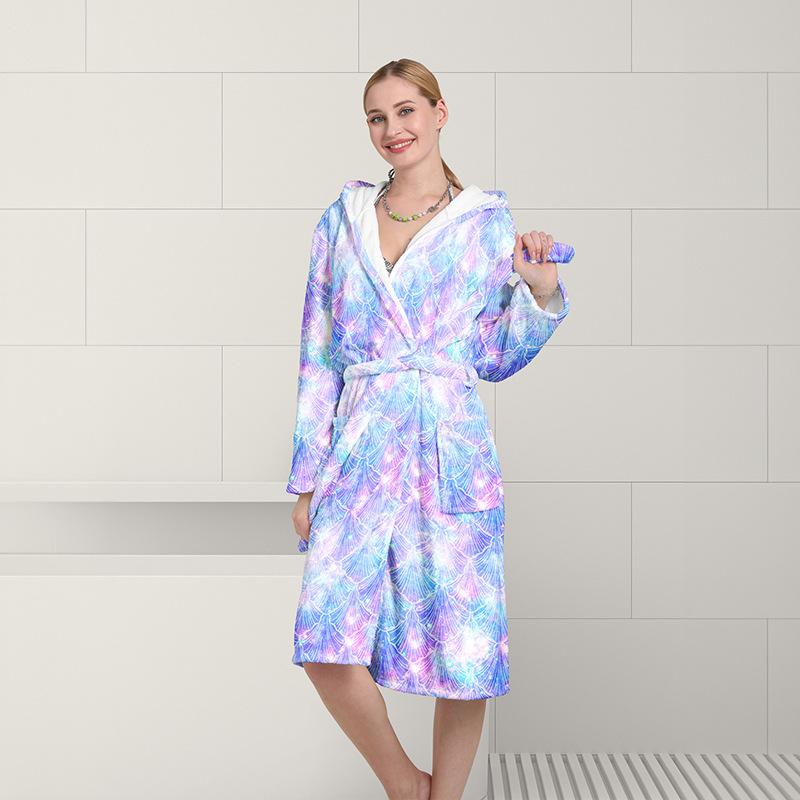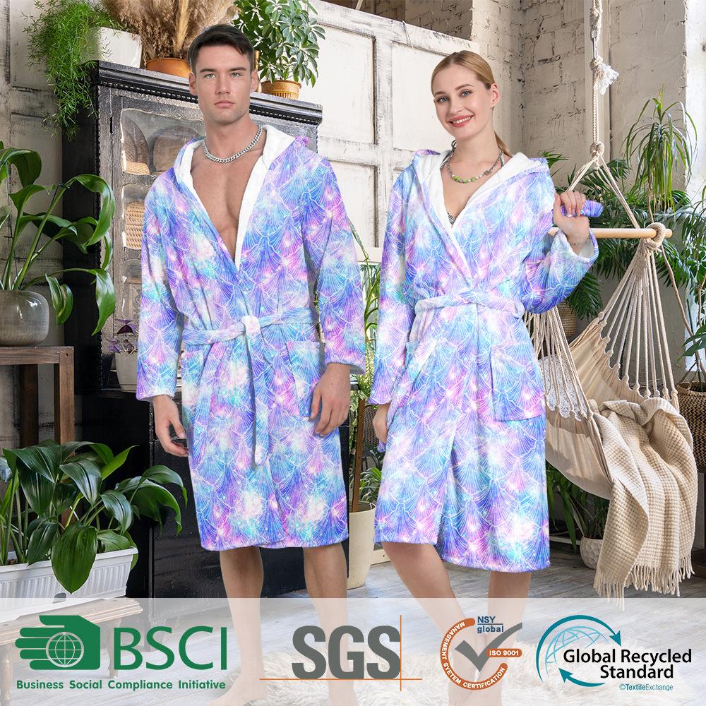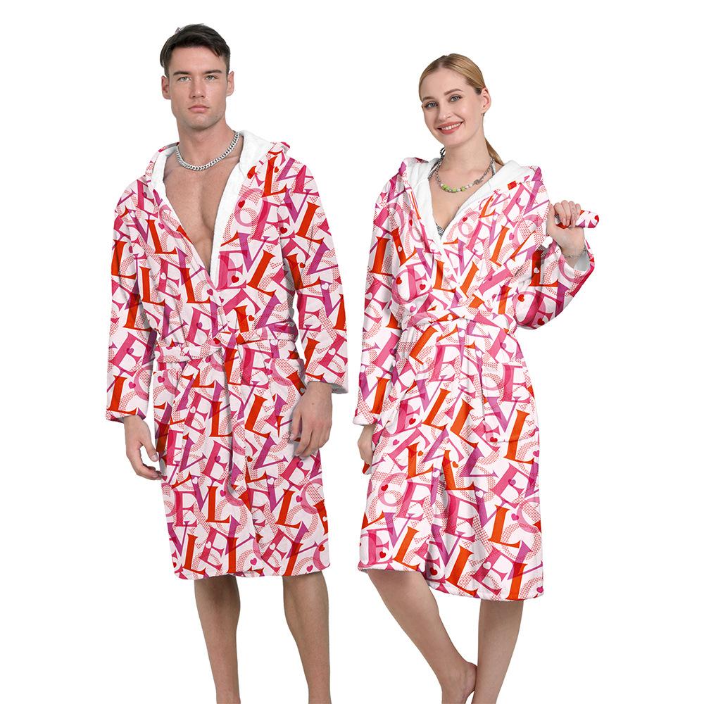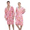 Bata de Baño Larga para Adulto de Otoño e Invierno para Casa Gruesa de Vellón Coral Estampada de Secado Rápido para Hombre y Mujer Cortavientos y Cálida Bata de Hotel