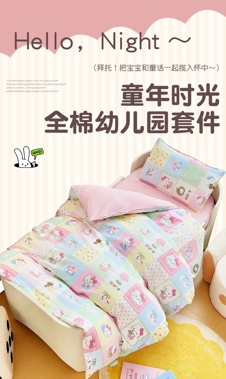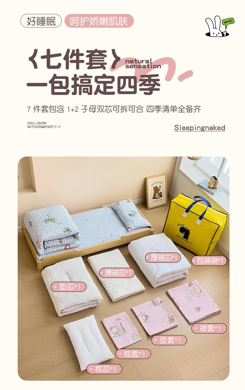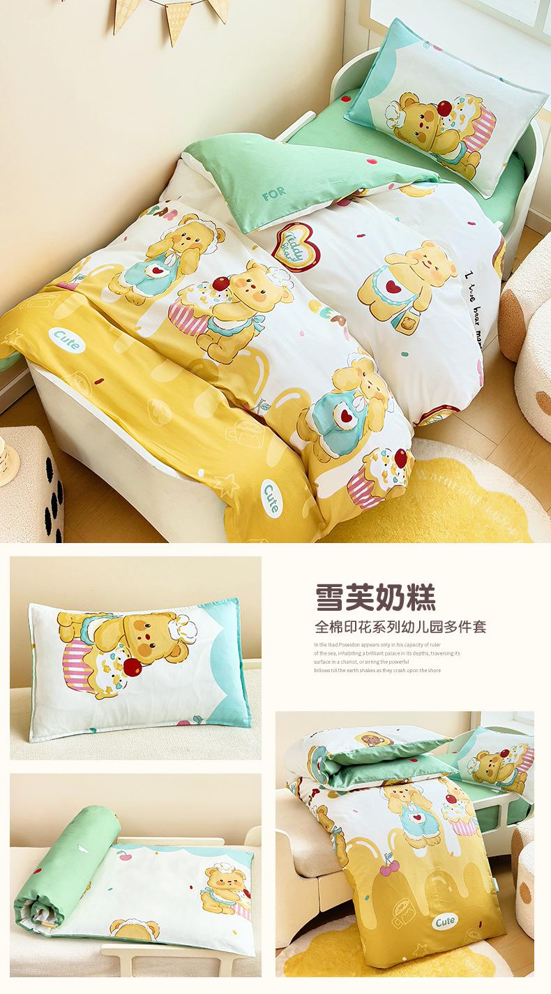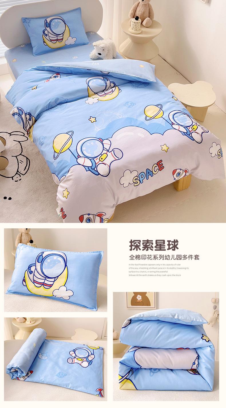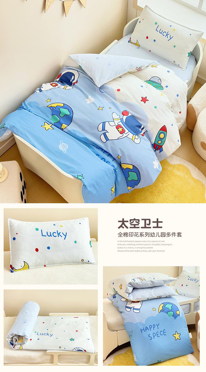 Set de tres piezas de algodón puro Clase A para jardín de infancia, caricatura, edredón de algodón, juego de seis piezas de algodón para madre e hijo, colcha para la siesta infantil
