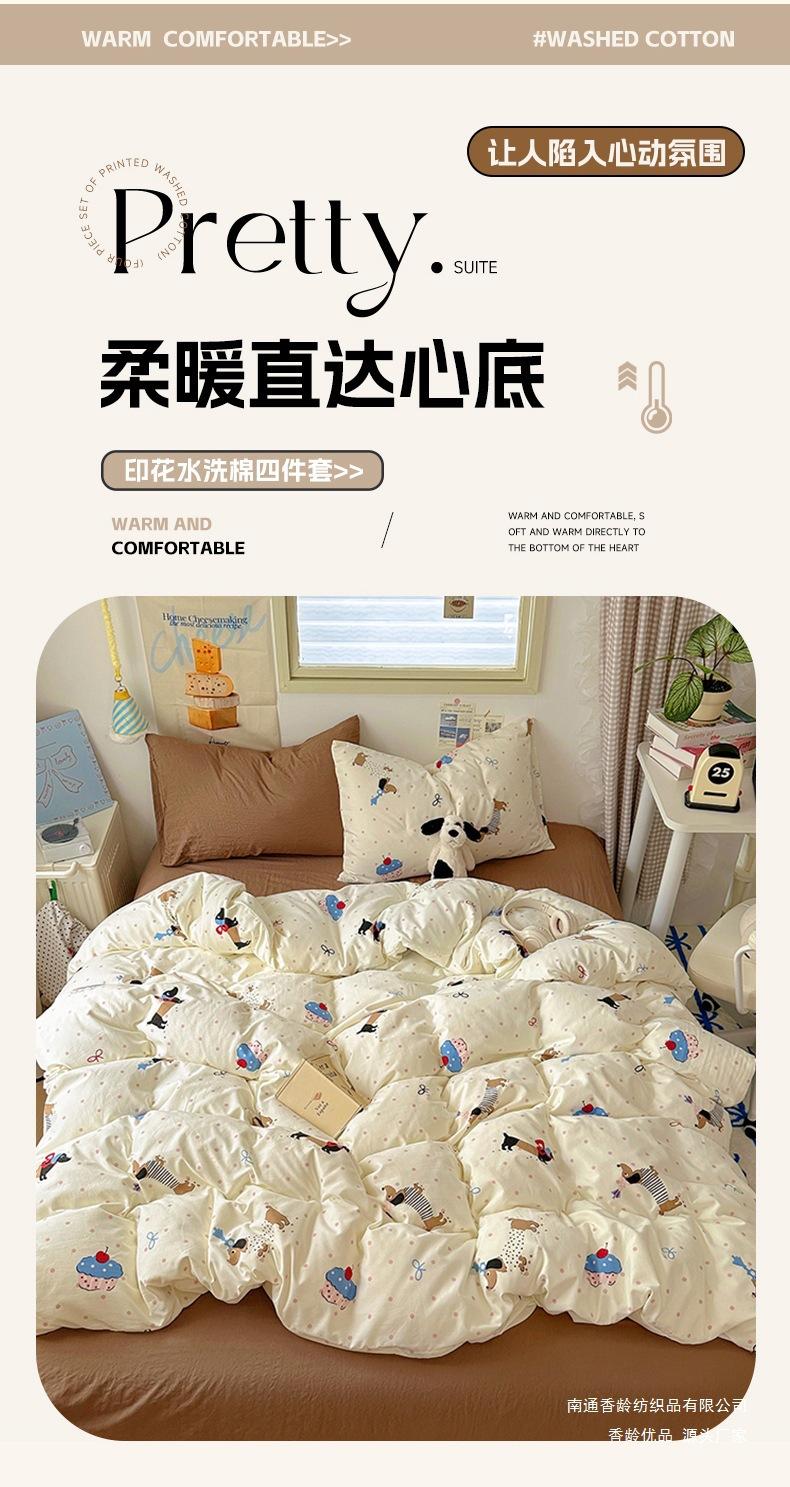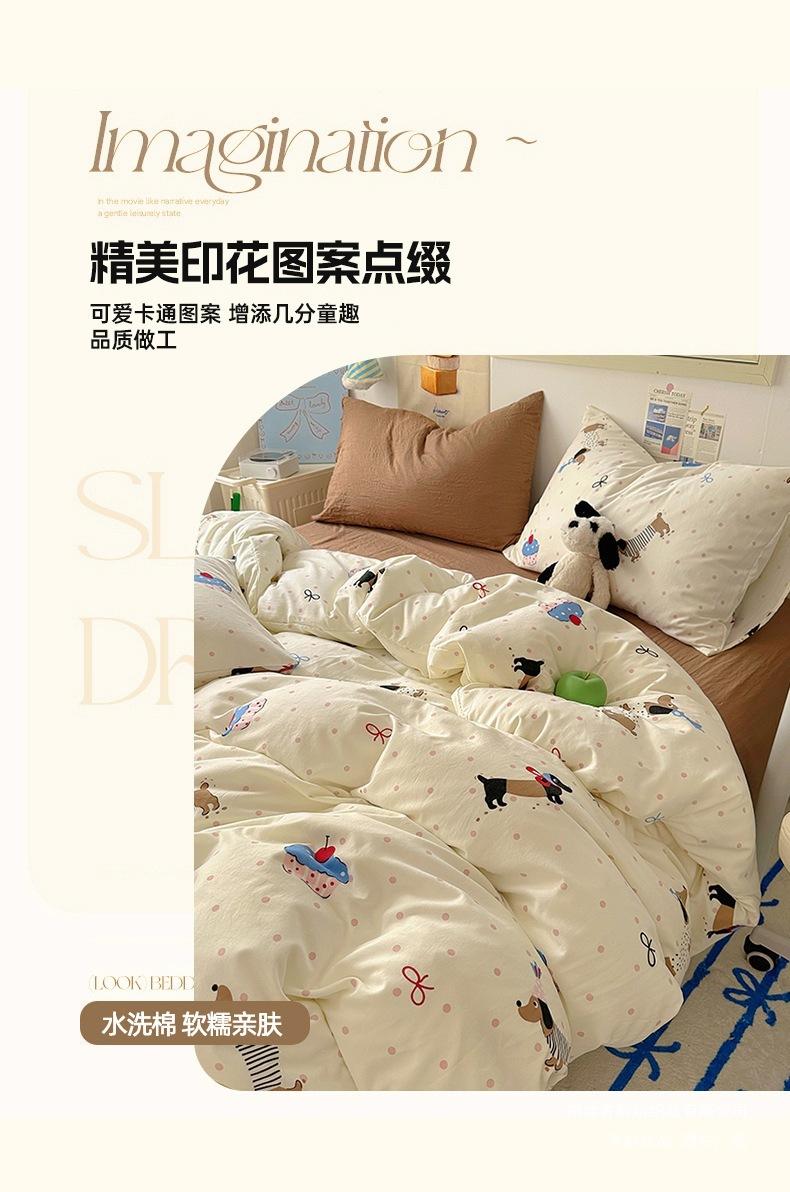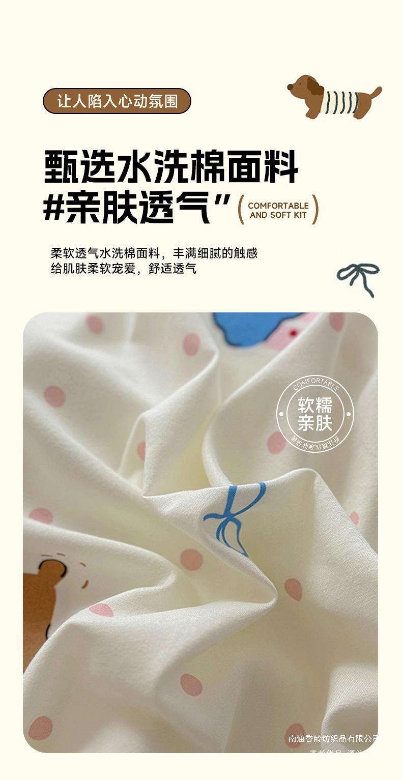 Conjunto de cuatro piezas de algodón lavado para madre e hijo de clase A, con funda de cama pequeña y fresca, sábana y funda de edredón, conjunto de tres piezas para dormitorio de estudiantes con dibujos animados
