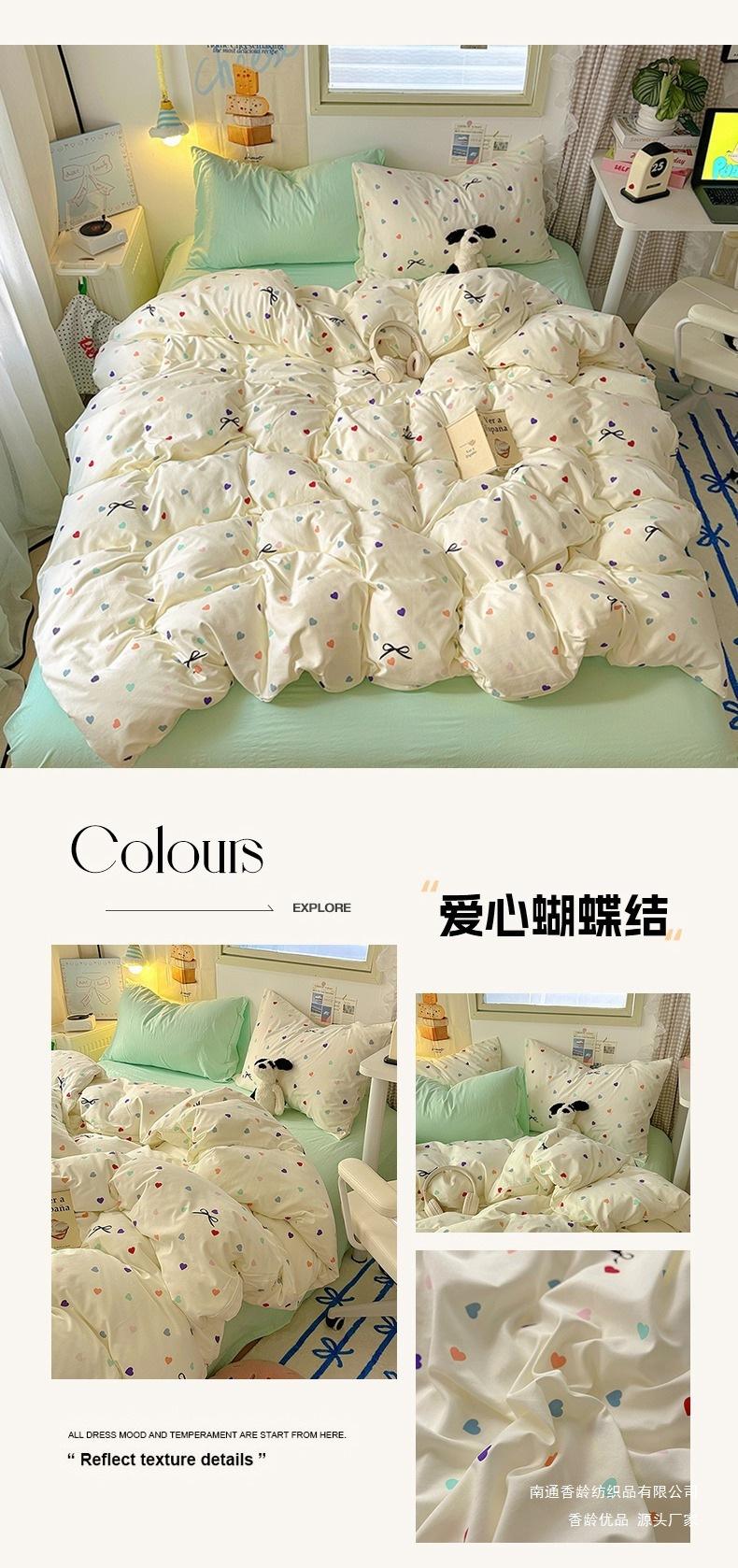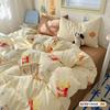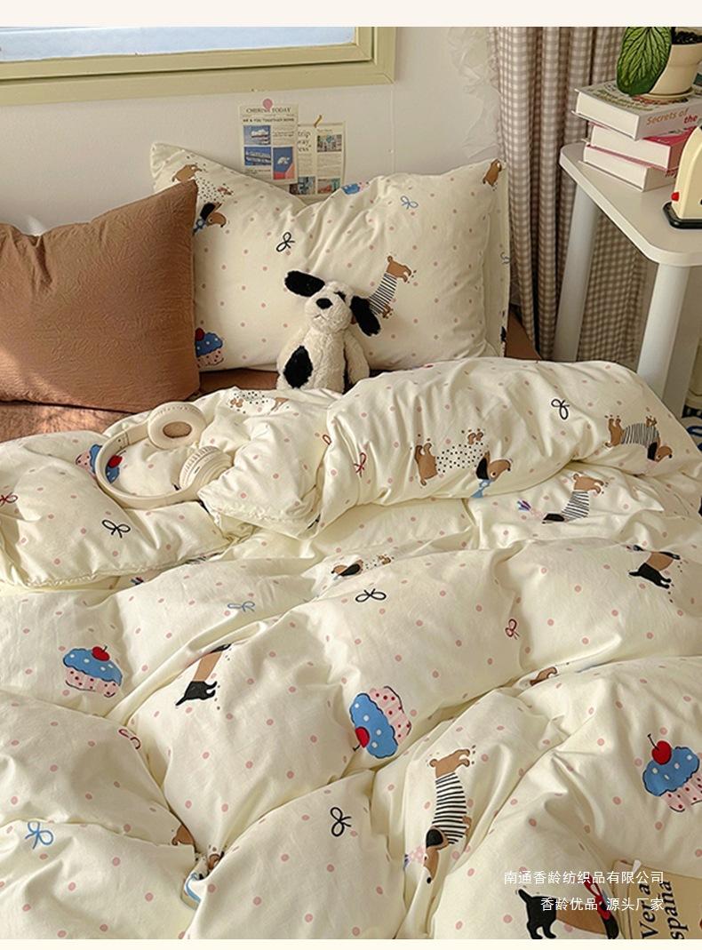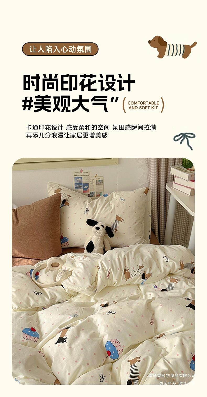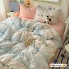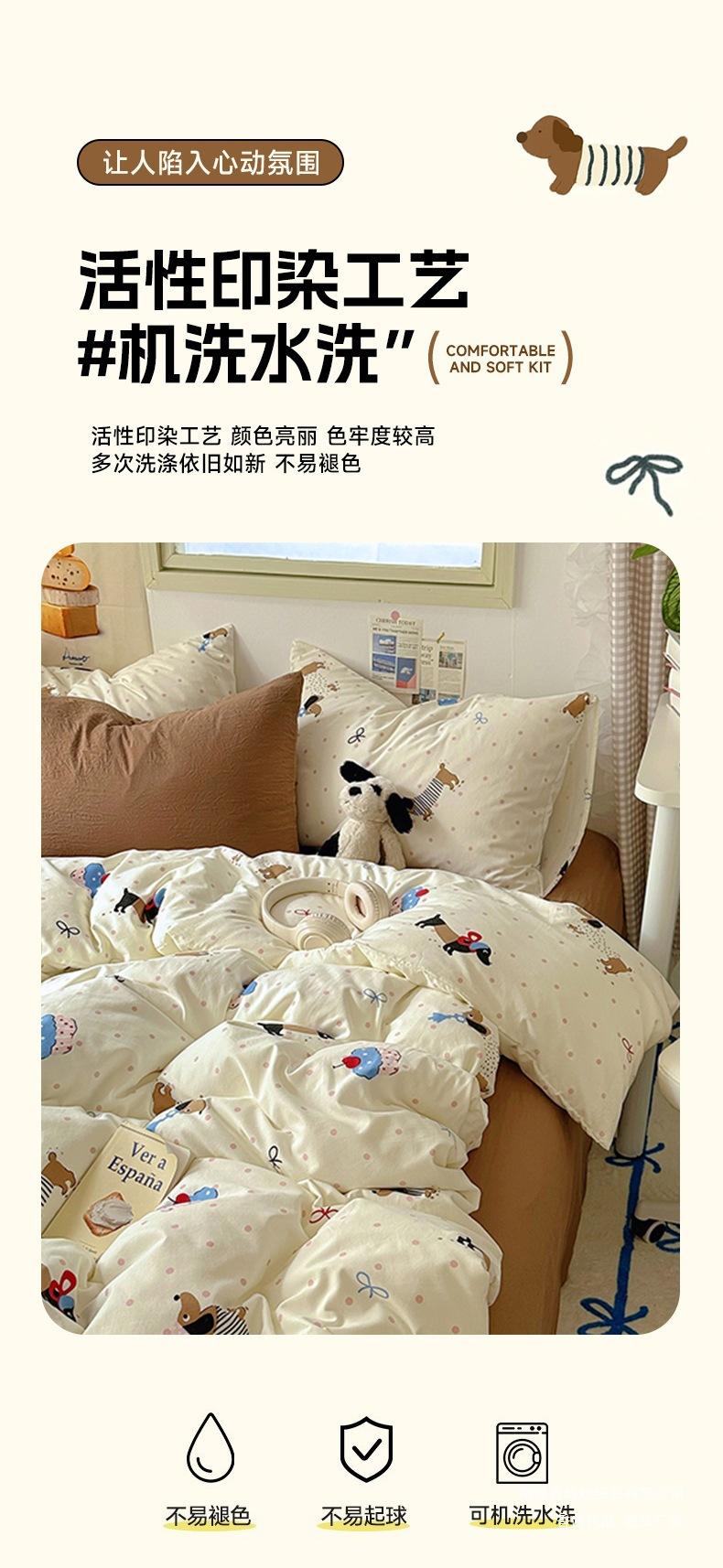 Conjunto de cuatro piezas de algodón lavado para madre e hijo de clase A, con funda de cama pequeña y fresca, sábana y funda de edredón, conjunto de tres piezas para dormitorio de estudiantes con dibujos animados