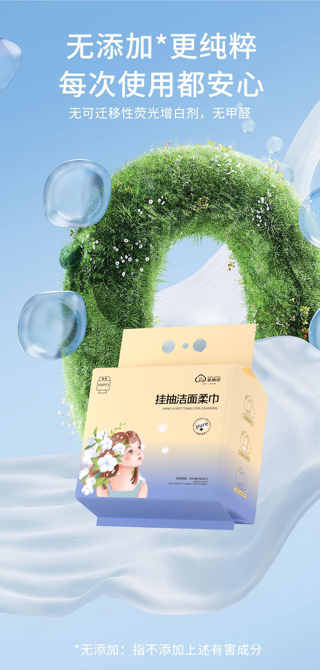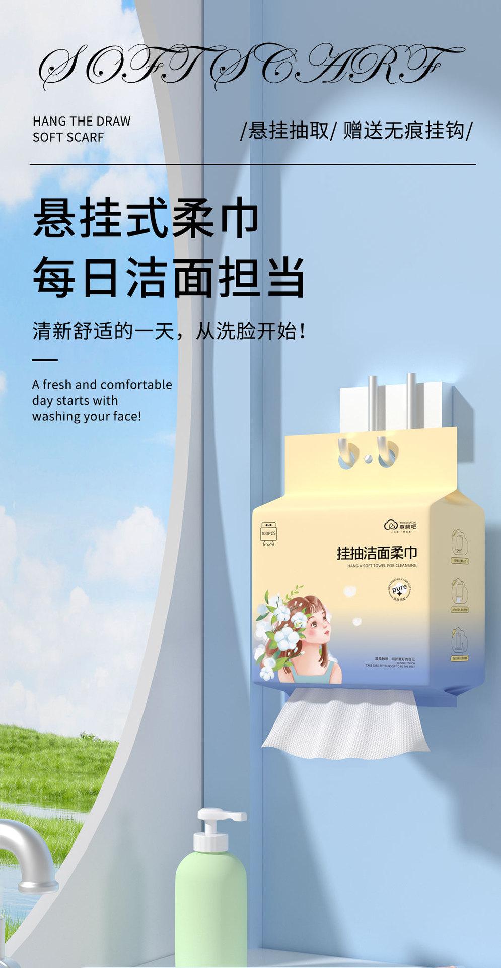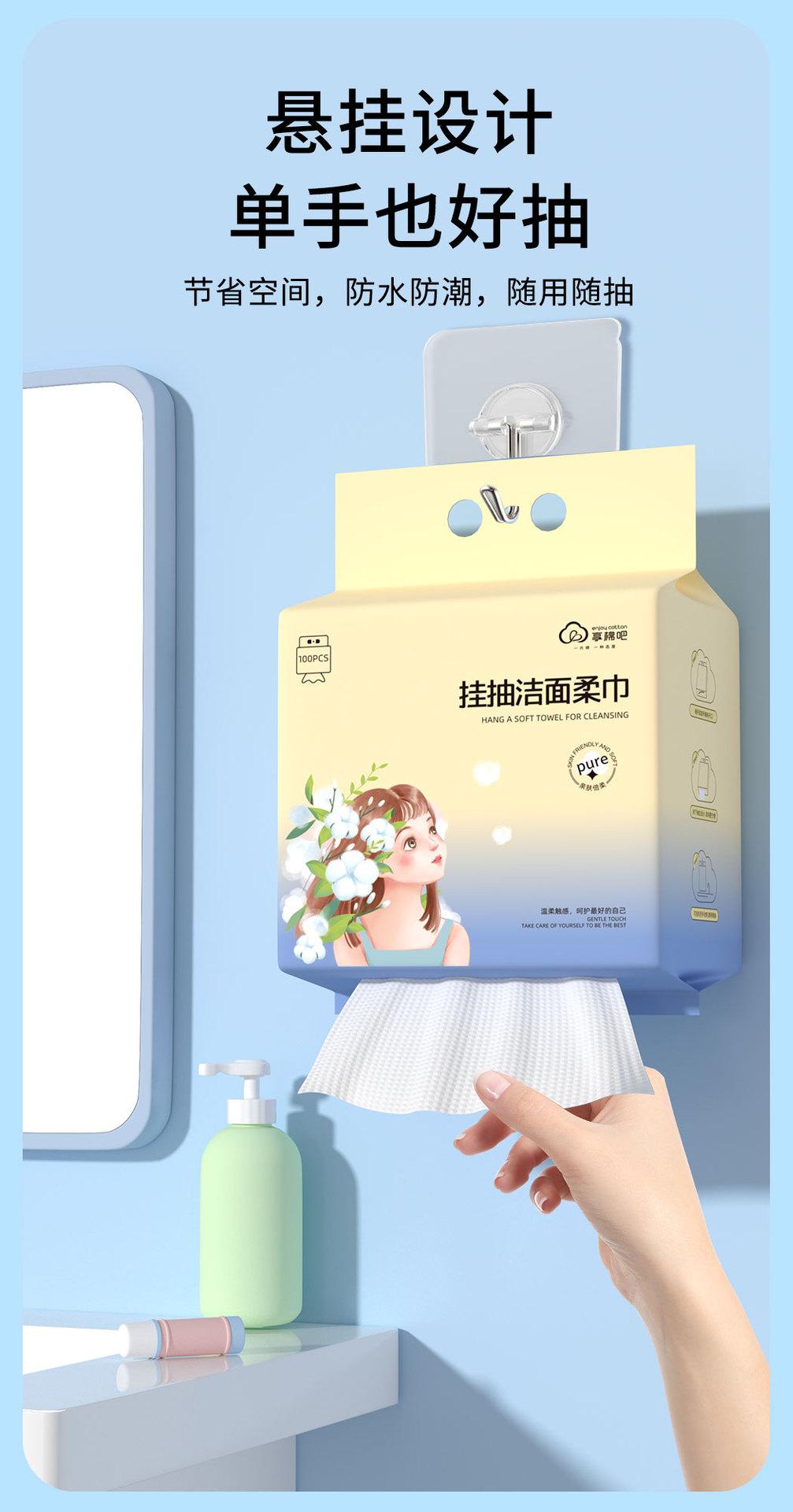 Hanging pumping facial cleansing wipes 100 wipes/pack (with hook), 60 count face wipes 20*20cm, Face Wash Towe...