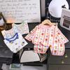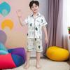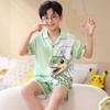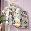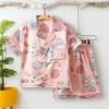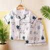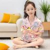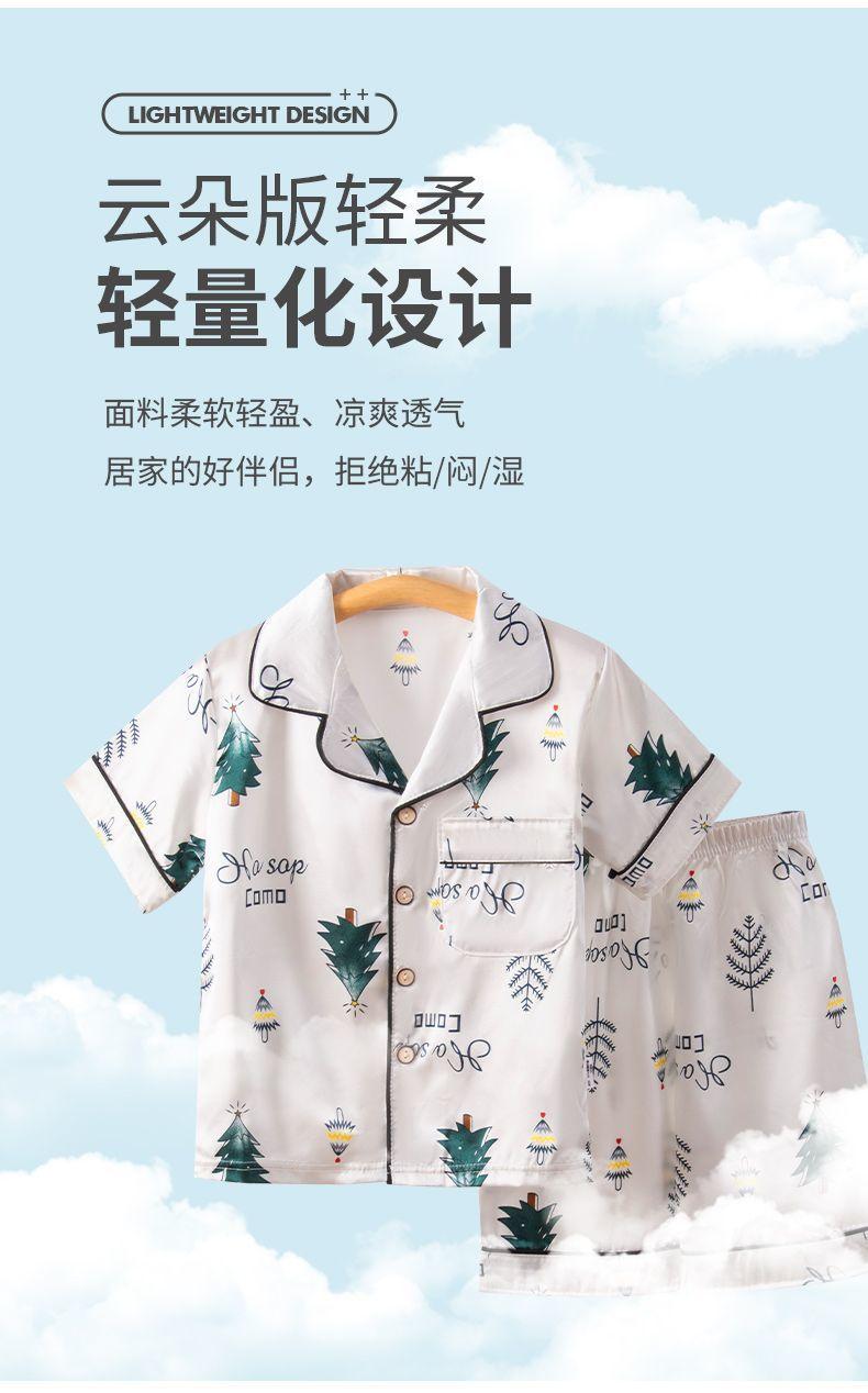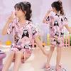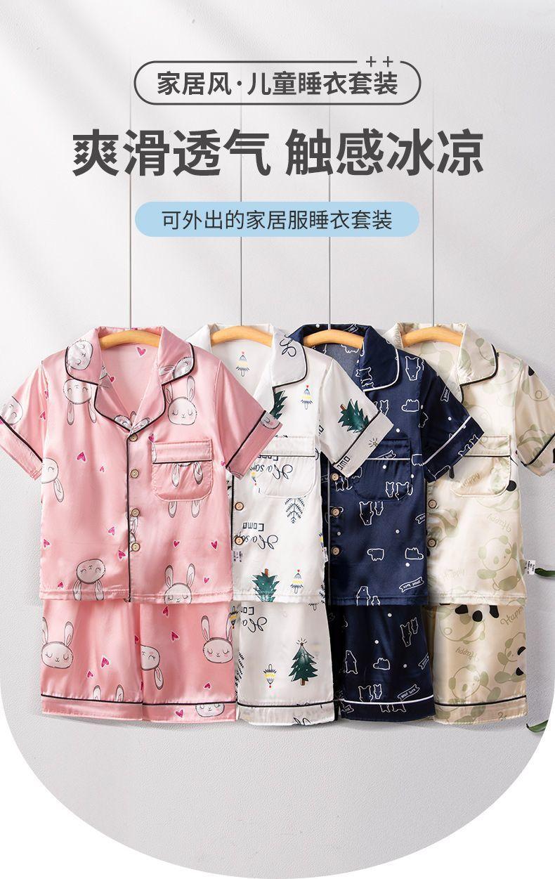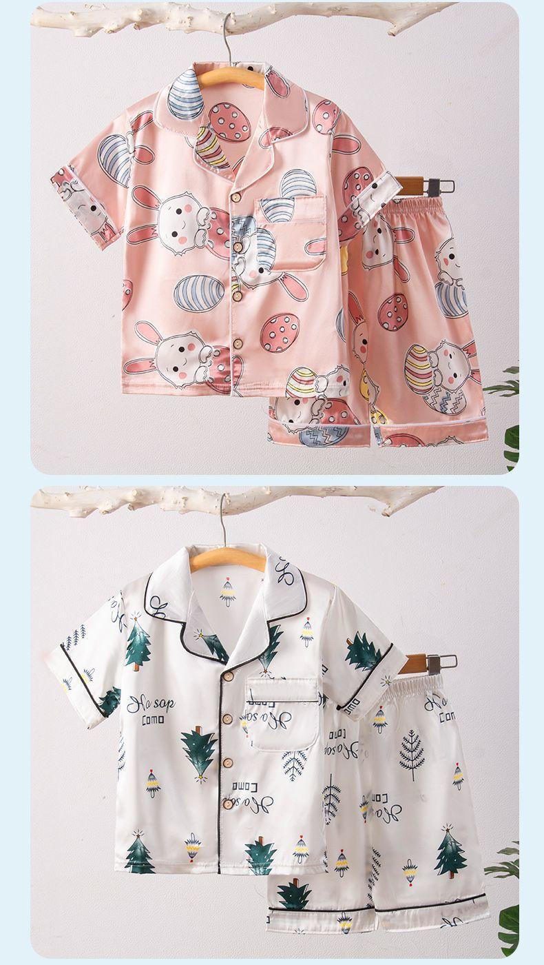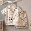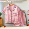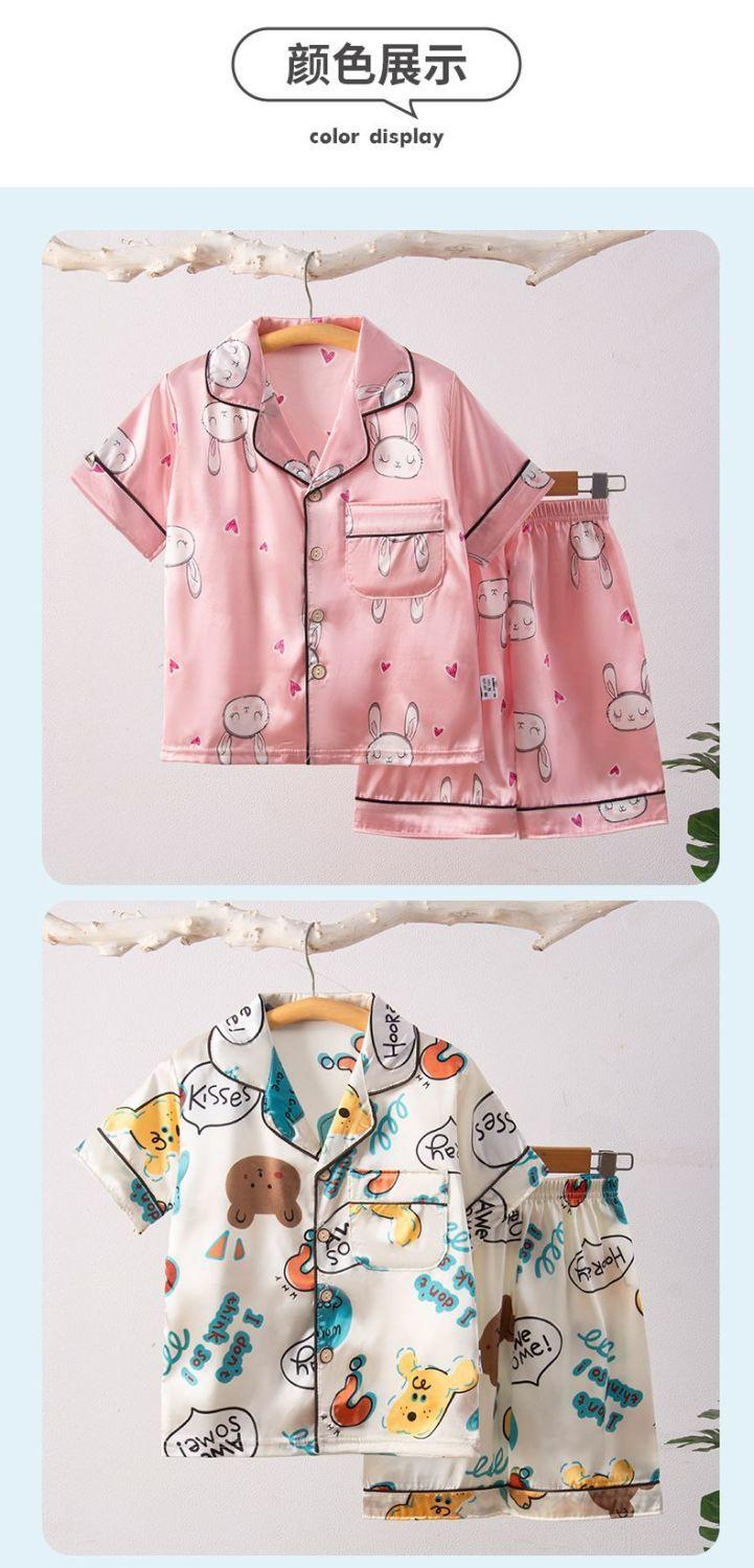 Conjunto Popular de Ropa de Casa de Verano para Niños Medianos y Grandes, Ropa de Manga Corta con Solapa de Seda de Hielo para Niños, Pijamas Super Lindos para Niñas