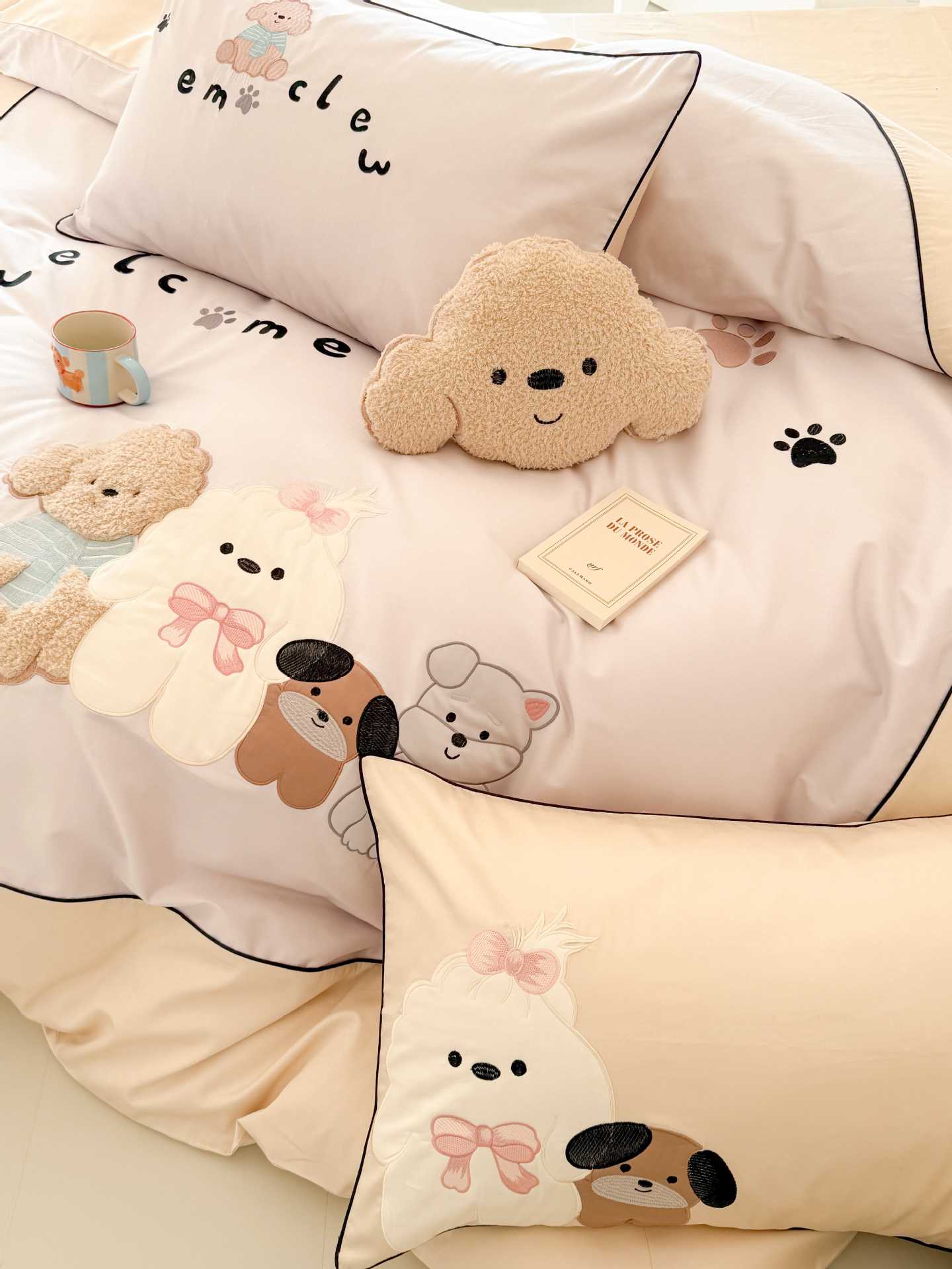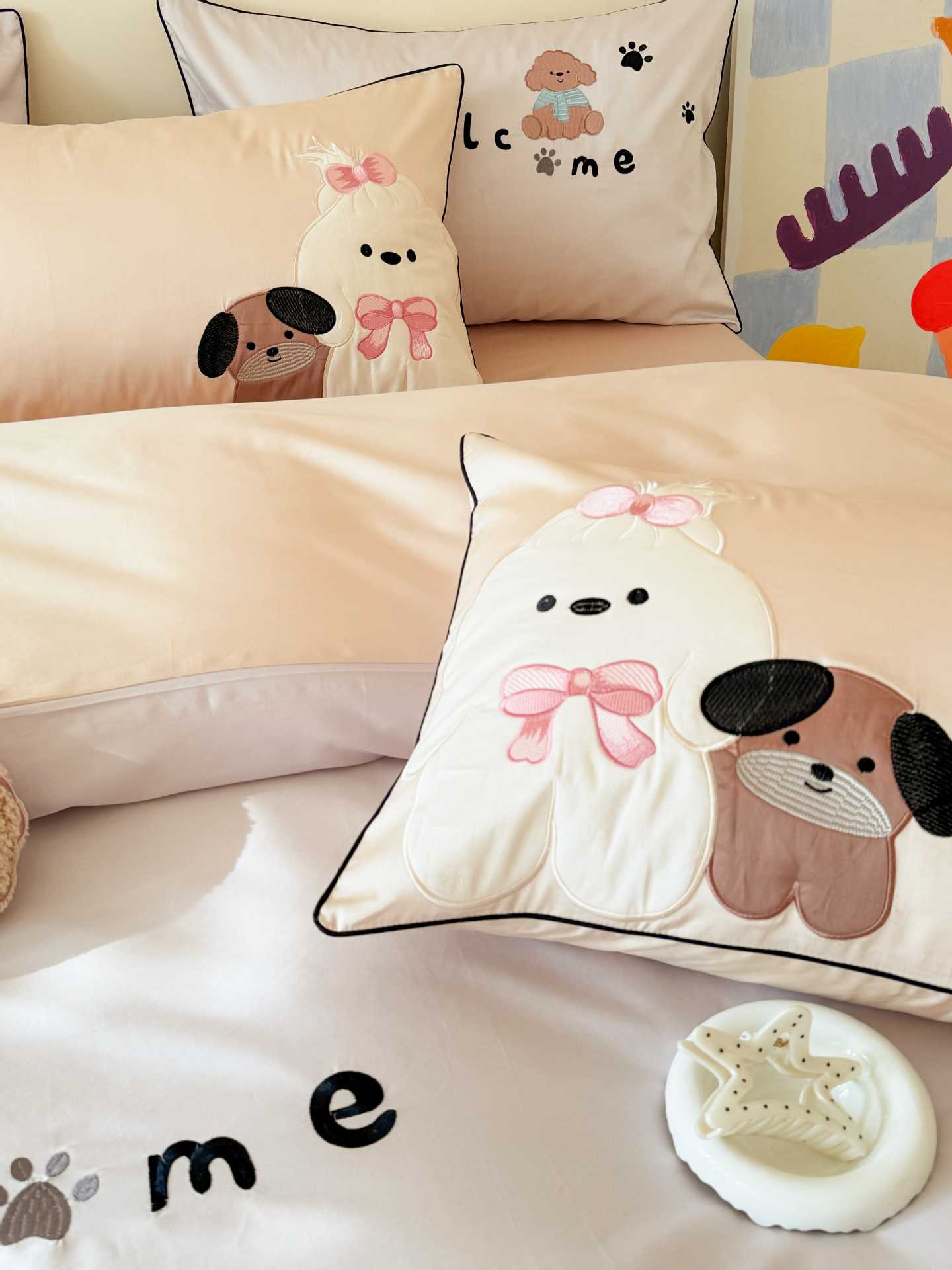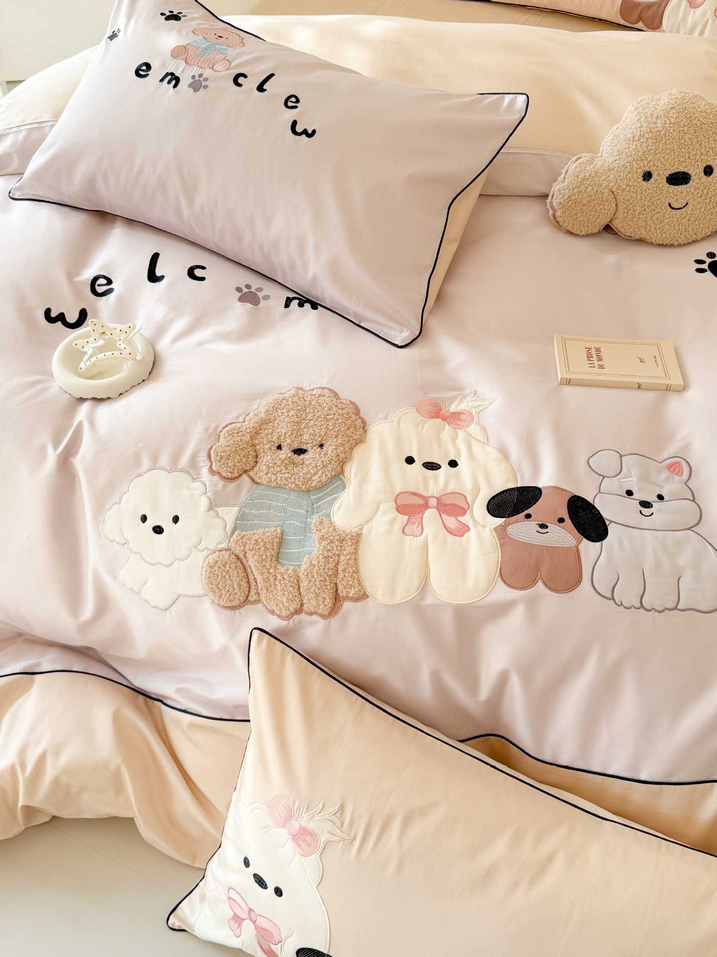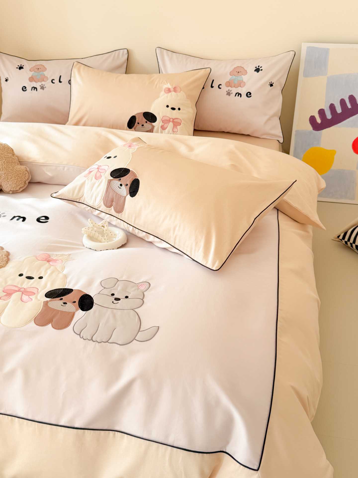 PD: Las fundas de almohada estándar tienen dos perros de aplique 🐶