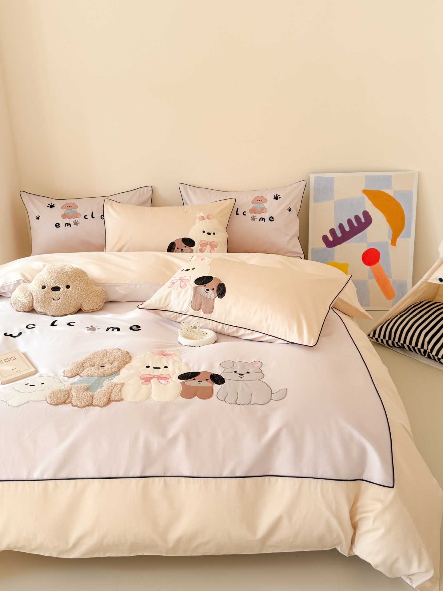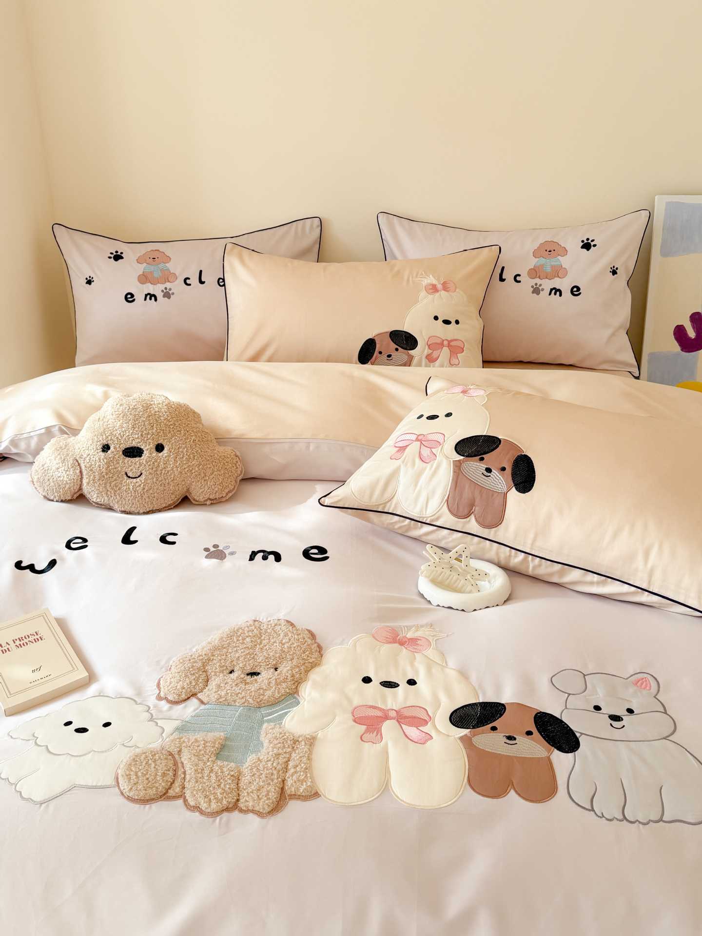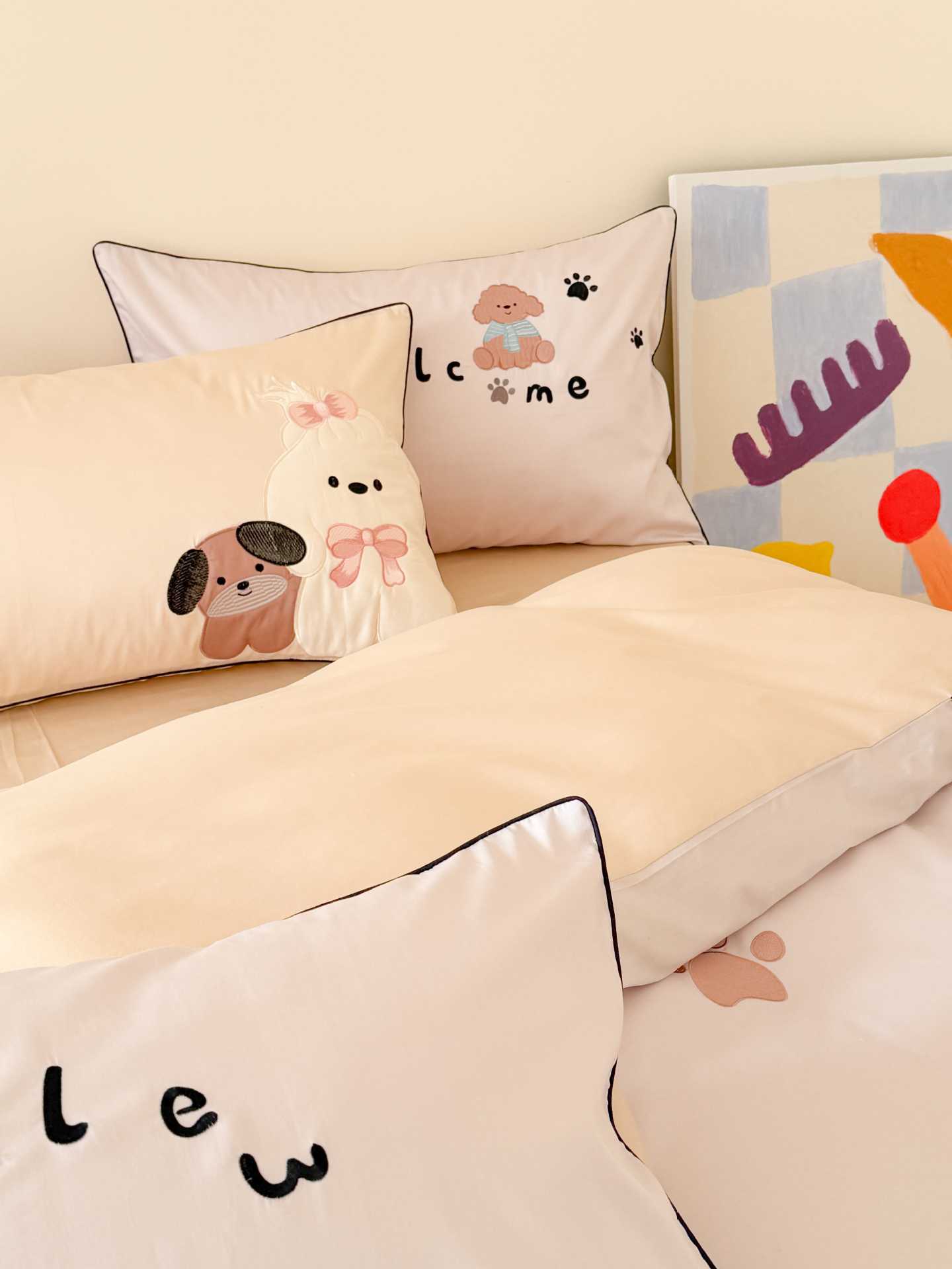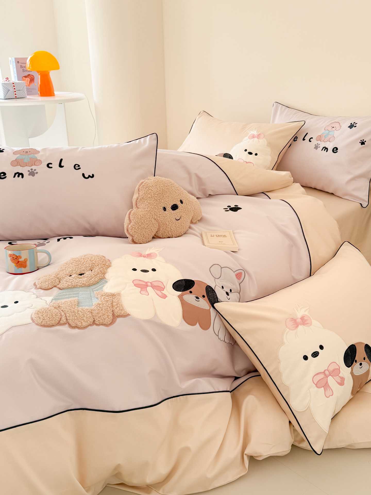 PD: Las fundas de almohada estándar tienen dos perros de aplique 🐶