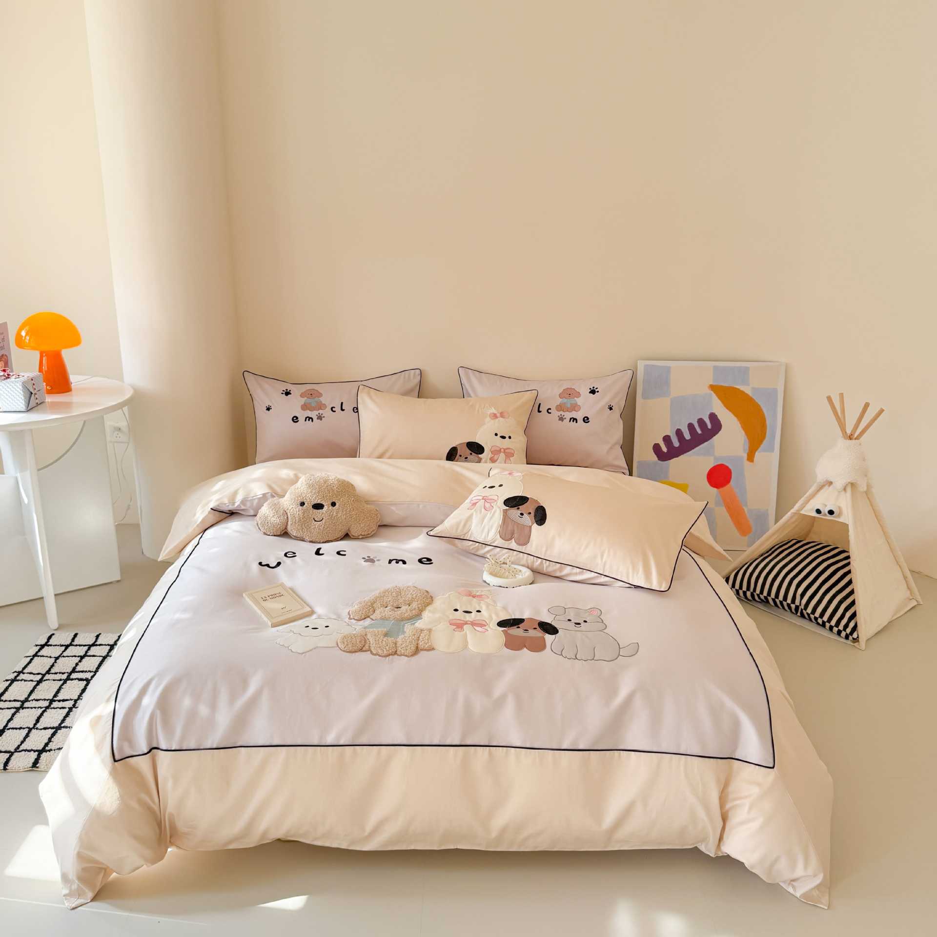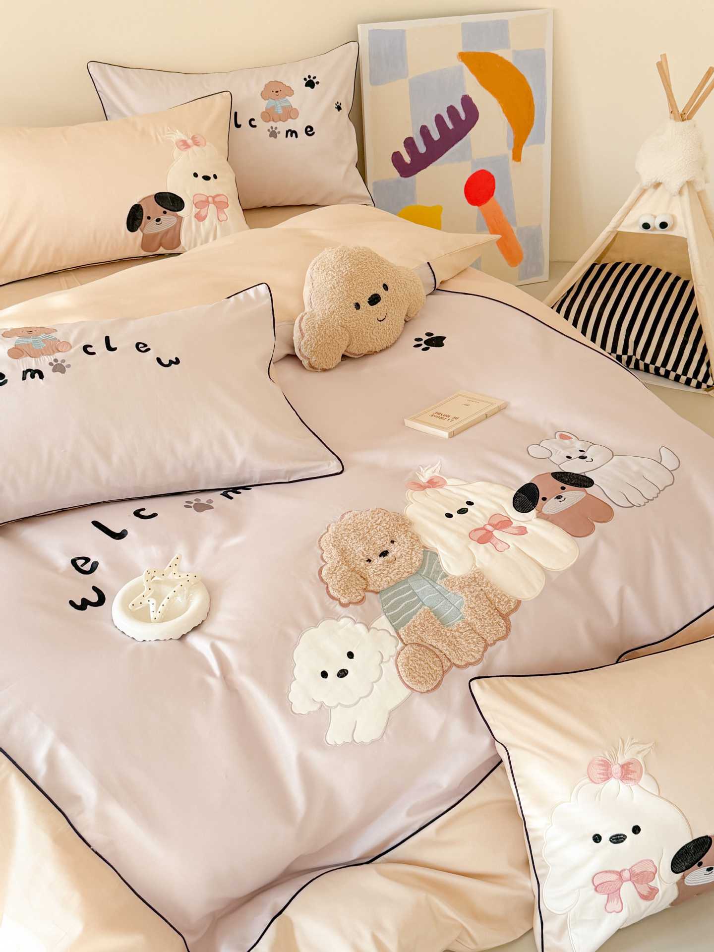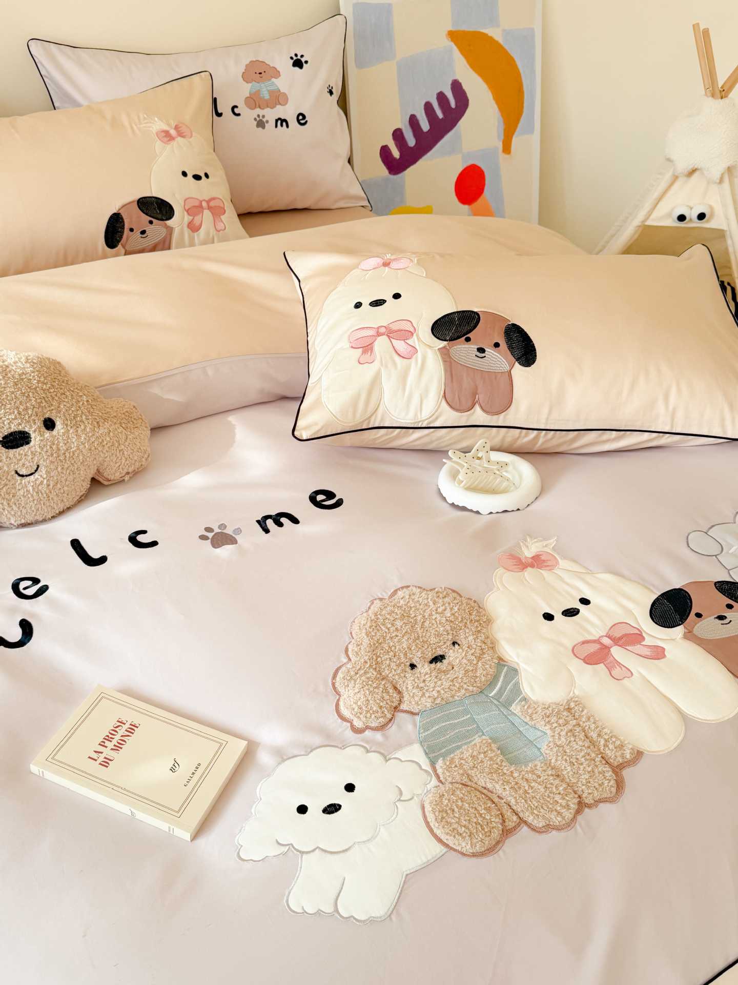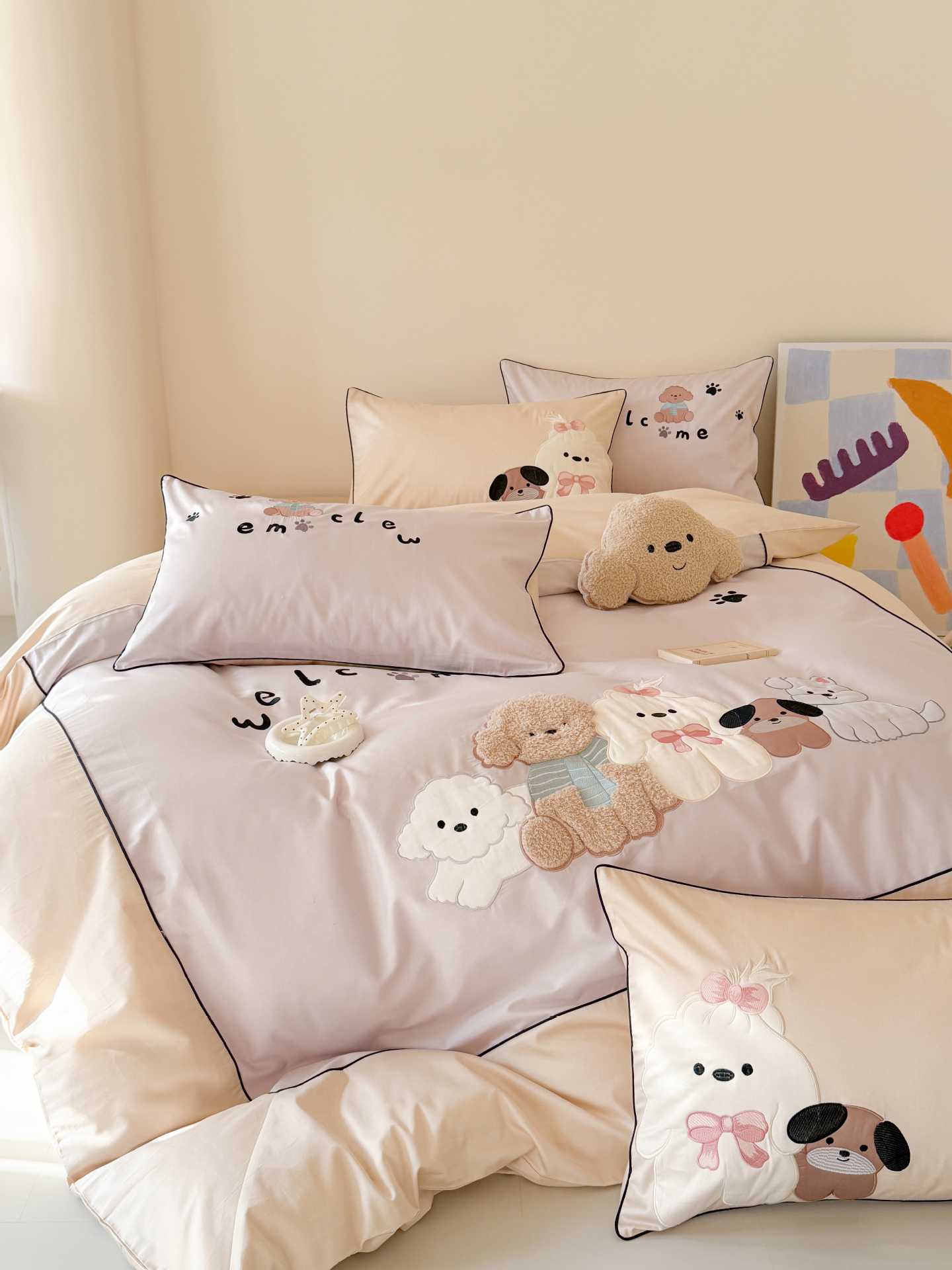 PD: Las fundas de almohada estándar tienen dos perros de aplique 🐶