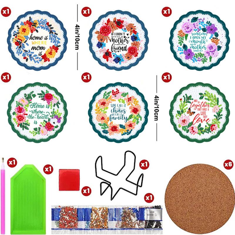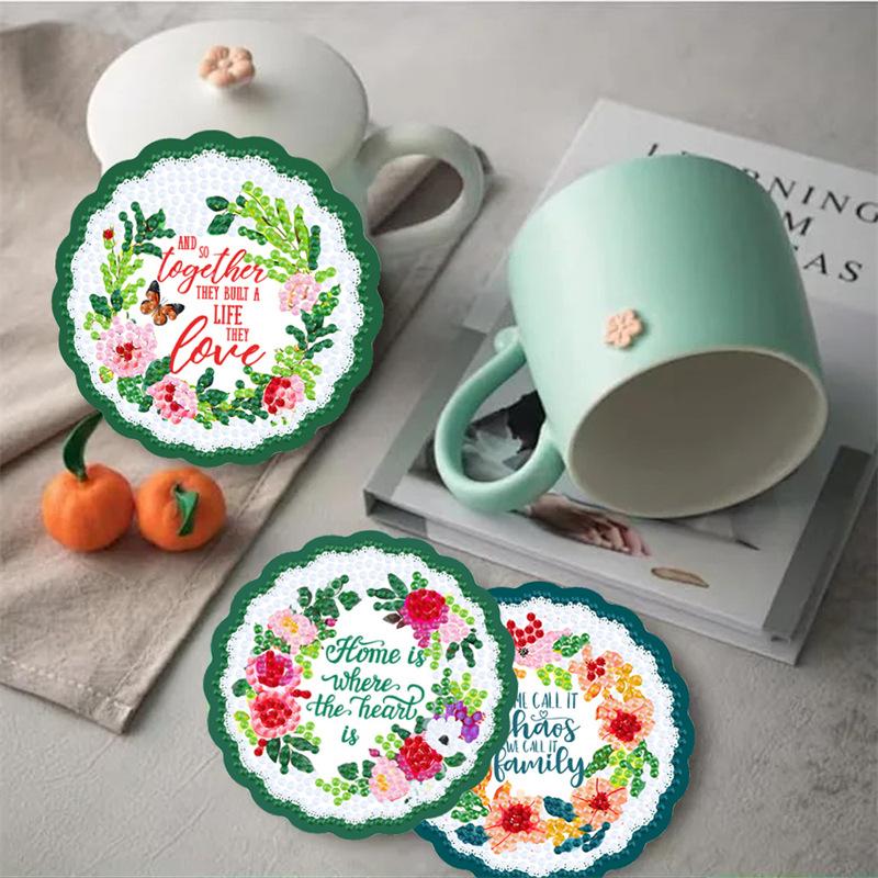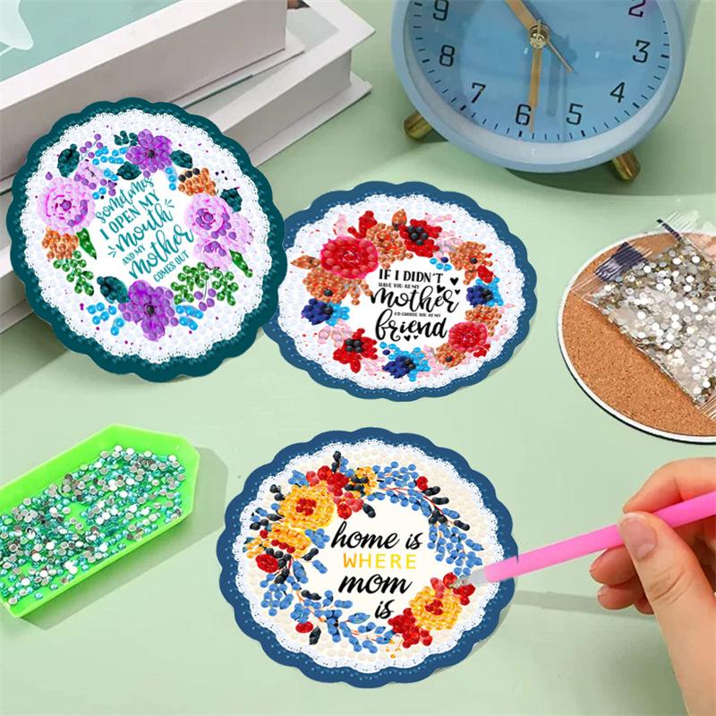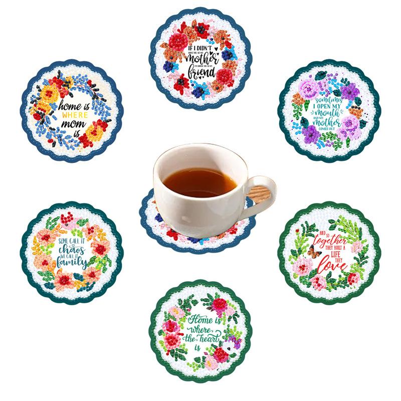 Posavasos de Pintura de Diamantes Transfronterizo Diamante Completo Letra de Amazon Tapete Aislante de Calor Mantel de Mesa de Comedor DIY Niños Redondo Auto-Estante