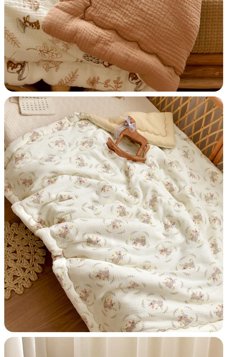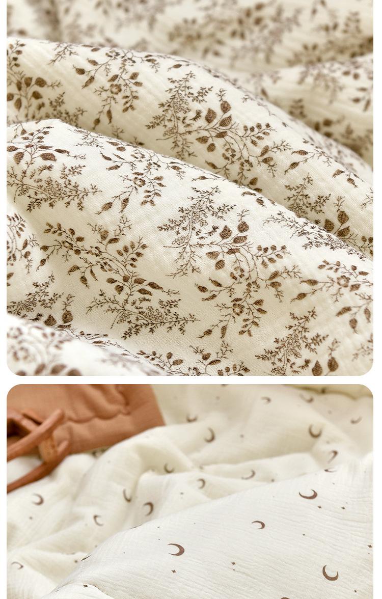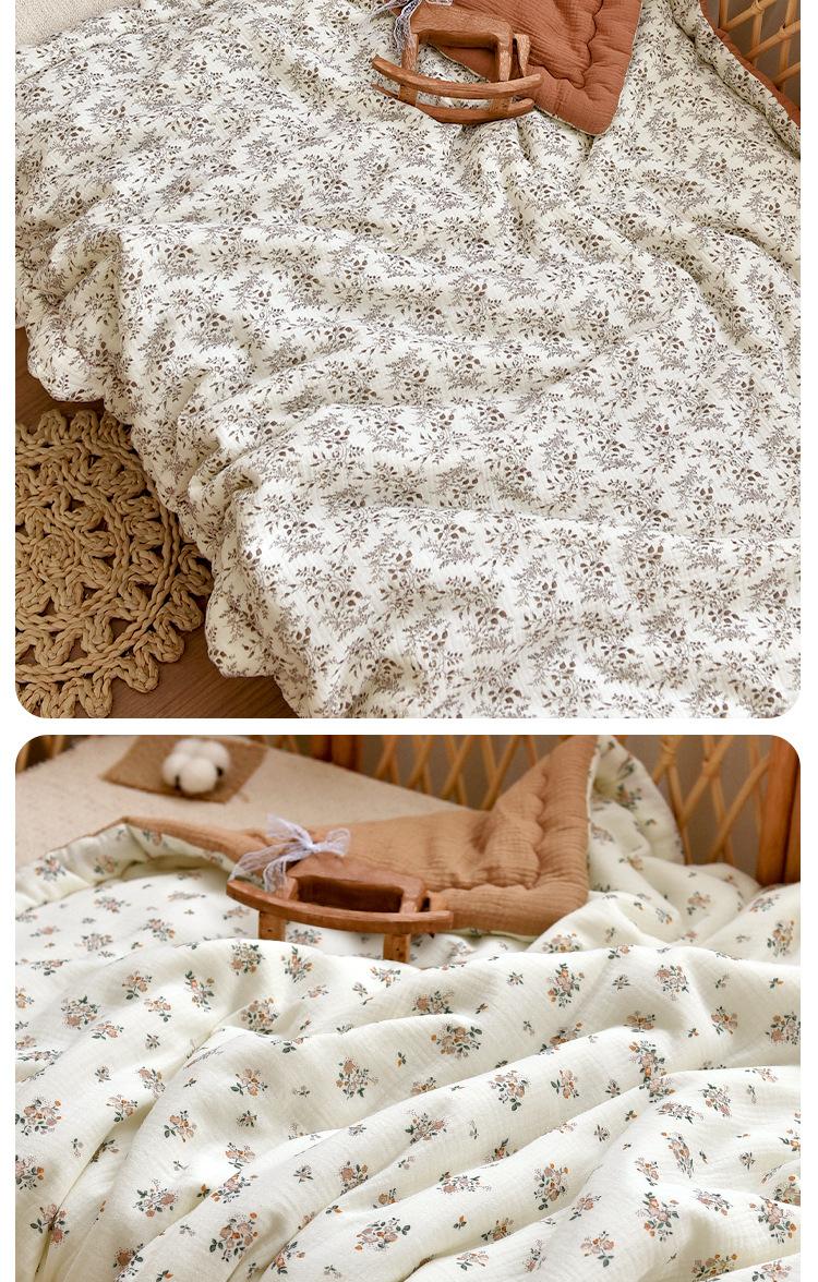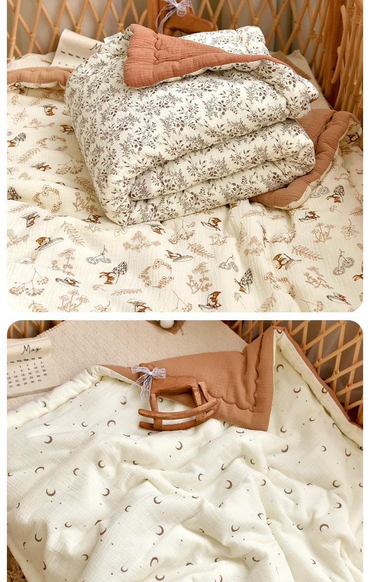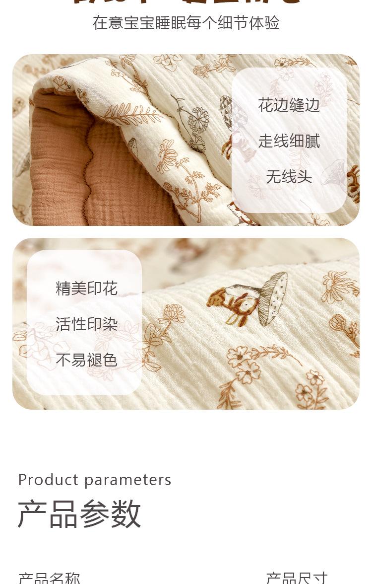 Colcha de gasa crepé de algodón puro para bebés y niños pequeños El tejido seersucker de algodón 100% seleccionado es suave y respetuoso con la piel, absorbe el sudor y es transpirable. Toda la pieza está rellena de algodón ultrafino, y la confección es meticulosa. El núcleo interior está diseñado para fijarse y evitar que el algodón se desplace. El relleno esponjoso de algodón de seda es ligero y abundante, rebota cómodamente y es tan suave como una nube. Ribete elegante, costuras delicadas sin hilos sueltos, hermoso y generoso Patrón de impresión reactiva, los colores son frescos y no se desvanecen, seguro y no irritante Diseño de doble cara, un lado estampado, un lado liso, adecuado para todas las estaciones Calidad clase A, sin fluorescencia.