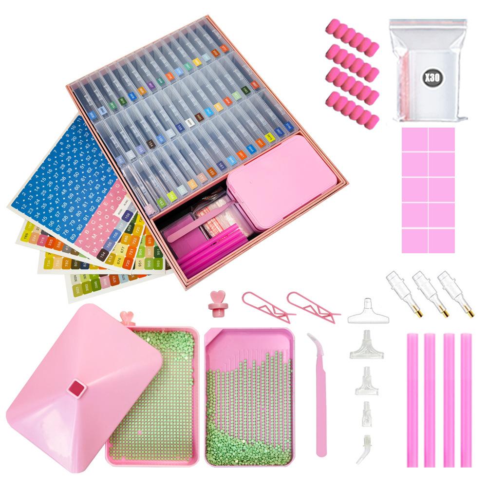 Herramientas de Pintura de Diamantes DIY Nuevas Taladro Redondo Taladro de Punto Bandeja Caja de Almacenamiento Clasificación de Diamantes Almacenamiento Bandeja Taladro de Punto Caja de Regalo Rosa Set