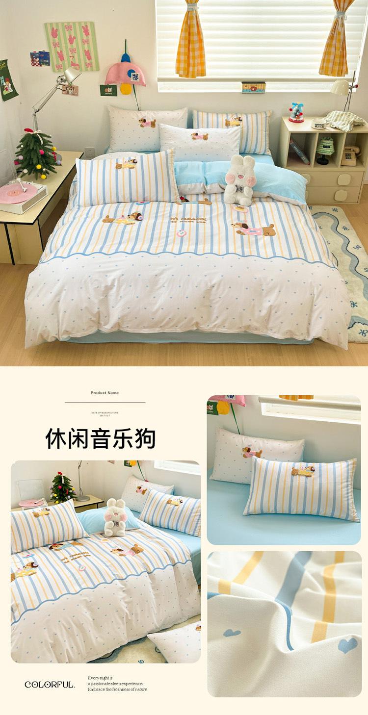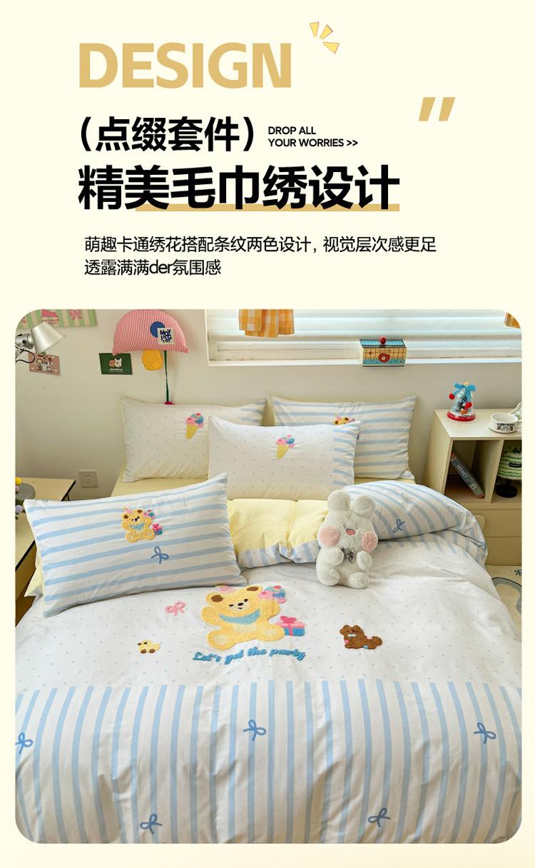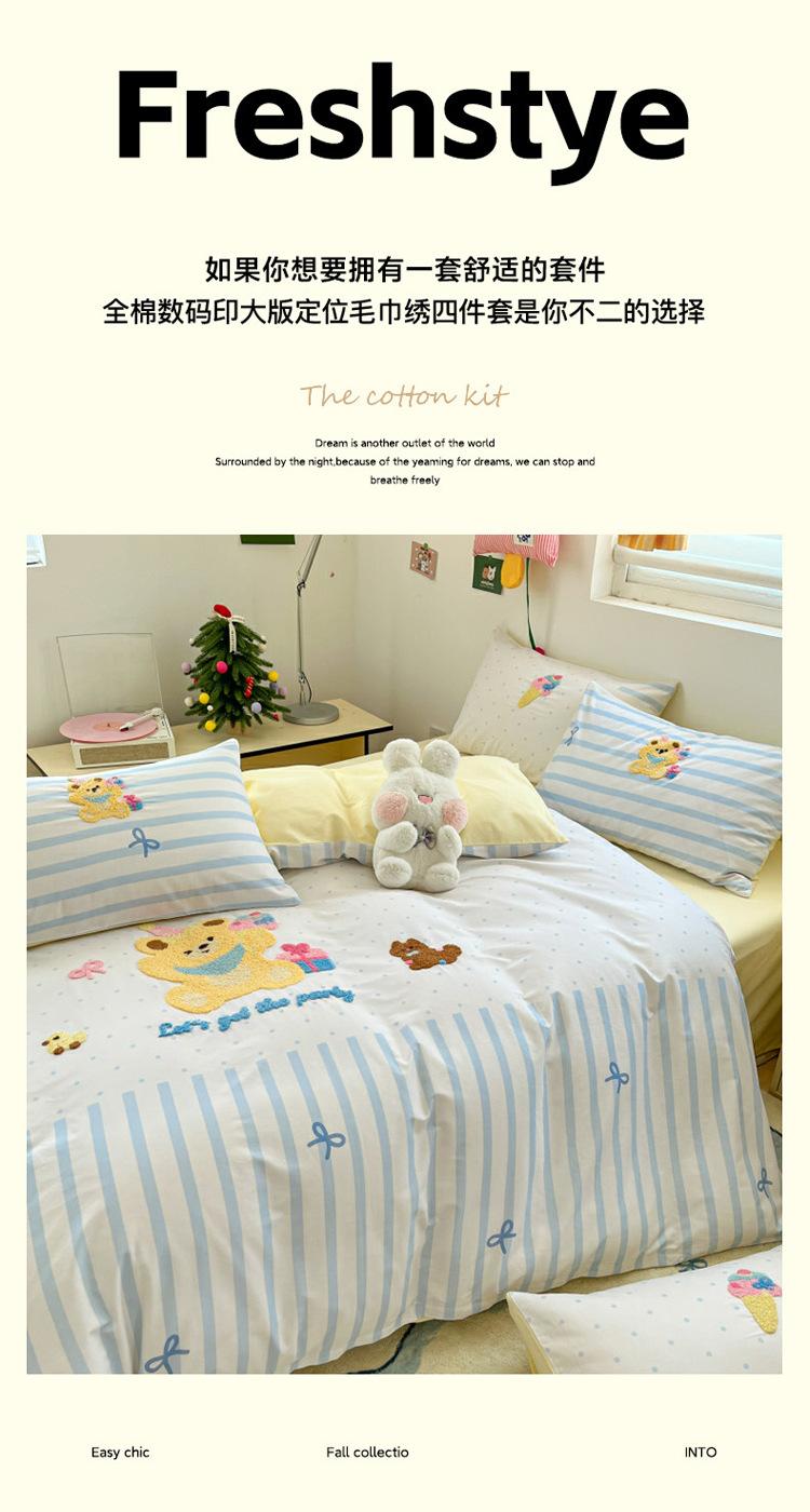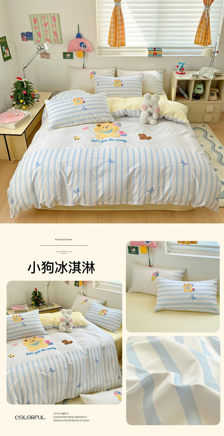 Juego de cuatro piezas de algodón puro con bordado de chenilla de cachorro estilo caricatura para estudiante, sábana, funda nórdica, juego de tres piezas para niños, ropa de cama
