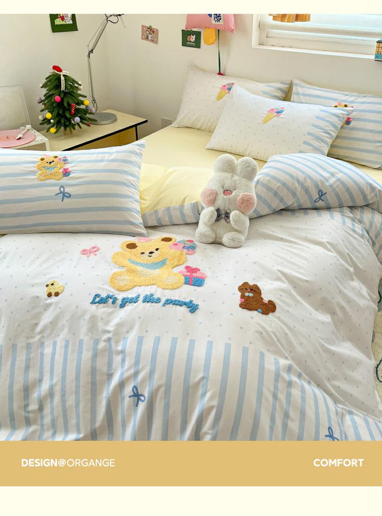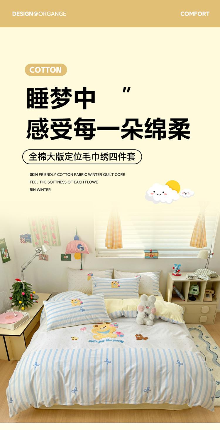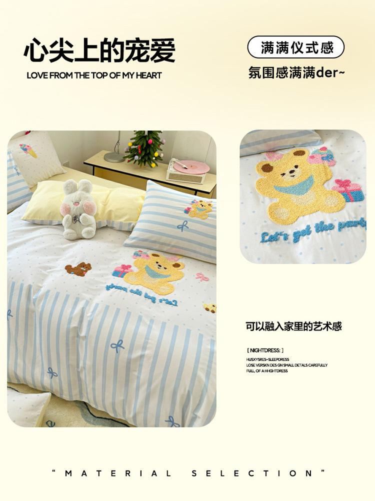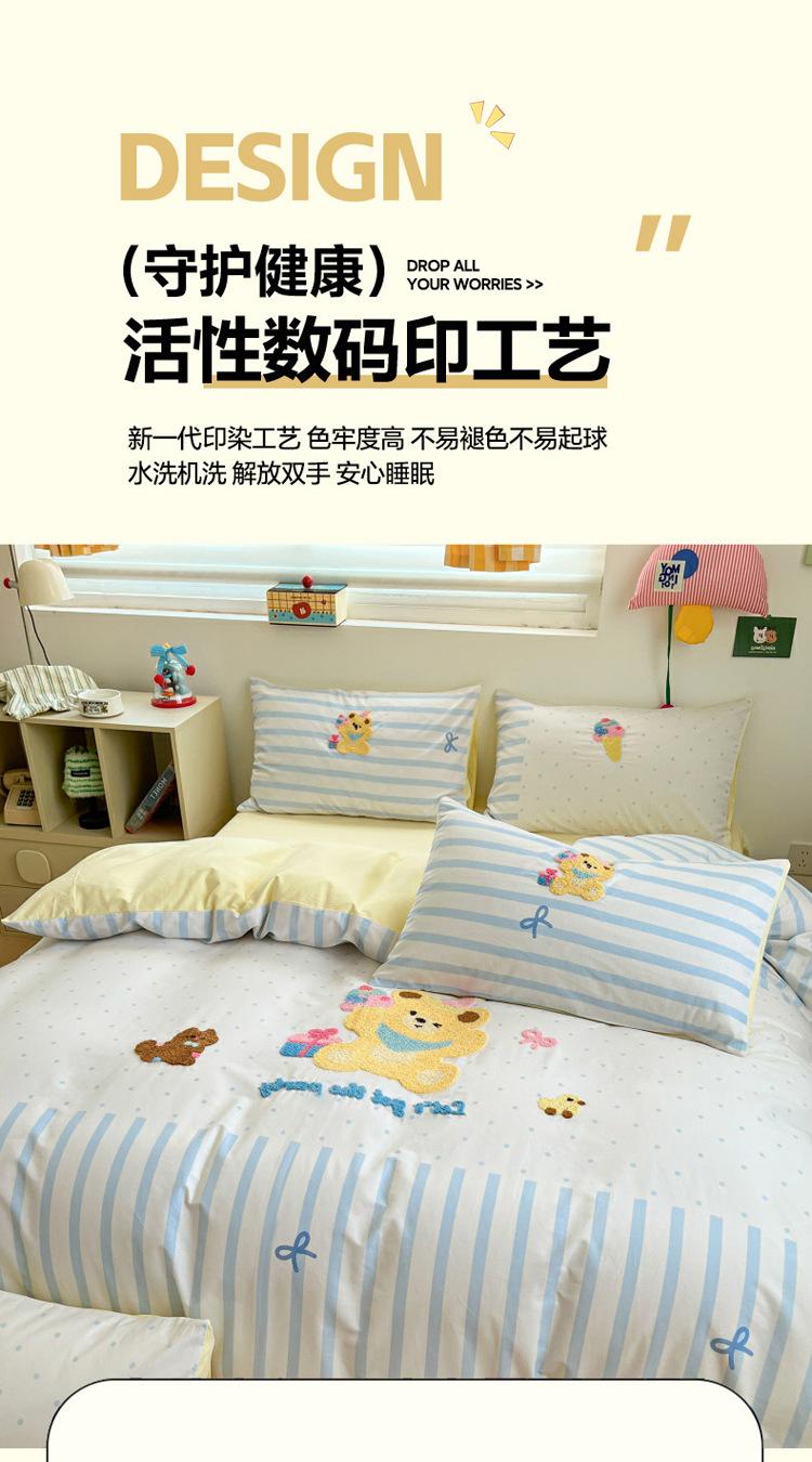 Juego de cuatro piezas de algodón puro con bordado de chenilla de cachorro estilo caricatura para estudiante, sábana, funda nórdica, juego de tres piezas para niños, ropa de cama