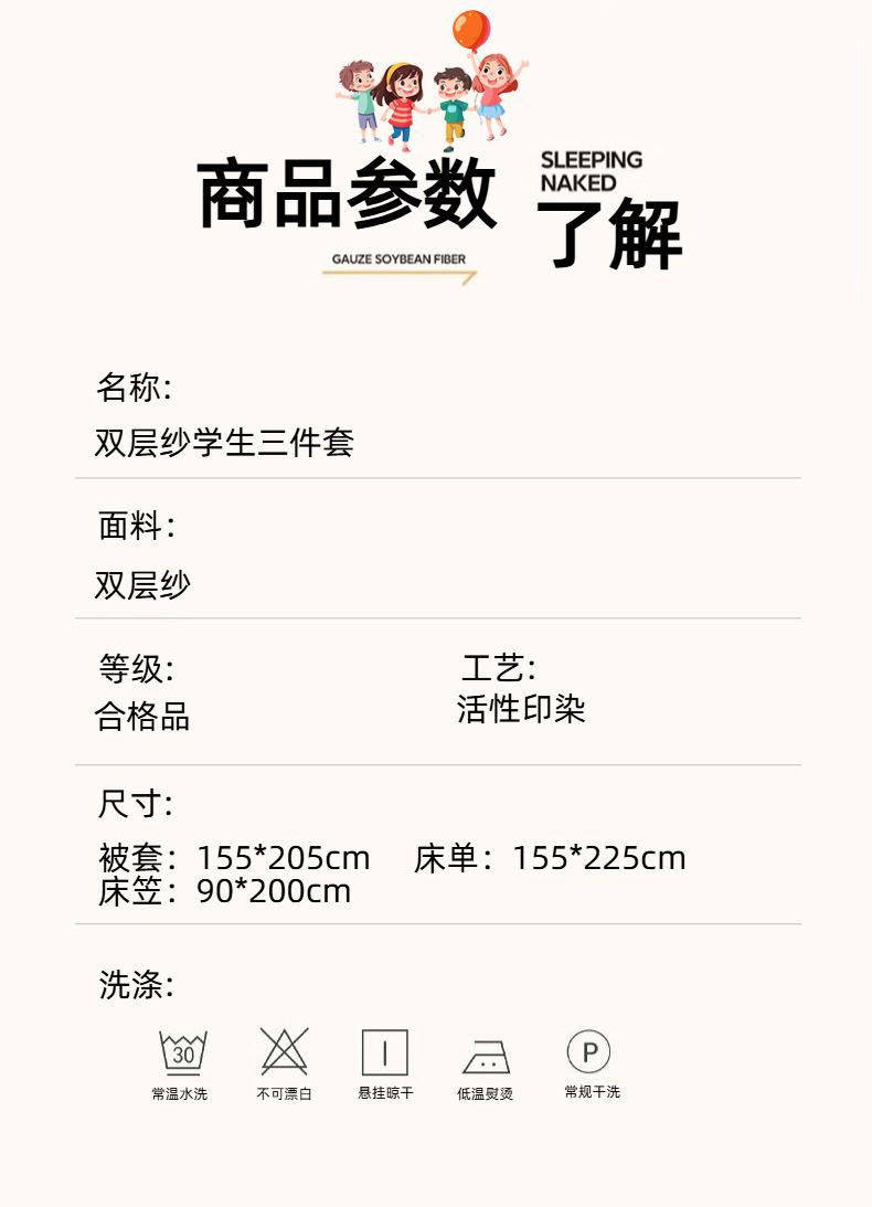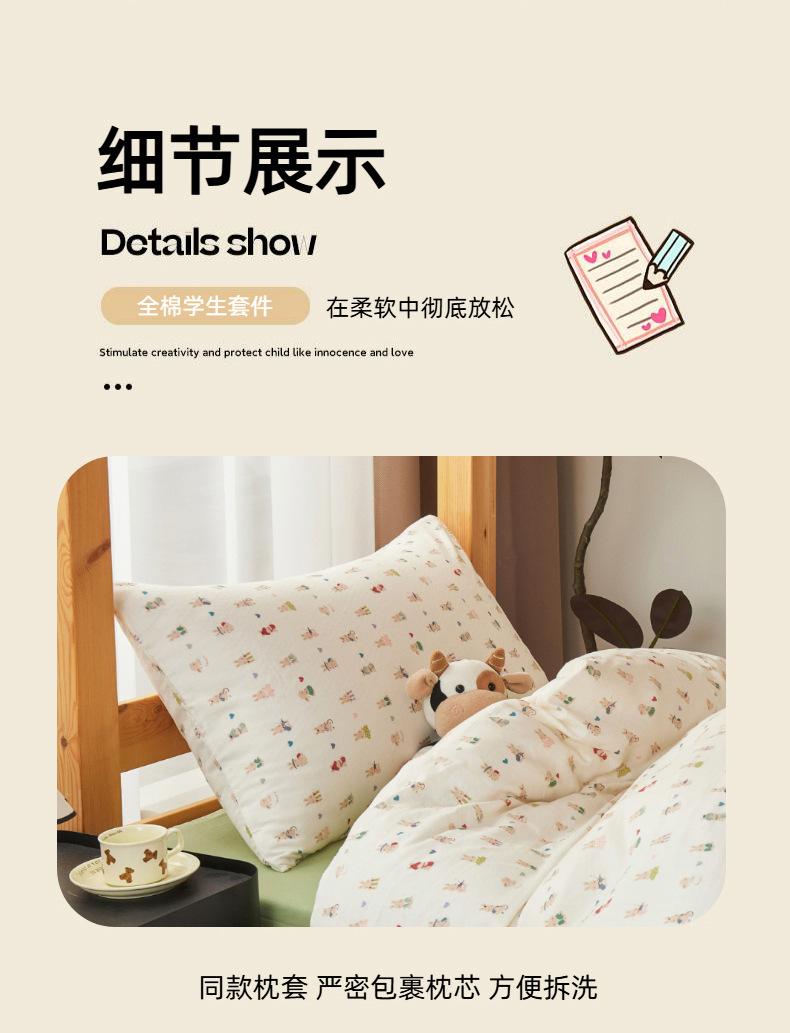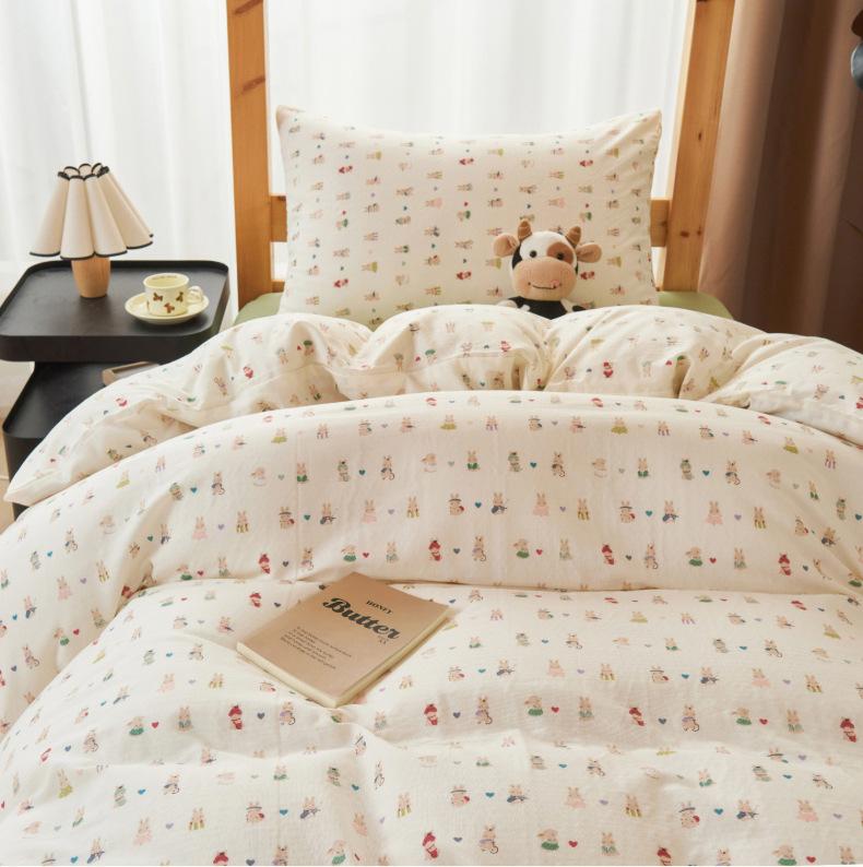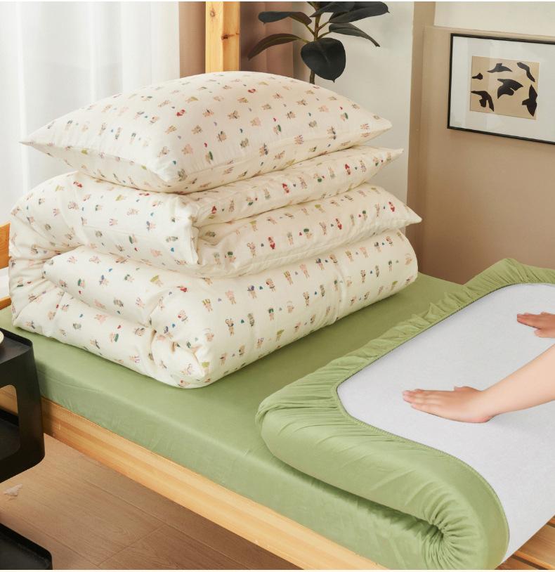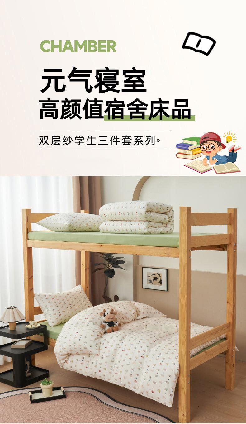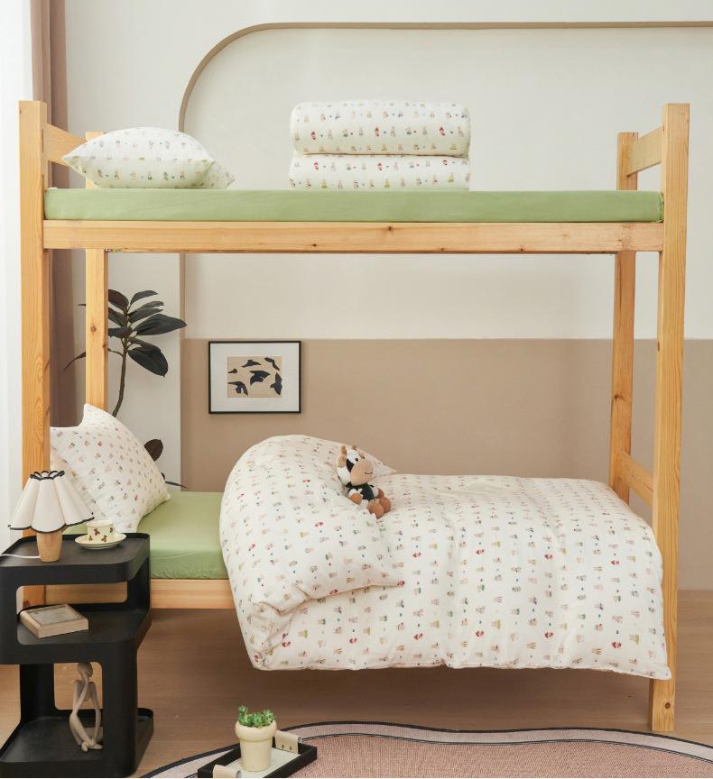 Juego de tres piezas para estudiante de grado A para madre y bebé de gasa de doble capa de algodón 100% ropa de cama estilo funda nórdica de dormitorio de algodón puro, sábana y sábana bajera