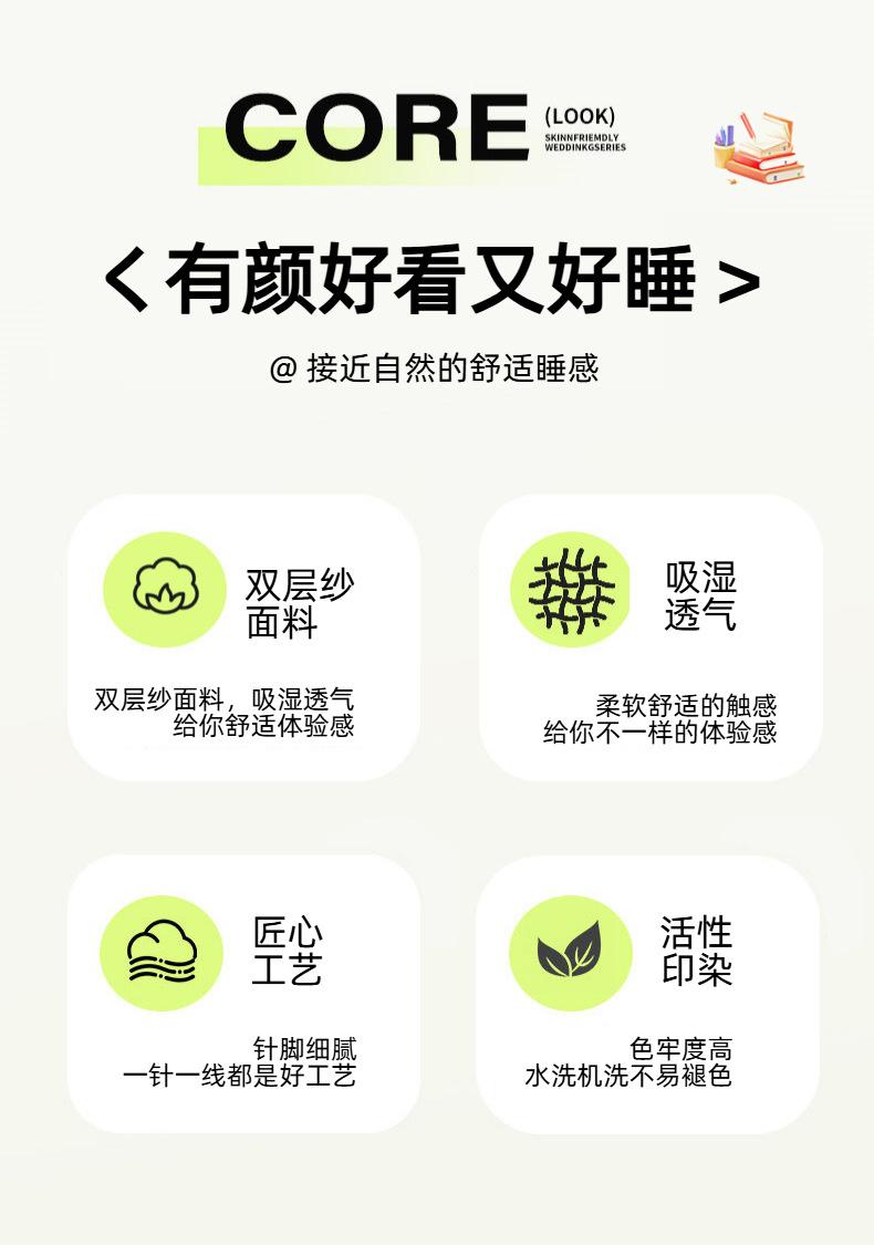 【Fitted Sheet Style】0.9 Three-Piece Set: Duvet Cover 150*200cm Fitted Sheet 90*200cm Pillowcase 48*74cm