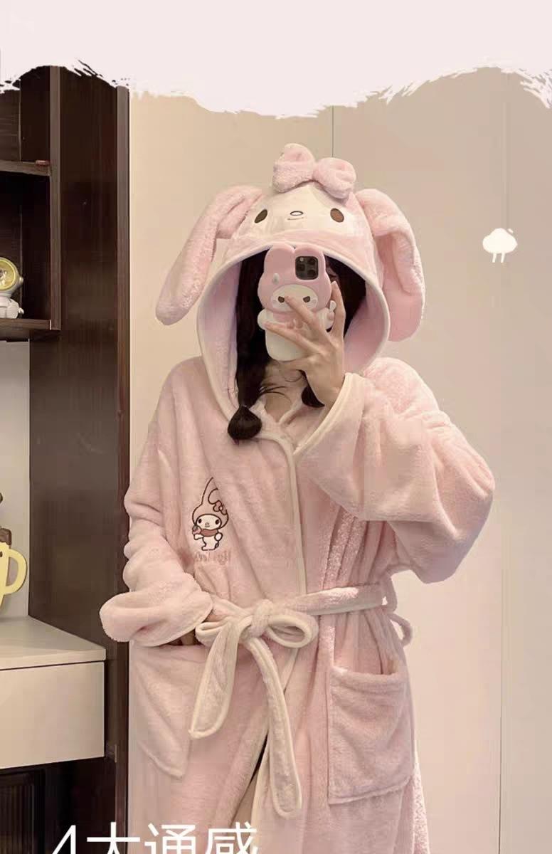 Kuromi bathrobe (length about 115cmcm), Melody bathrobe (length 115cm or so), Cinnamon dog bathrobe (length ab...
