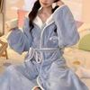 Bata Pijama Absorbente Secado Rápido Coral Lindo Dibujo Animado con Capucha Otoño e Invierno Toalla de Baño Bata Pijama